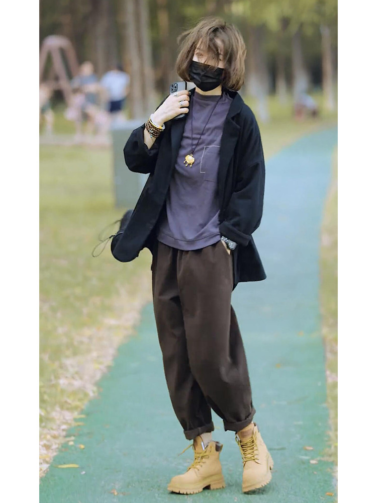 顏色分類 卡其色褲子(單褲子),黑色外套(單外套)