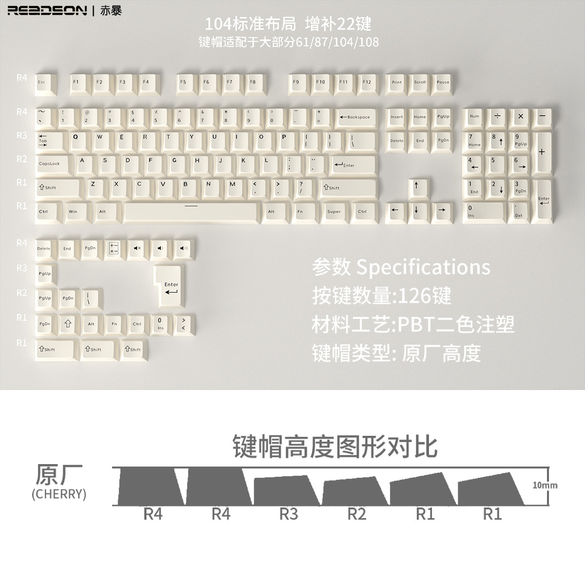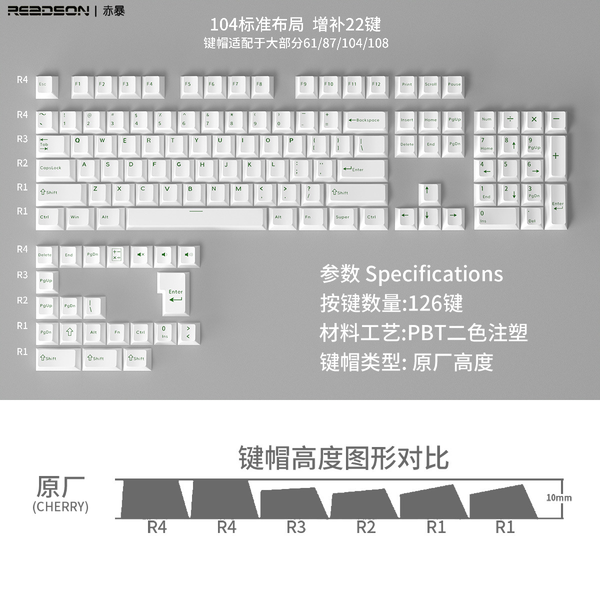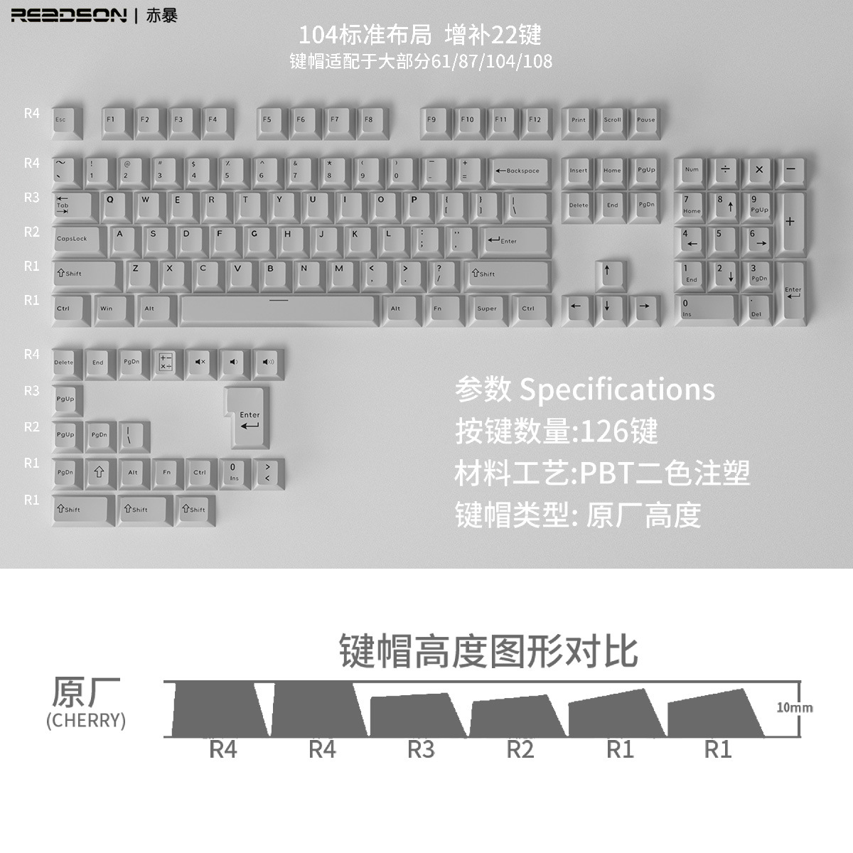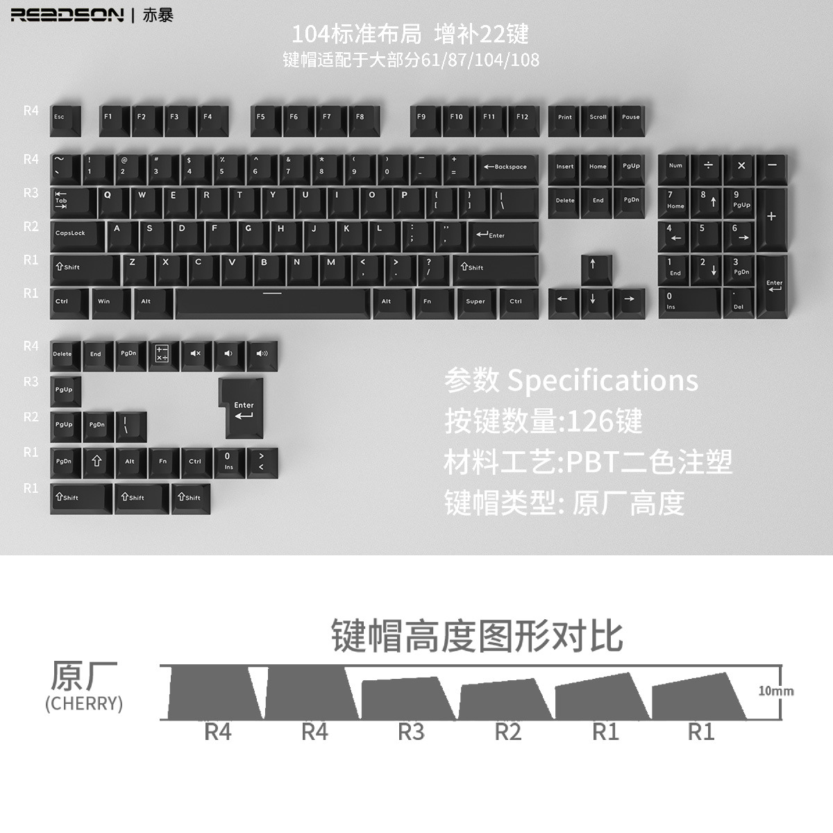 【原厂高度PBT材质键帽】126键位不透光盒装 二色适用机械键盘