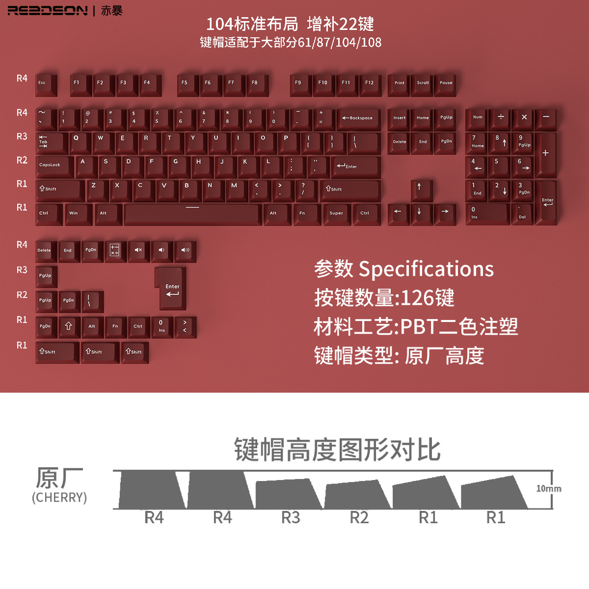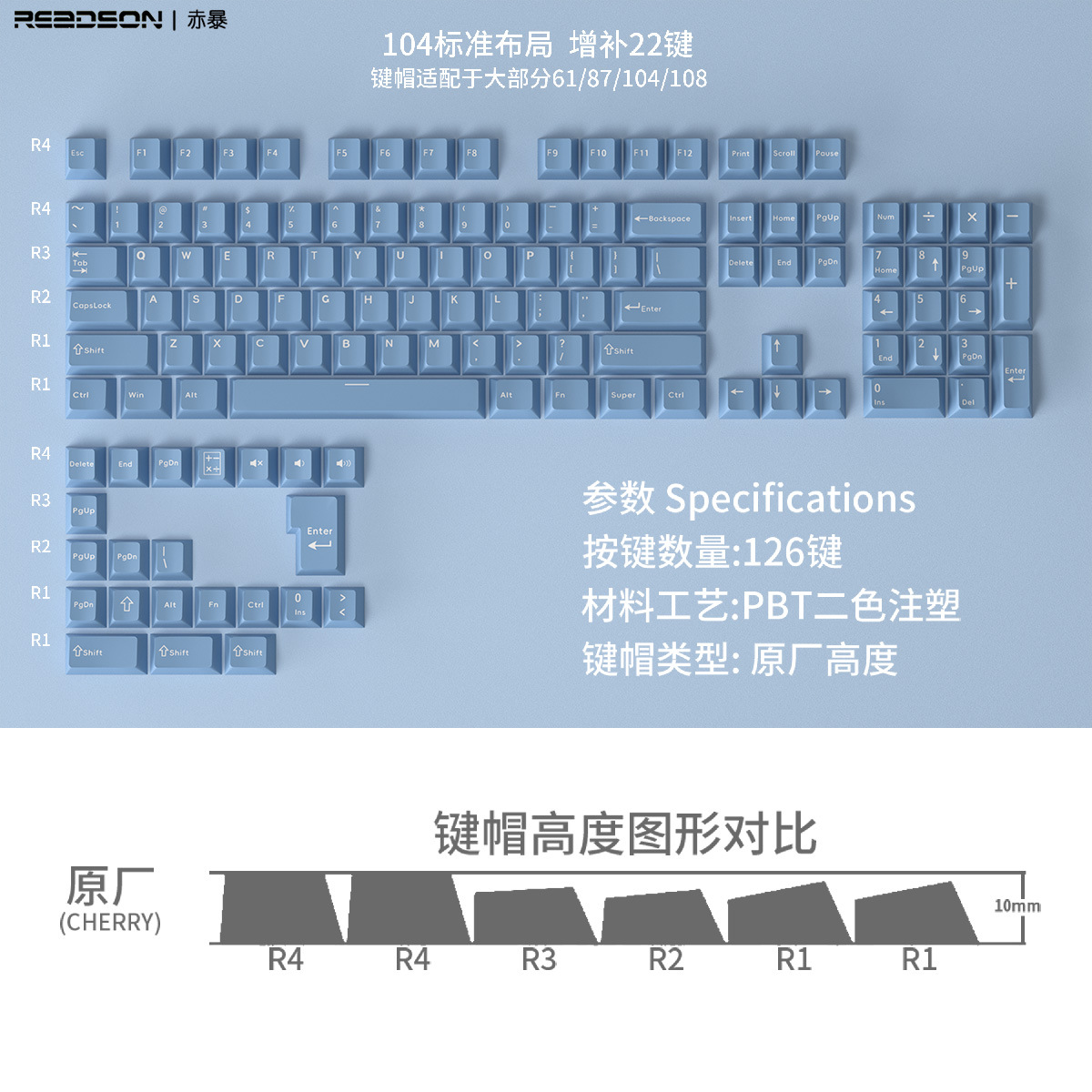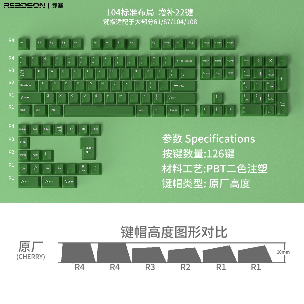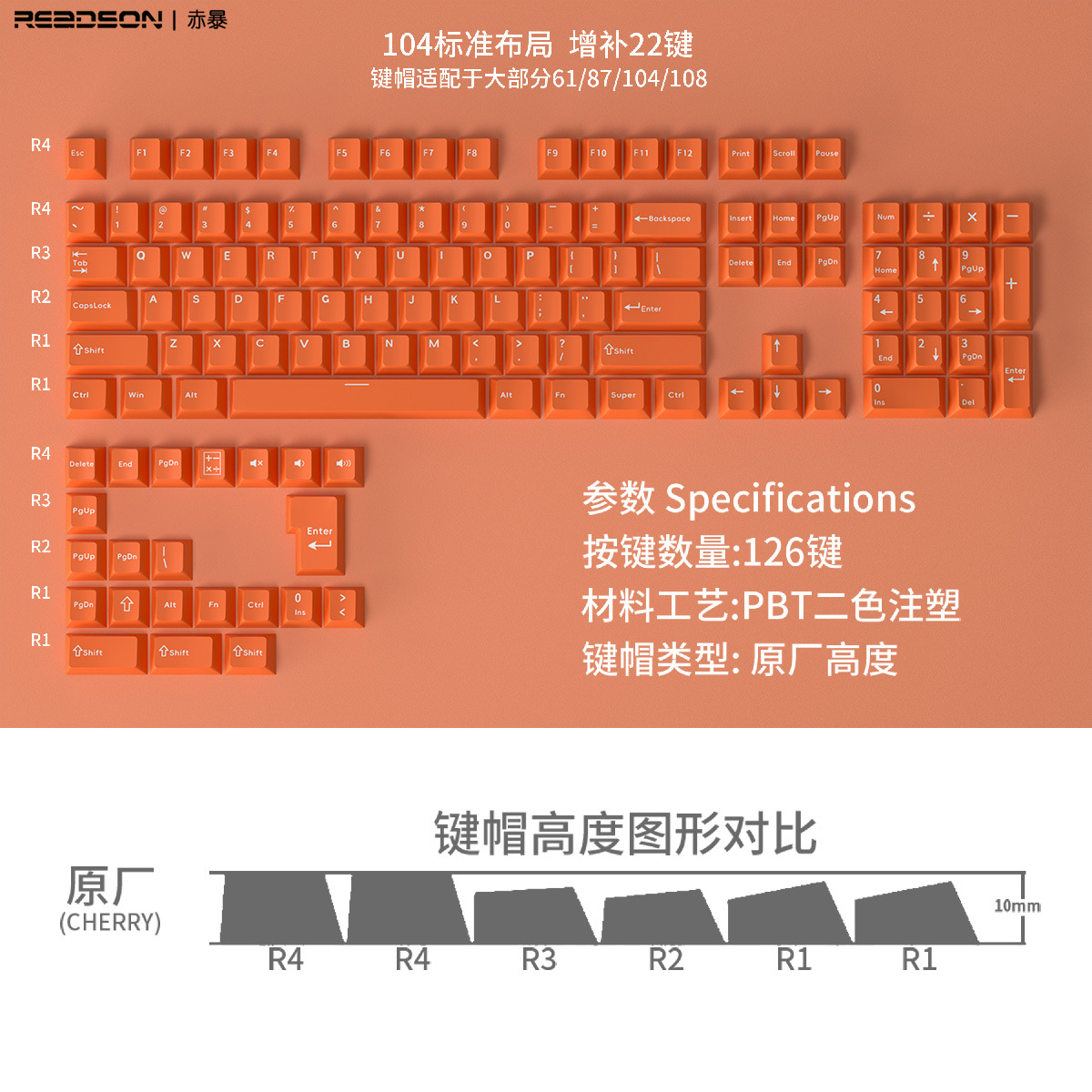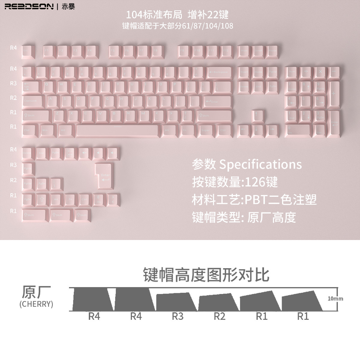 【原厂高度PBT材质键帽】126键位不透光盒装 二色适用机械键盘