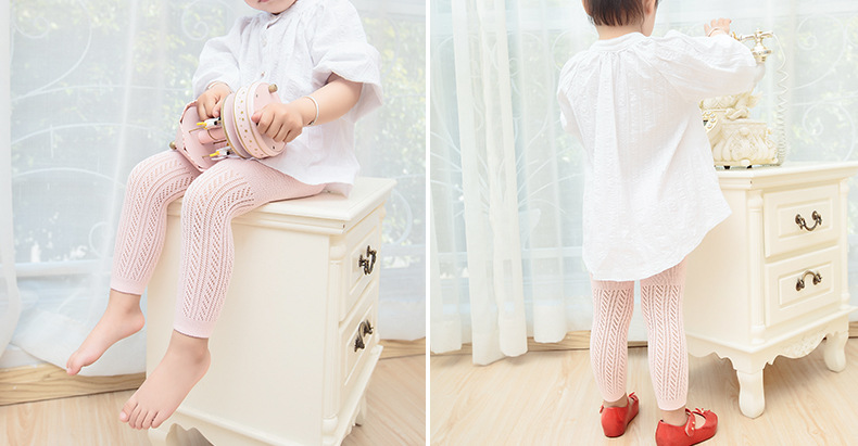 夏季薄款镂空网眼女宝宝精梳棉连裤袜移圈九分婴幼儿童打底裤0-4