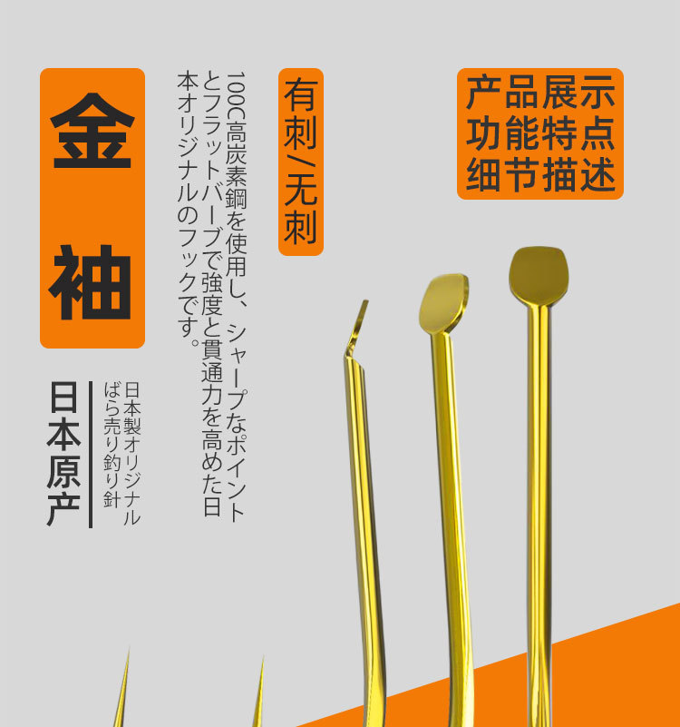 金袖钩散装批发有倒刺无倒刺台钓竞技子线双钩鲫鱼钩细条平打鱼钩