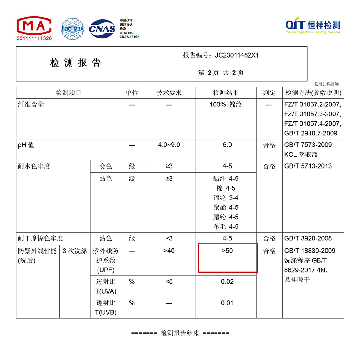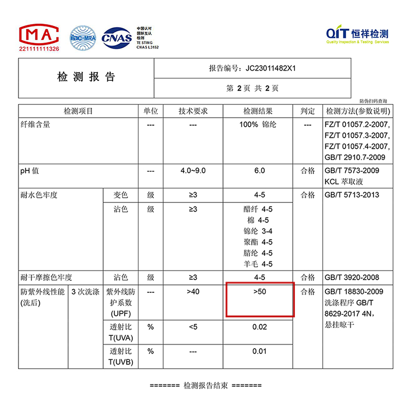 紫外線防護係數 UPF50+
