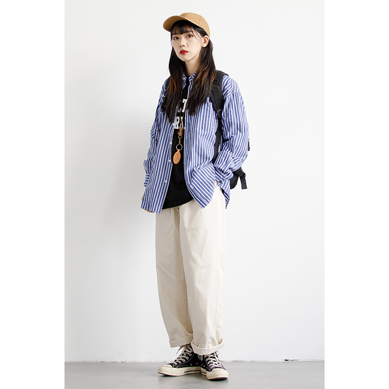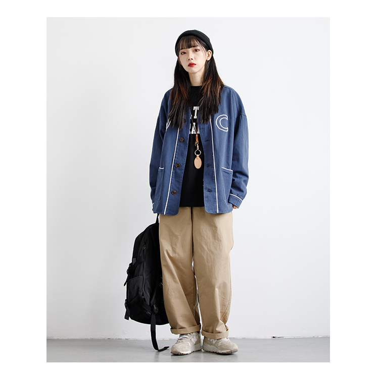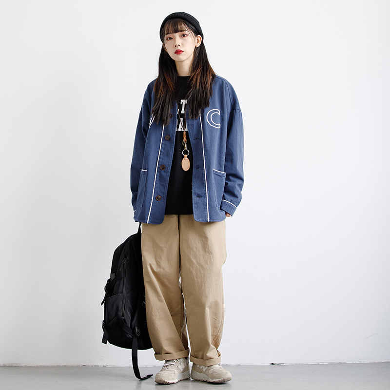 RCDB日系復古基礎款錐形直筒工裝褲男女BF風寬鬆情侶百搭休閒長褲
