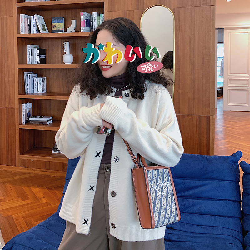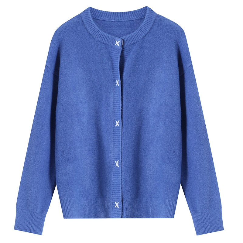 Dazi金大支毛衣外套針織慵懶風秋裝新款寬鬆圓領克萊因藍開衫女裝