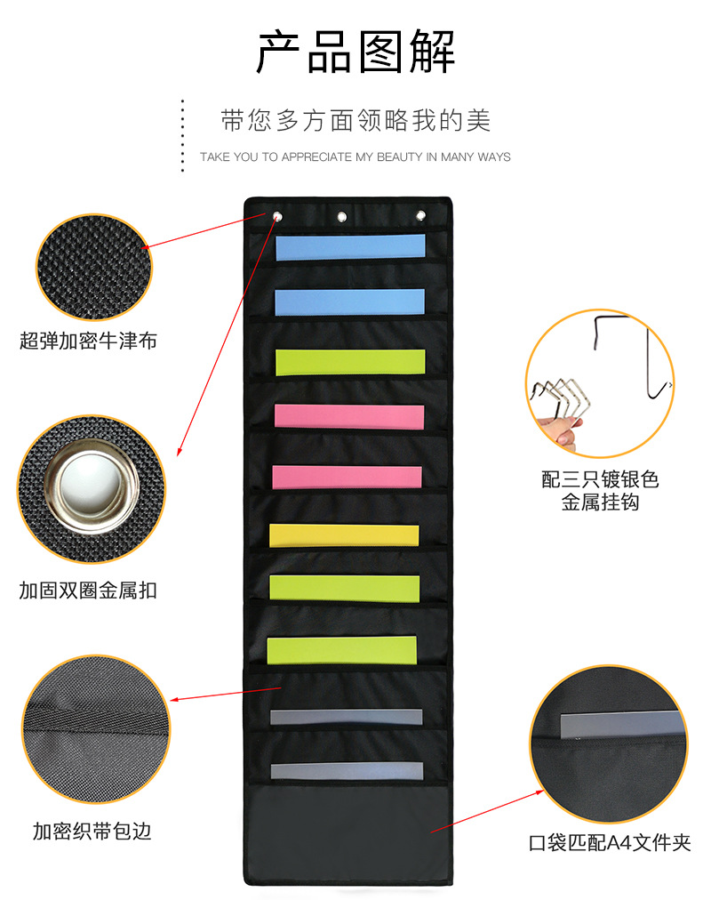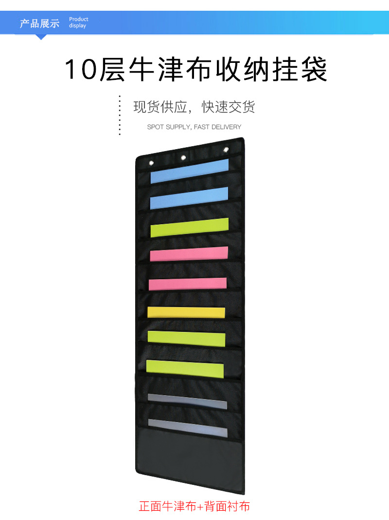 •  10层牛津布教室书本立体文具收纳挂袋 办公室文件夹收纳袋