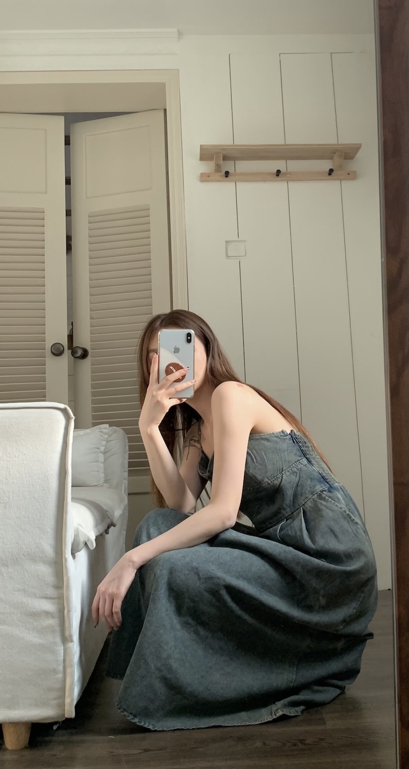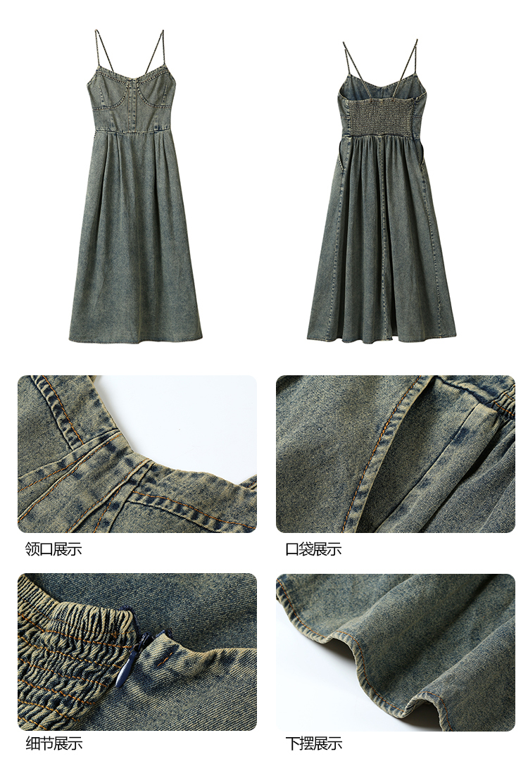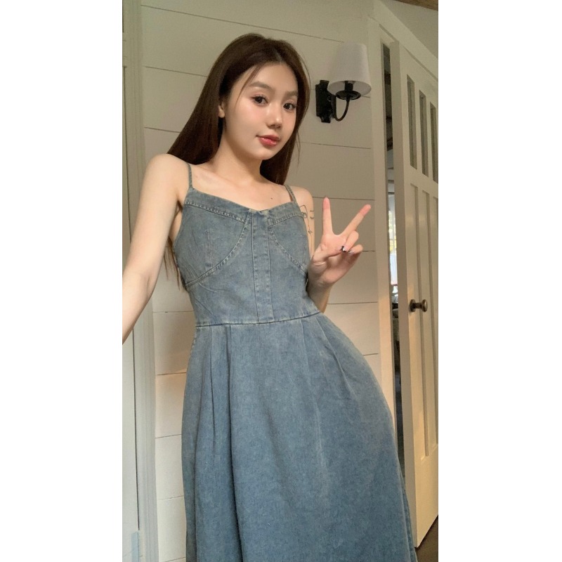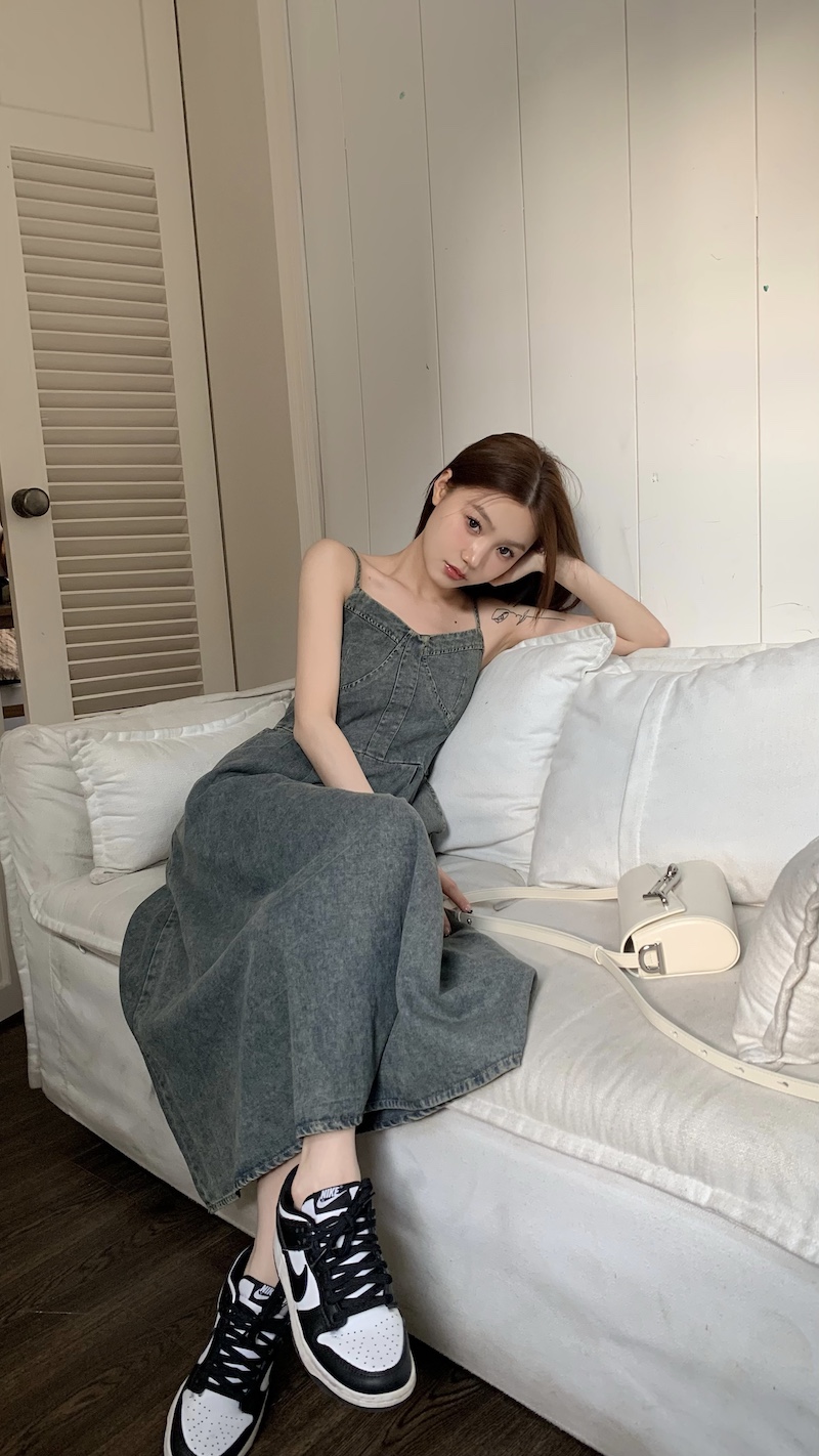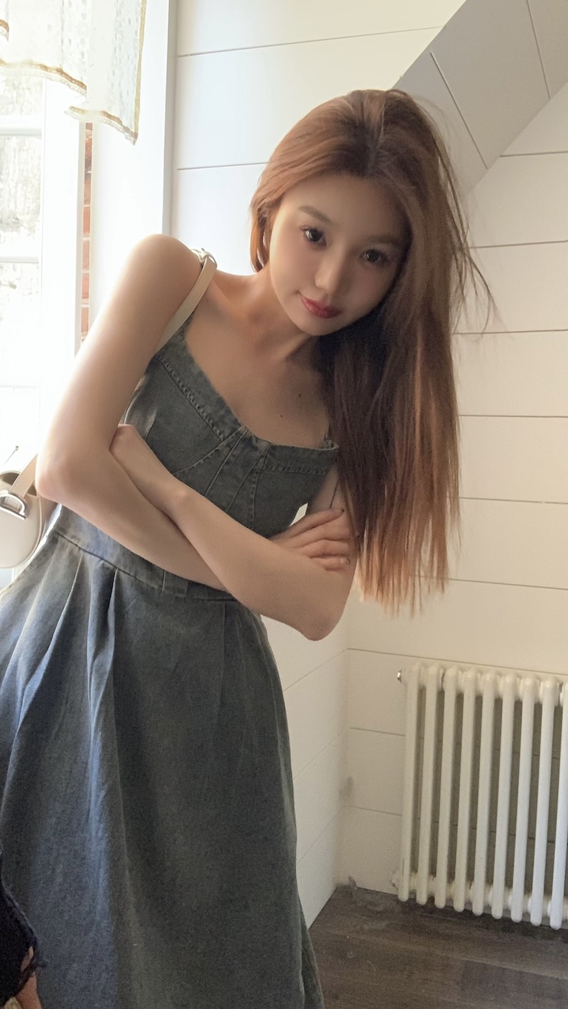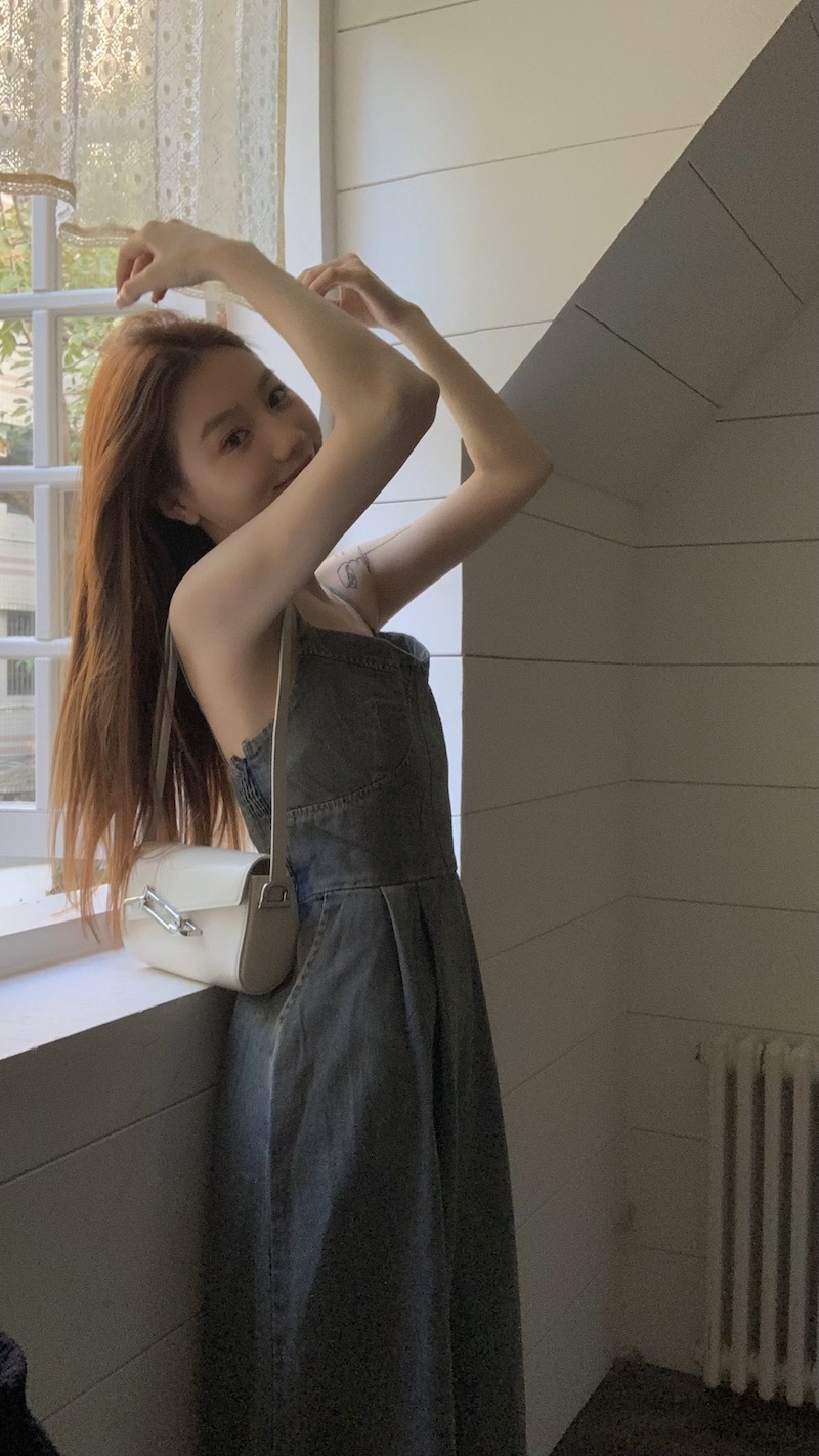 PPHOME霧島紀事~韓系修身顯瘦中長版收腰牛仔洋裝女百搭吊帶裙