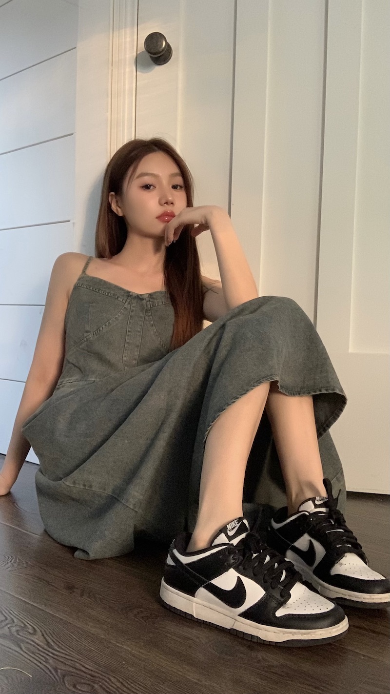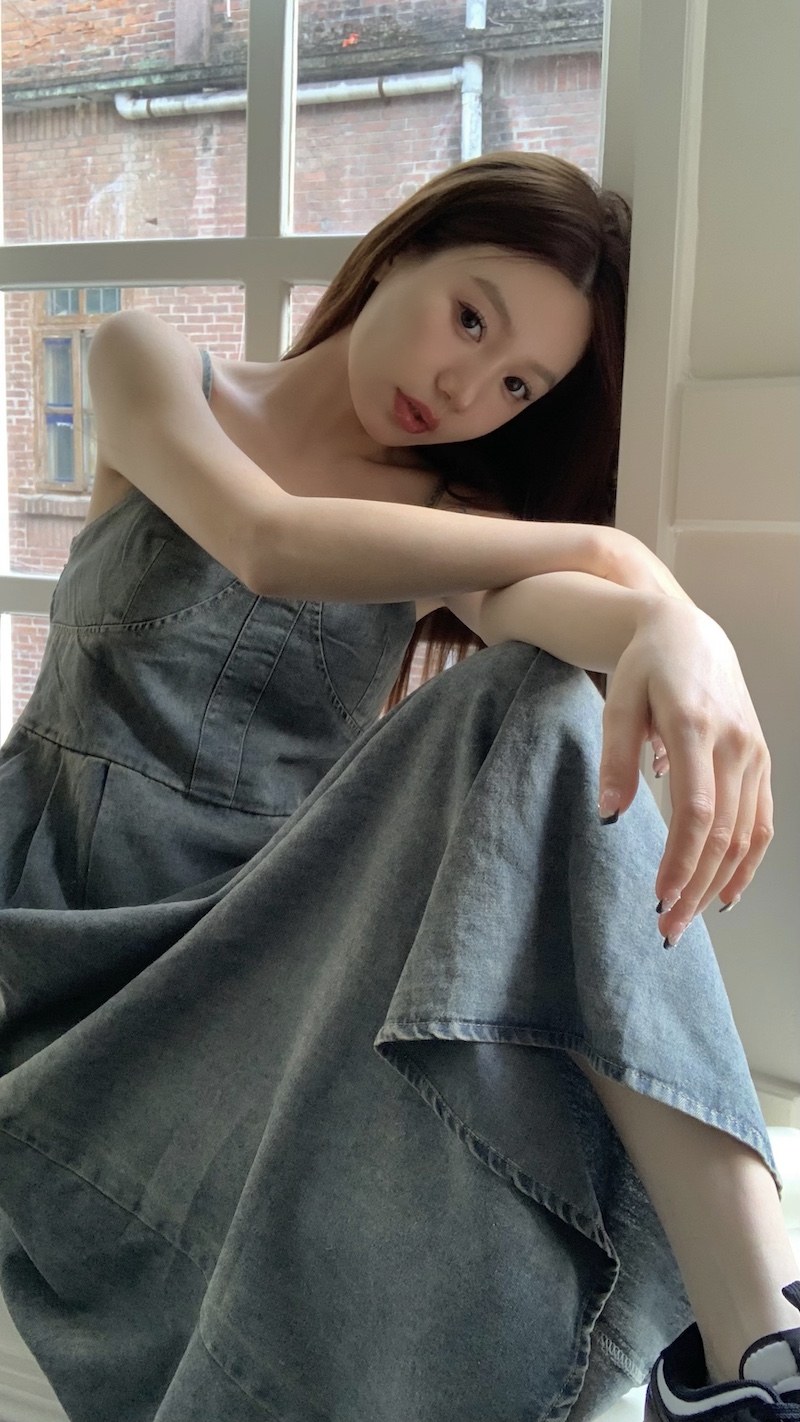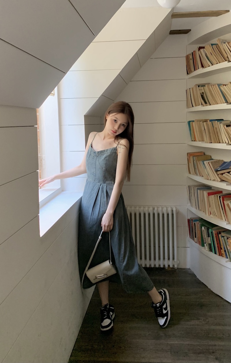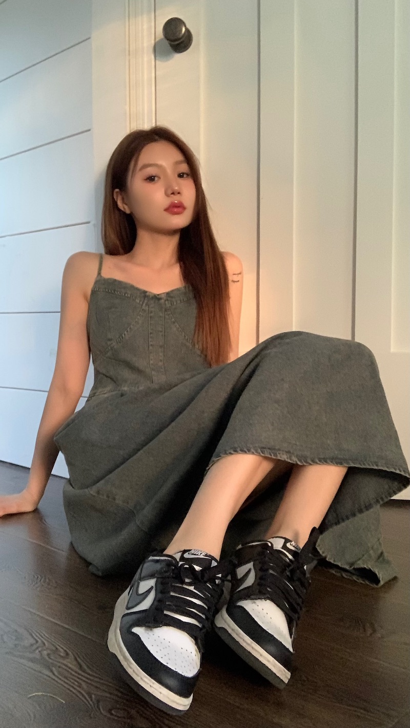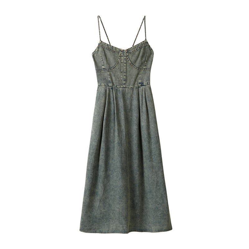 PPHOME霧島紀事~韓系修身顯瘦中長版收腰牛仔洋裝女百搭吊帶裙