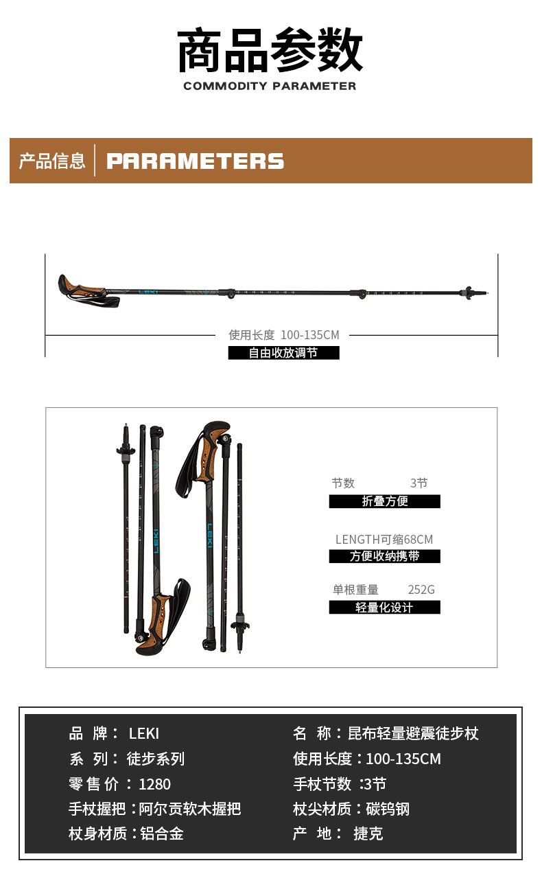 【LEKI新款到貨】戶外登山伸縮外鎖可調節避震昆布輕量避震徒步杖
