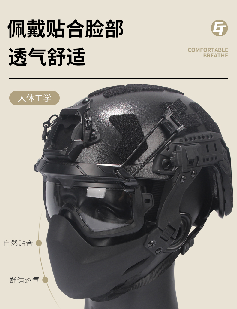 FMA兩件式半臉面具戰術安全帽半密封面罩(摺疊式)護臉尼龍材質
