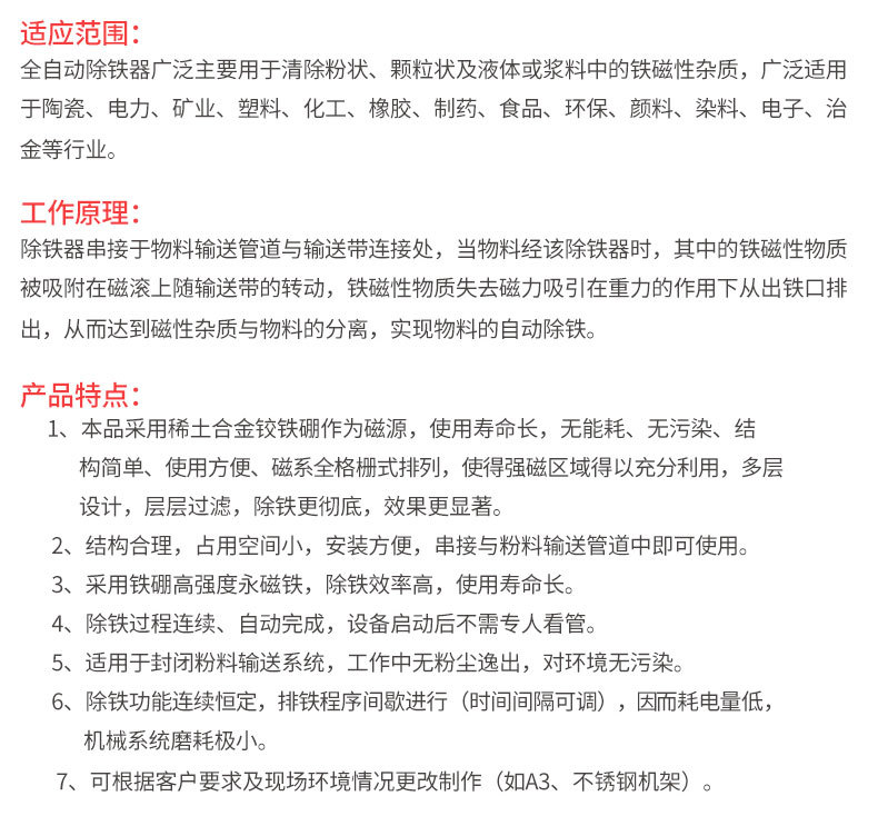 型号 粉料除铁器