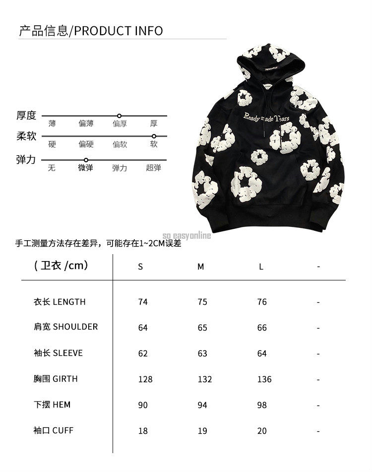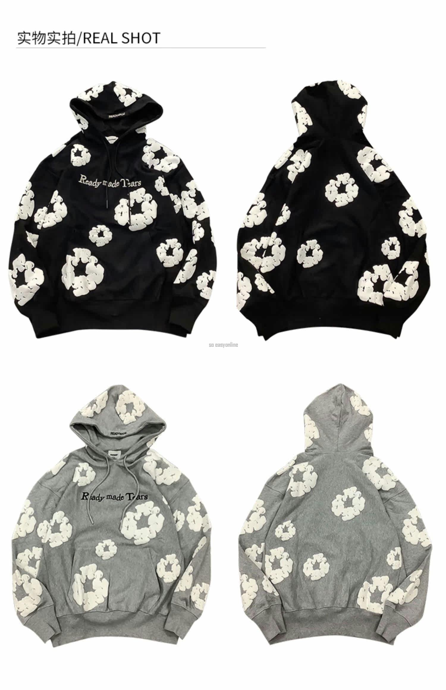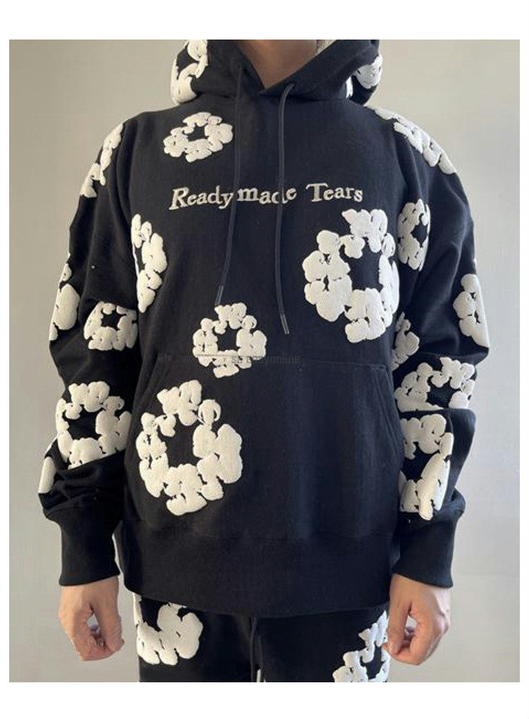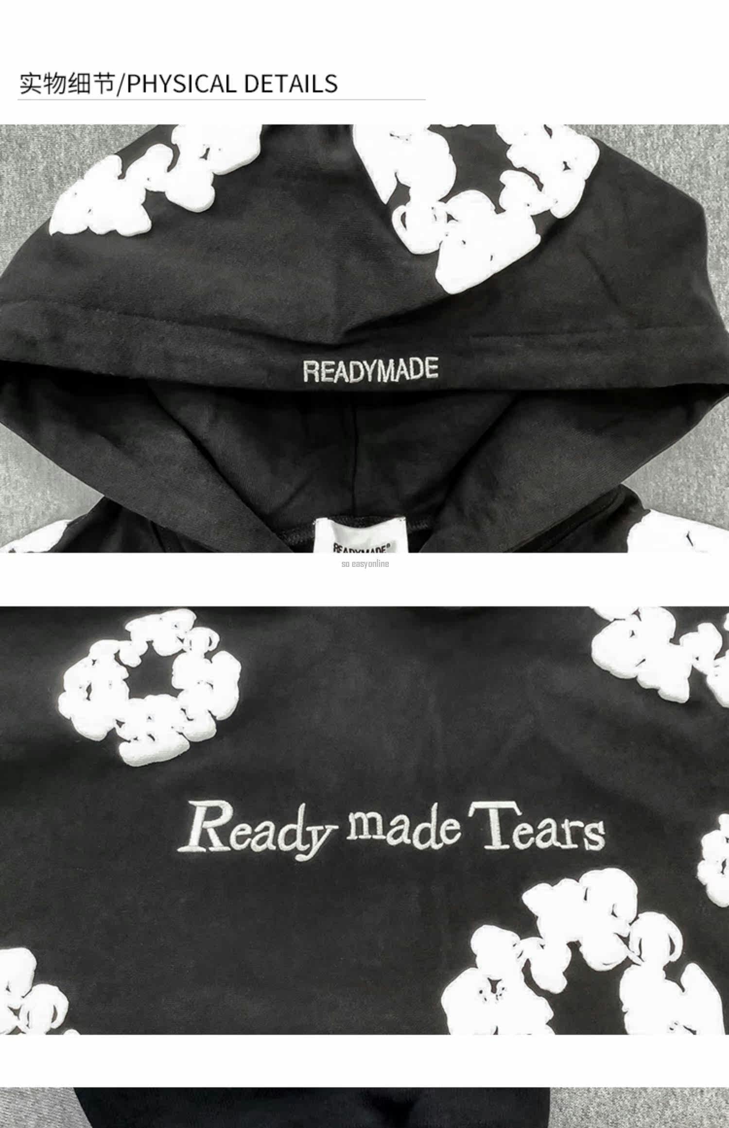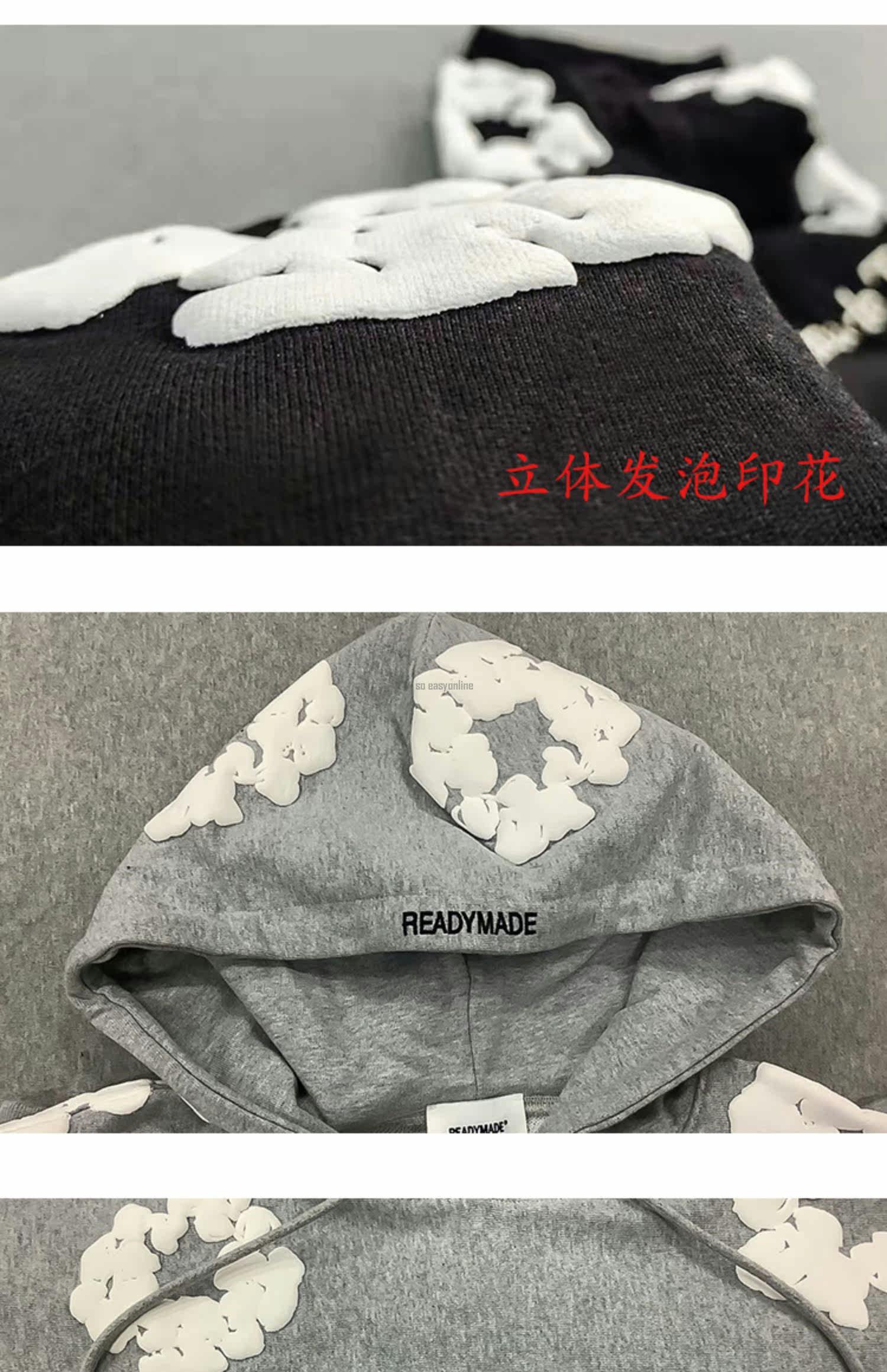 READYMADE 風格vintage立體發泡木棉花印花塗鴉 男女刺繡帽衫衛衣