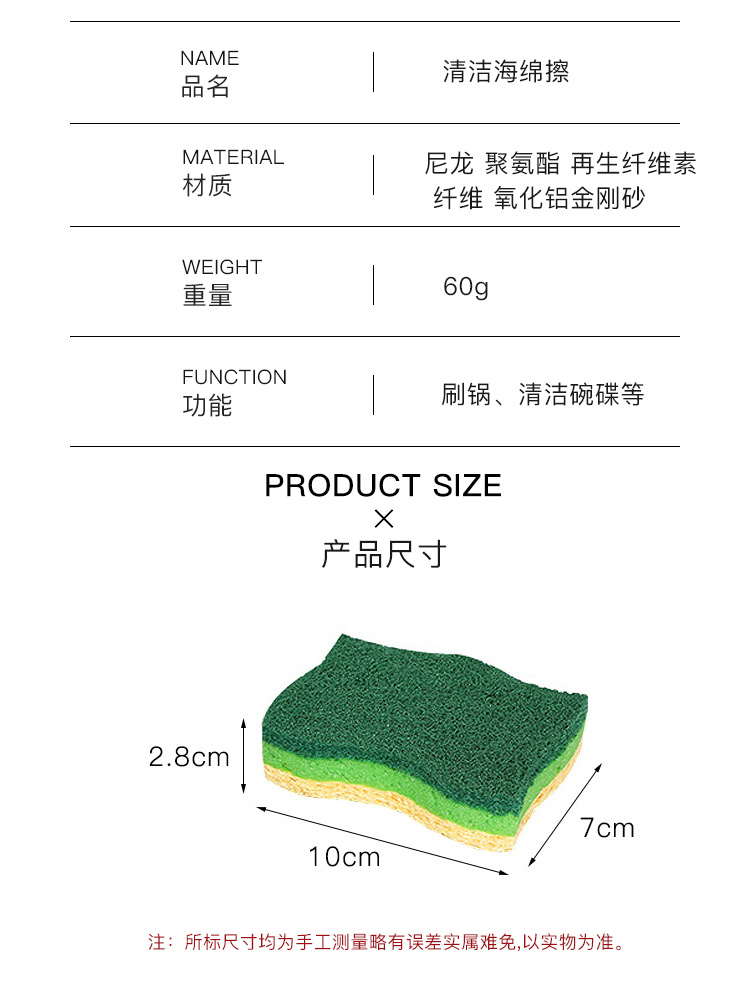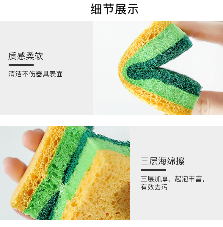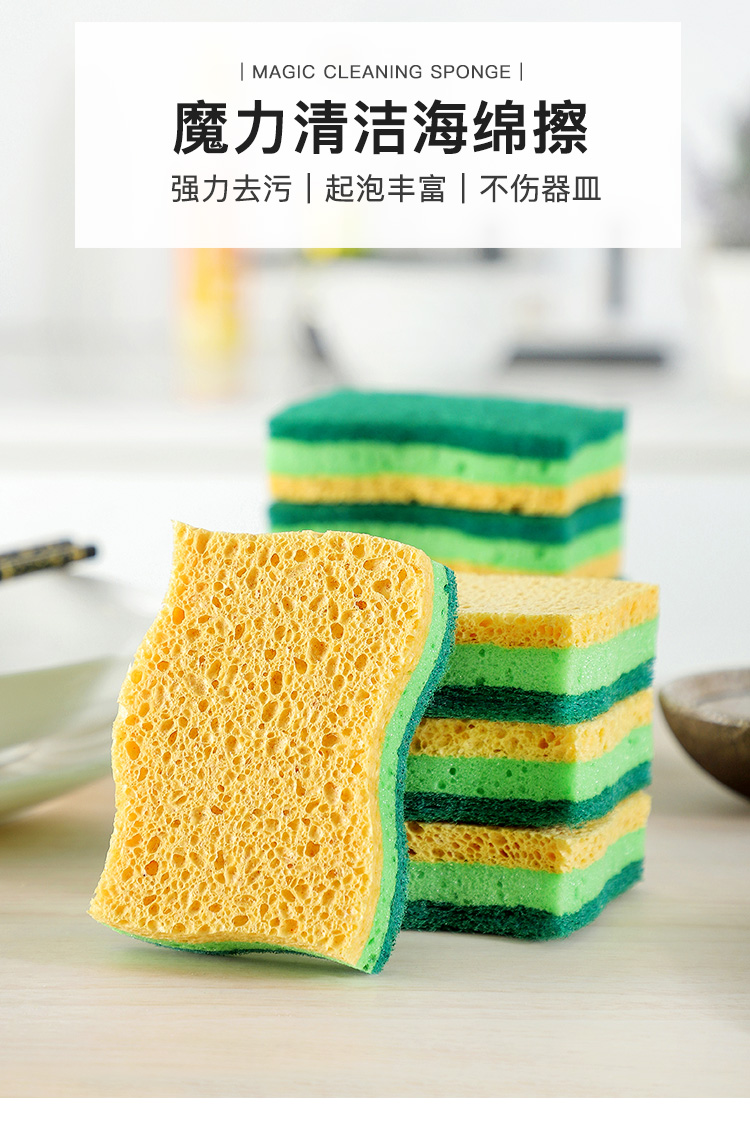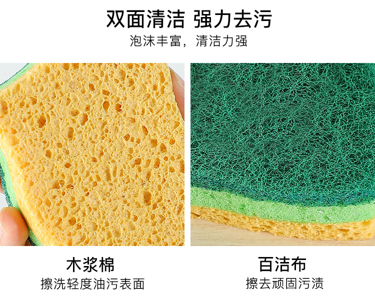 双面洗碗海绵擦魔力洗锅神器木桨洗碗棉耐用洗碗布家用刷碗海绵