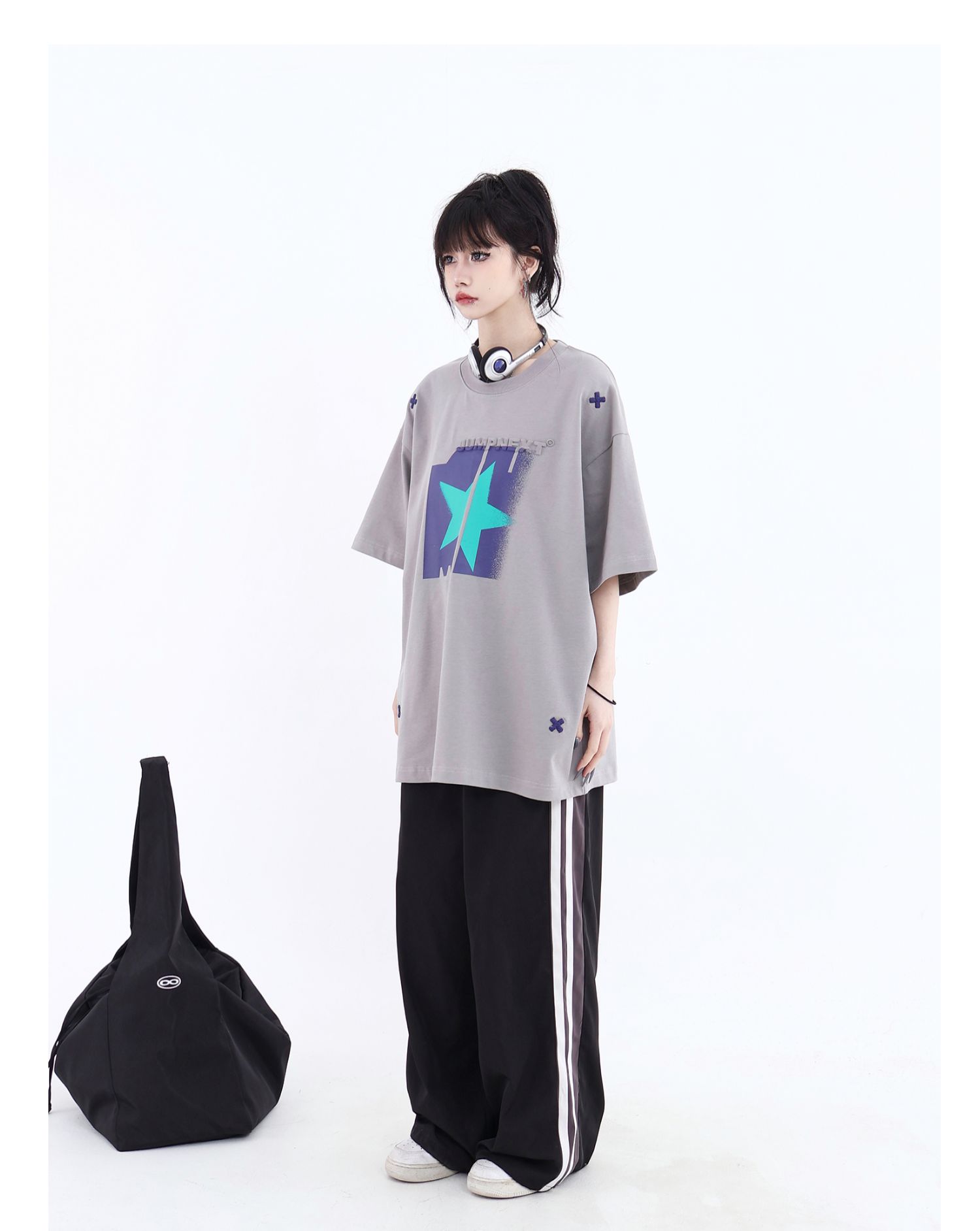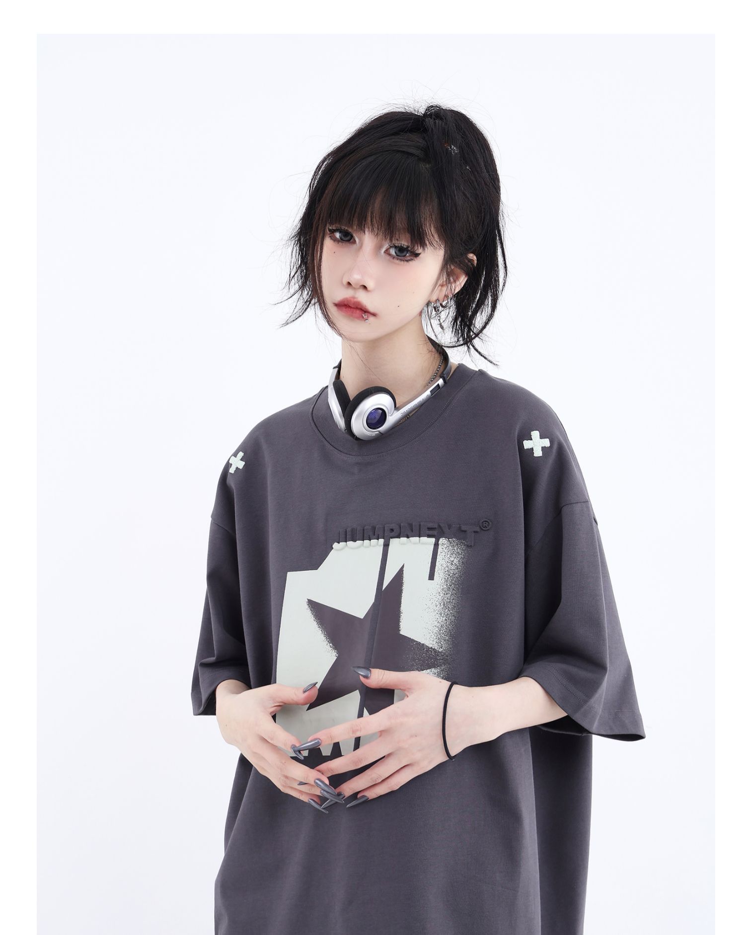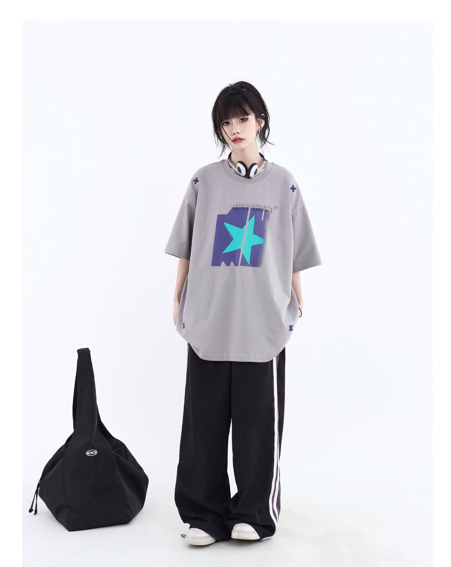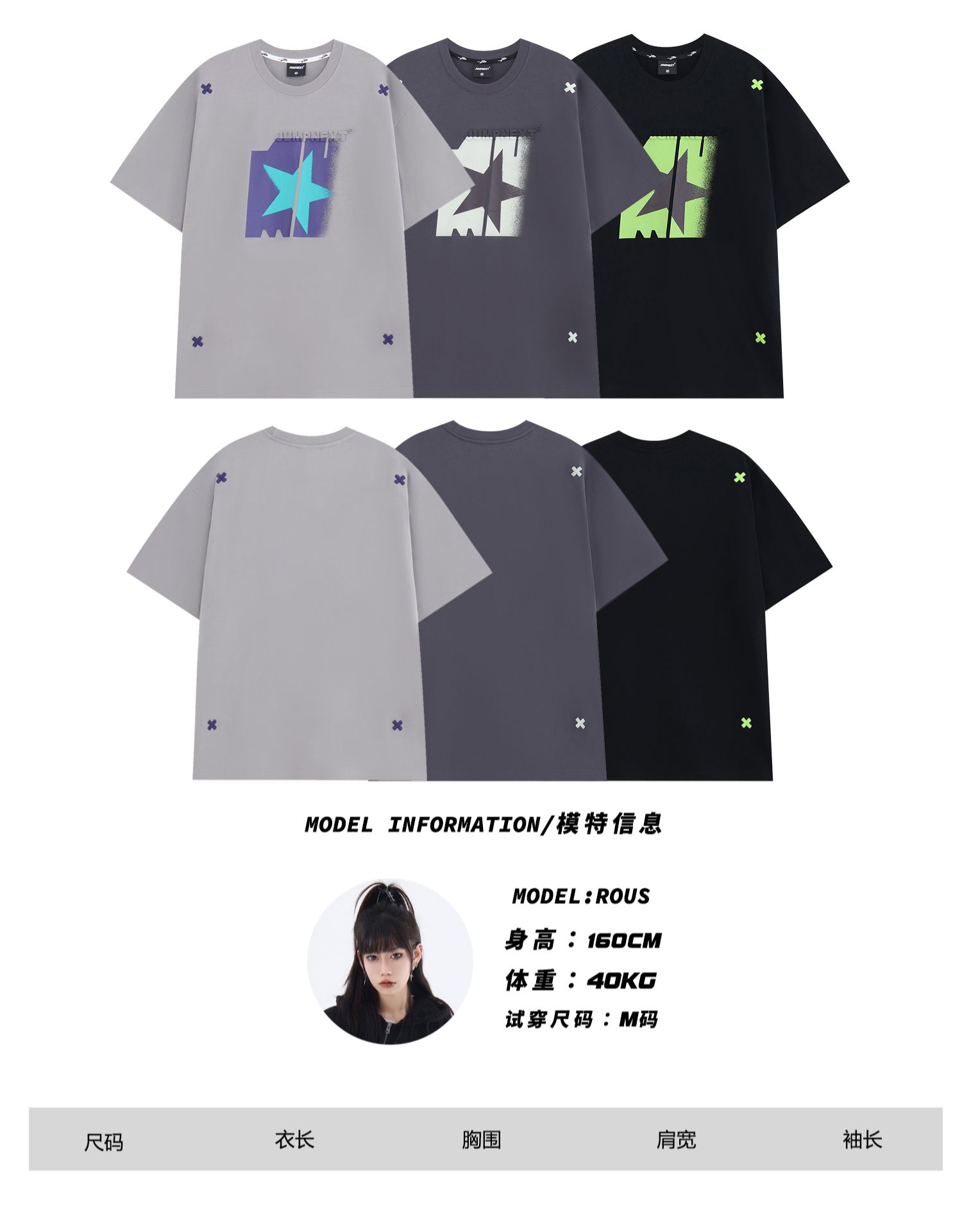 JUMPNEXT 幻影圖形十字架刺繡基礎情侶國潮夏季無性別寬鬆短袖t恤