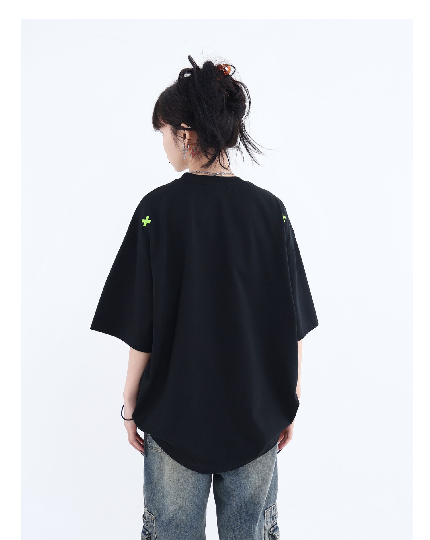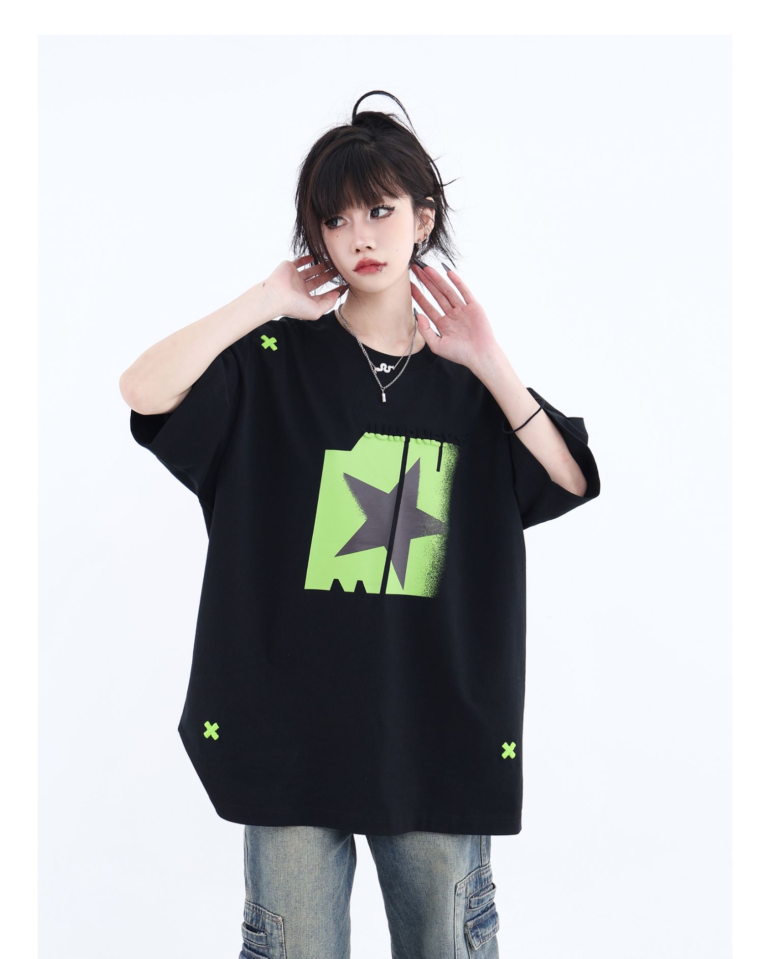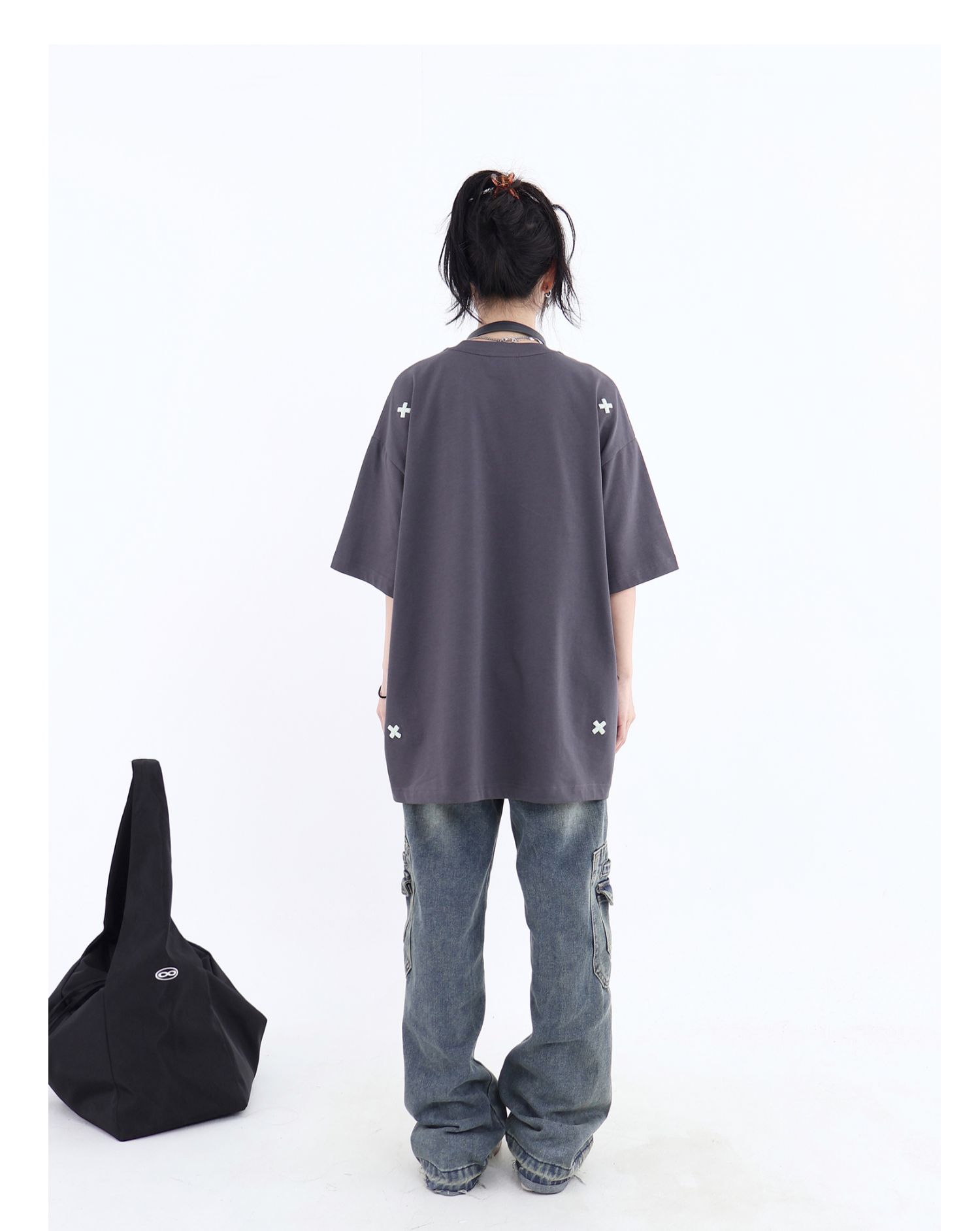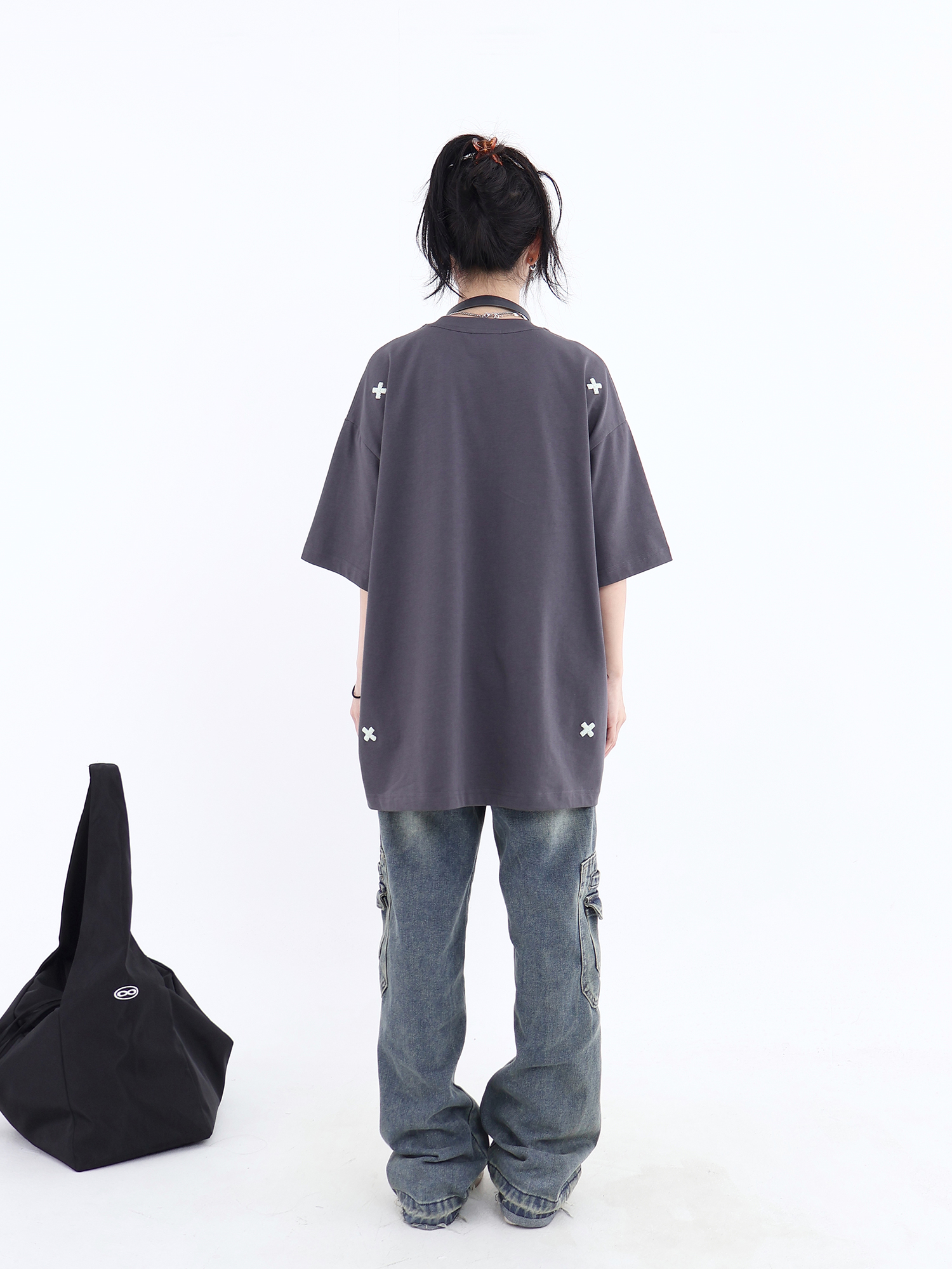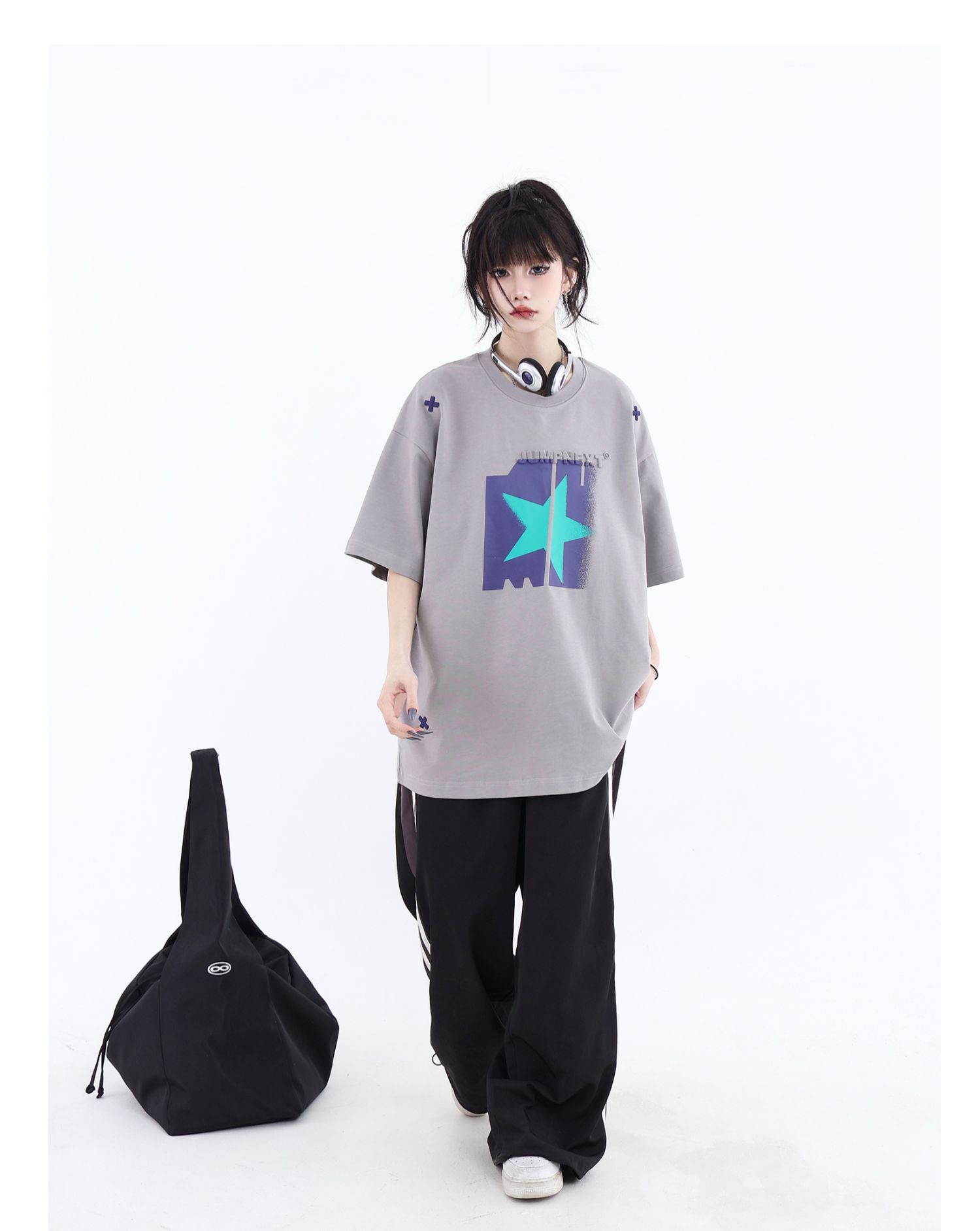 JUMPNEXT 幻影圖形十字架刺繡基礎情侶國潮夏季無性別寬鬆短袖t恤