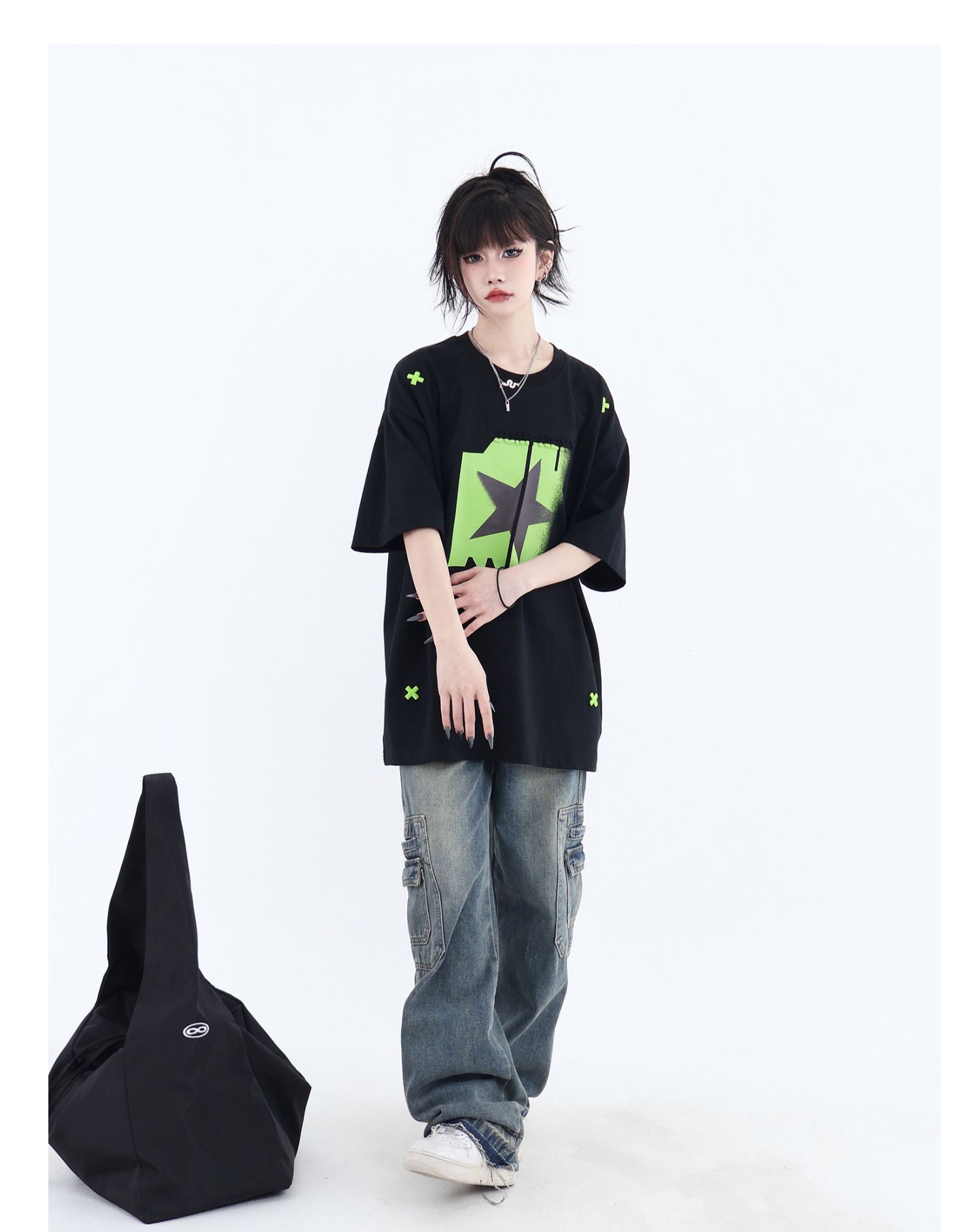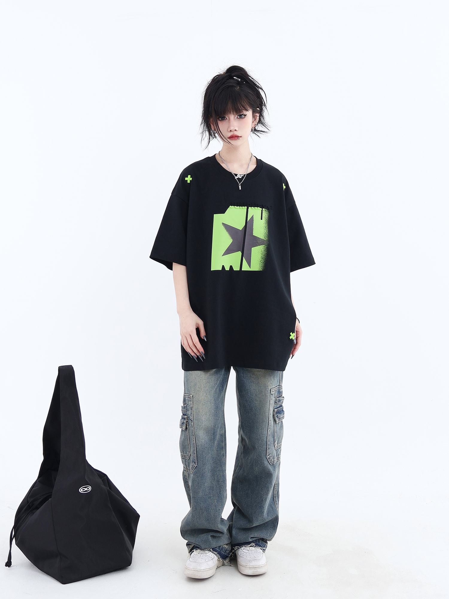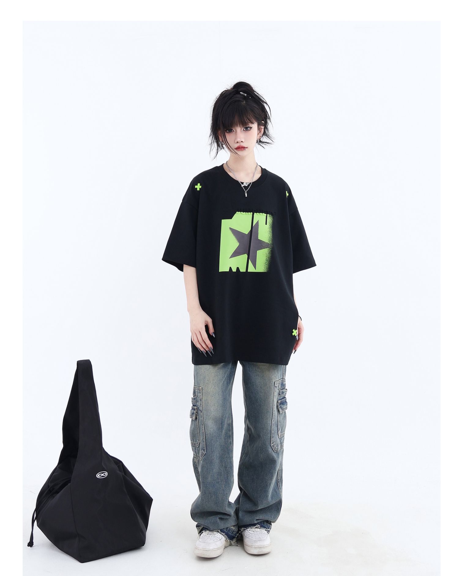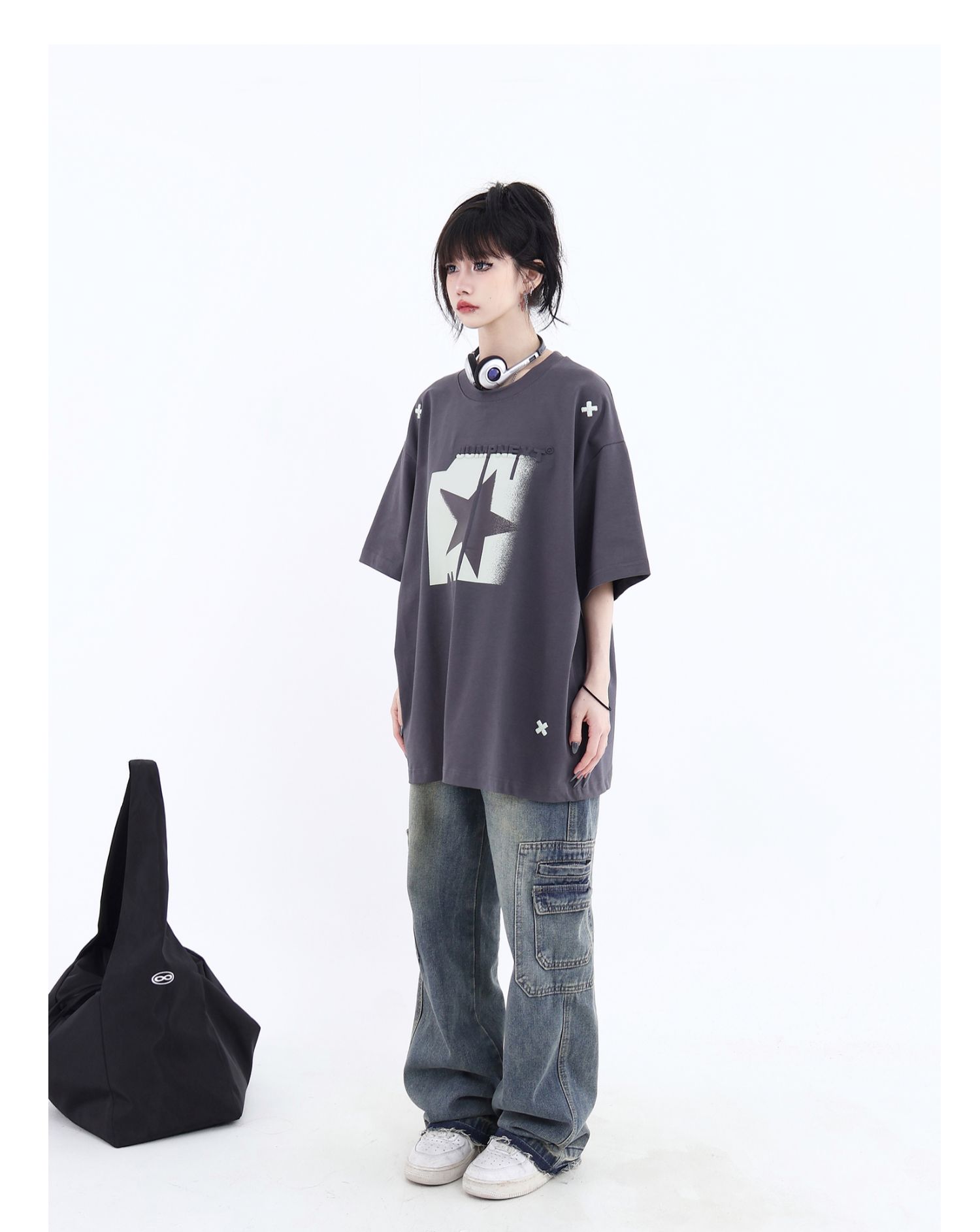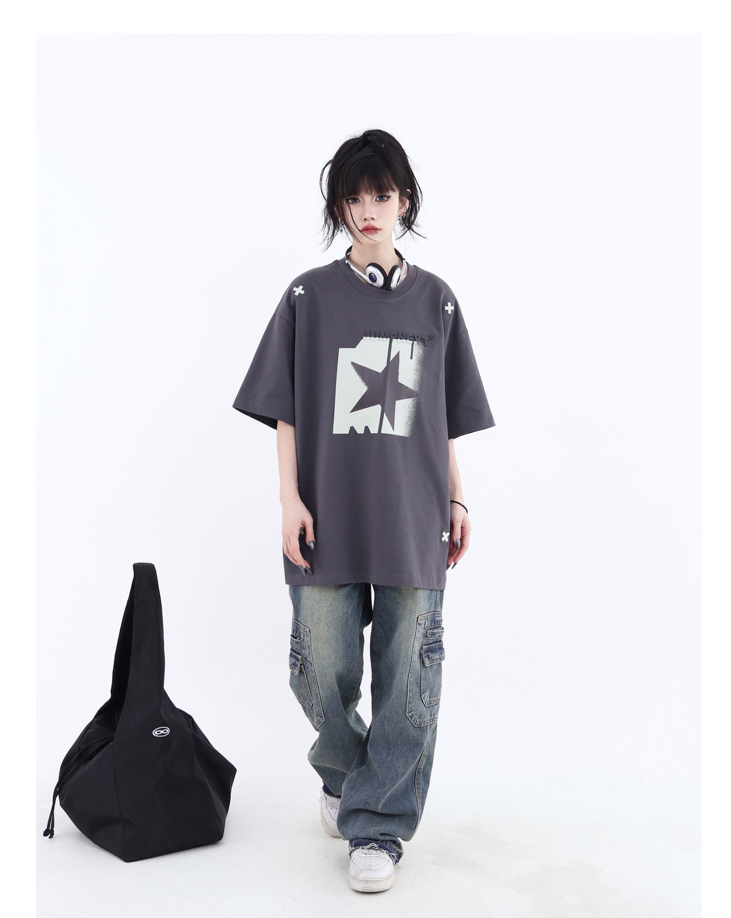 JUMPNEXT 幻影圖形十字架刺繡基礎情侶國潮夏季無性別寬鬆短袖t恤
