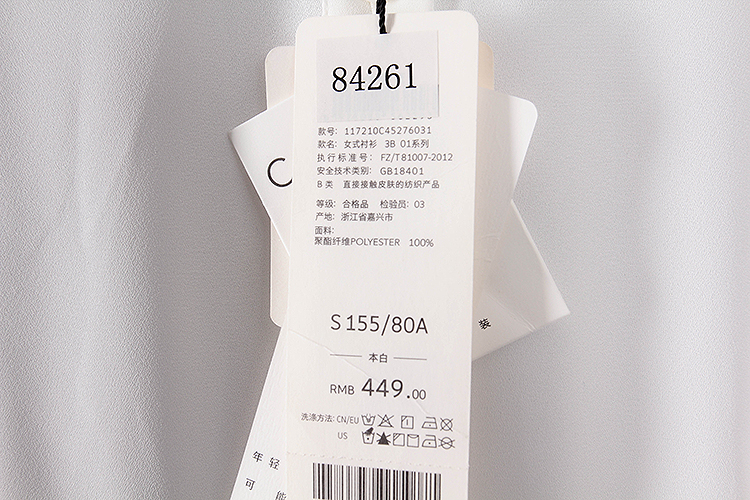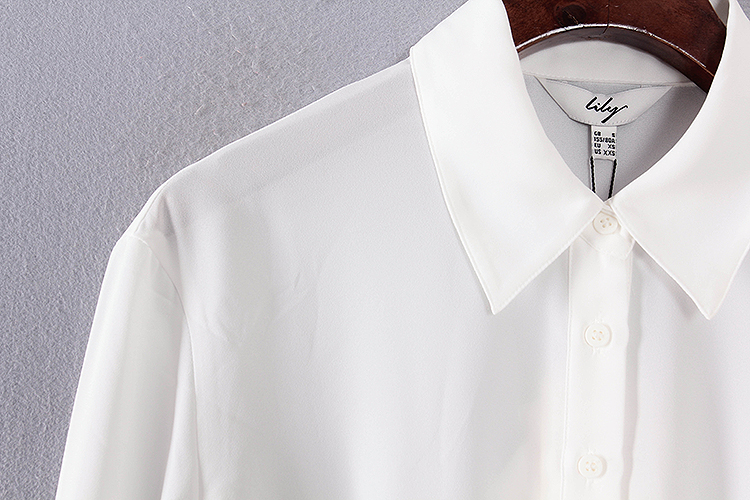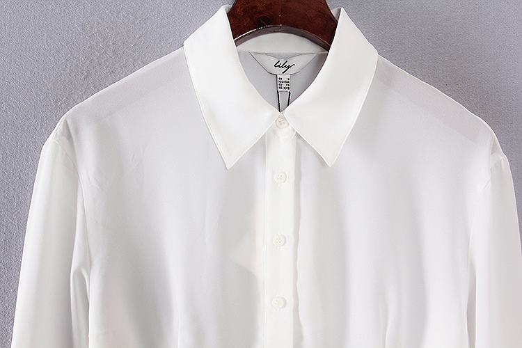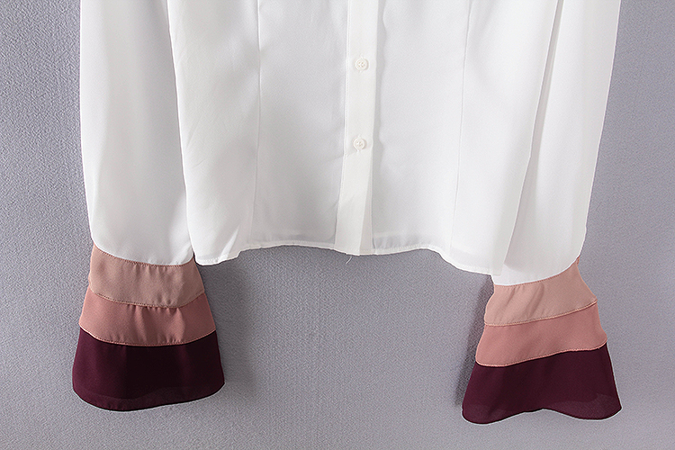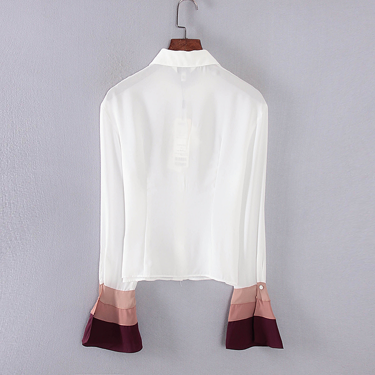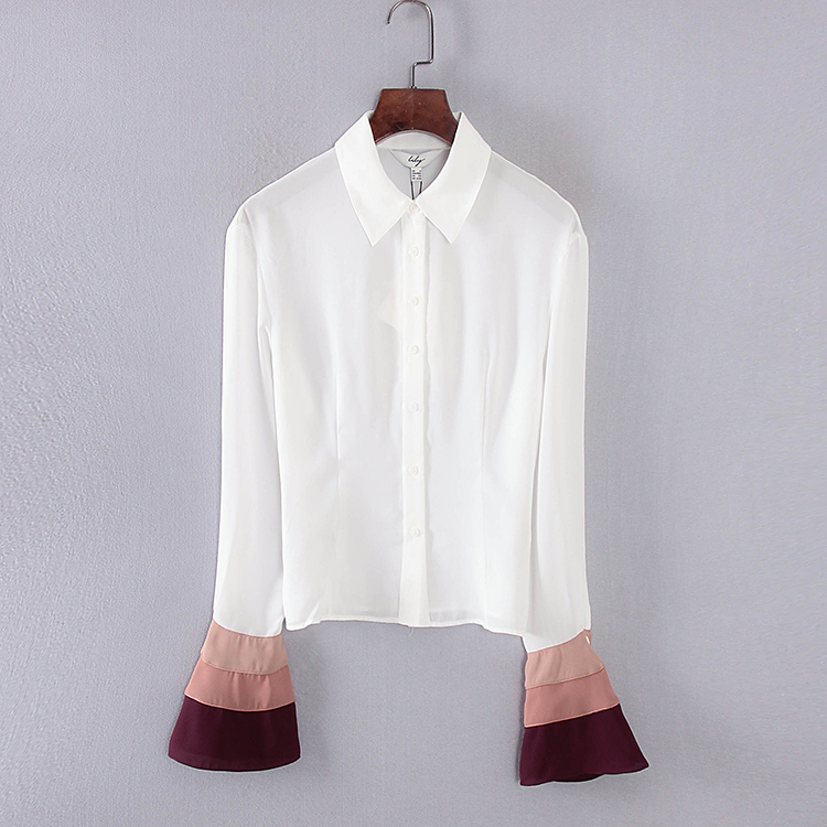 麗品牌專櫃清倉春秋裝女裝白色時尚百搭短款喇叭袖撞色襯衫 84261