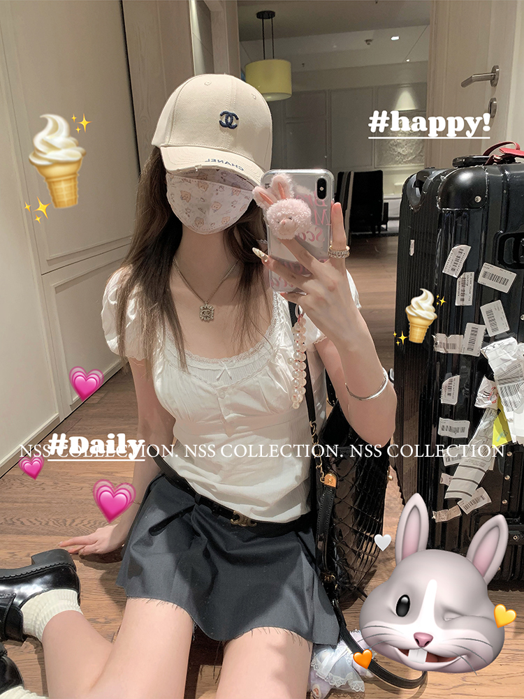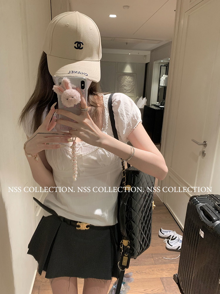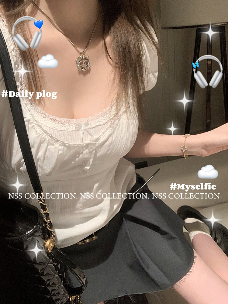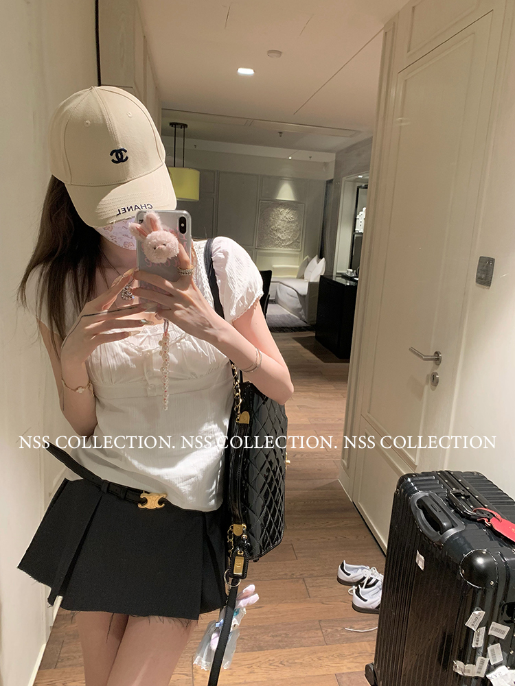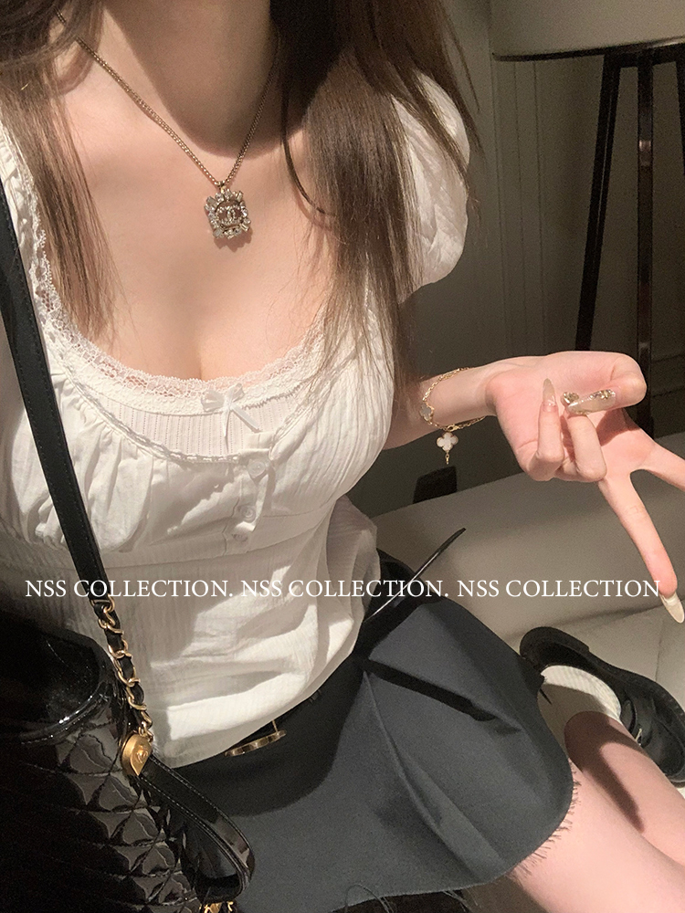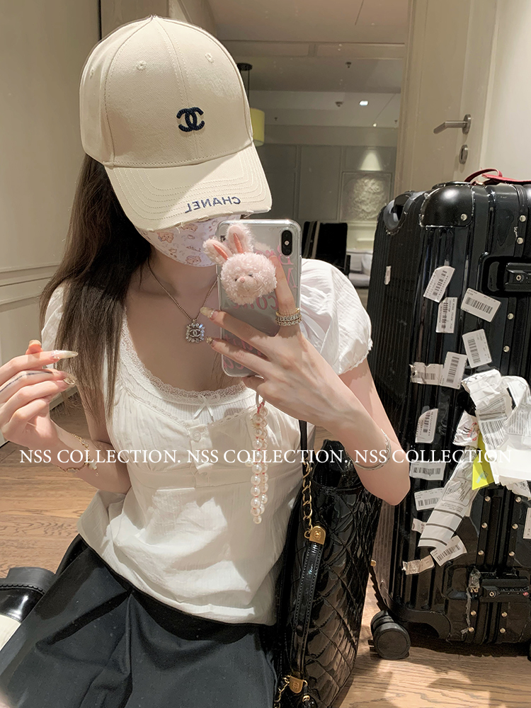 NSS COLLECTION 莉莉子 蝴蝶結吊帶兩件套女設計感泡泡袖白色襯衫