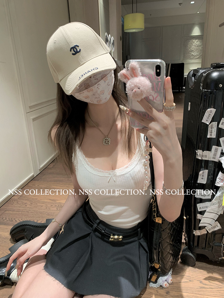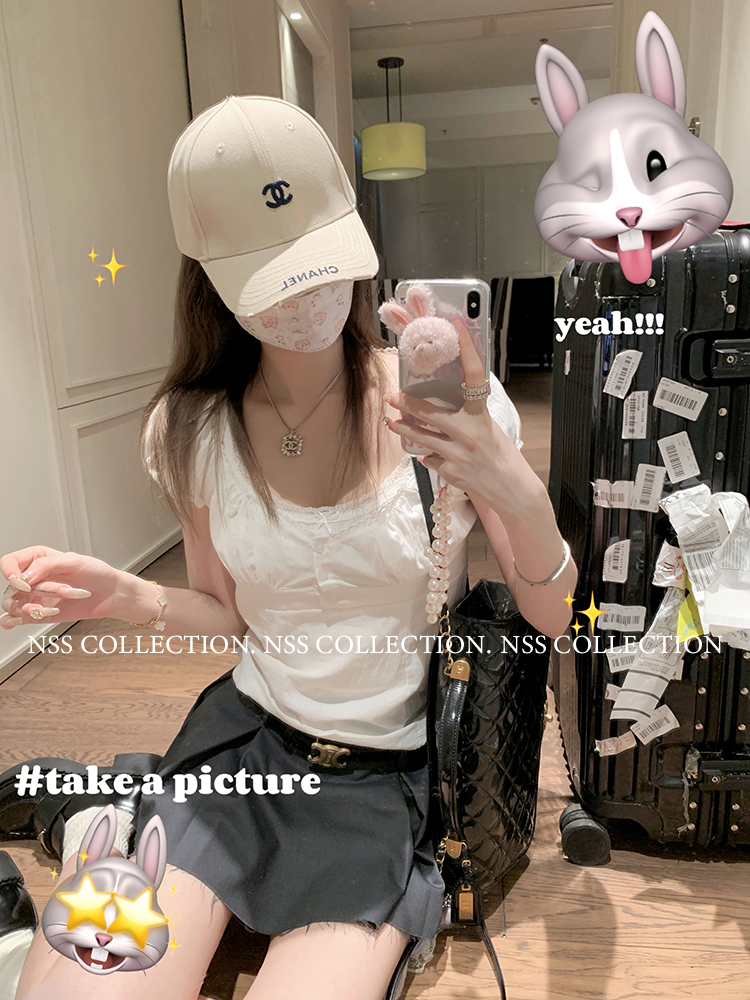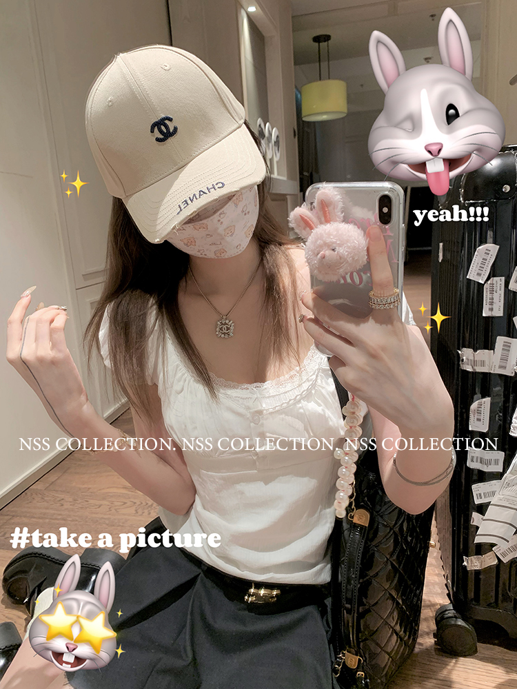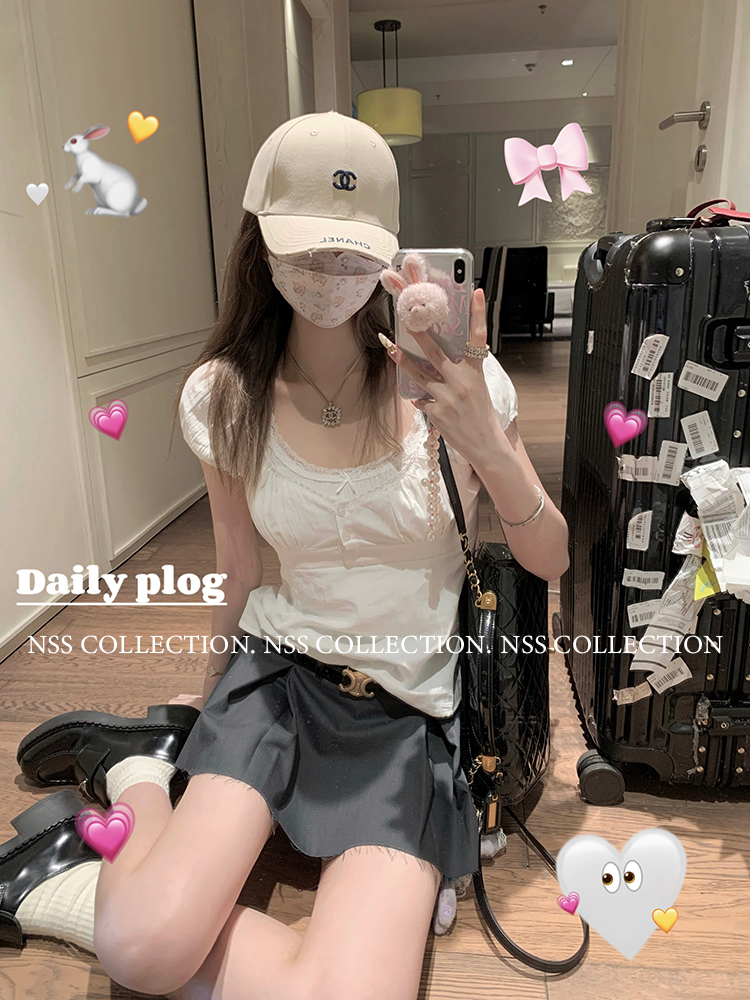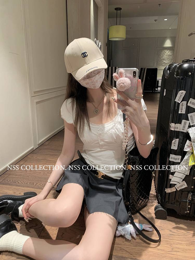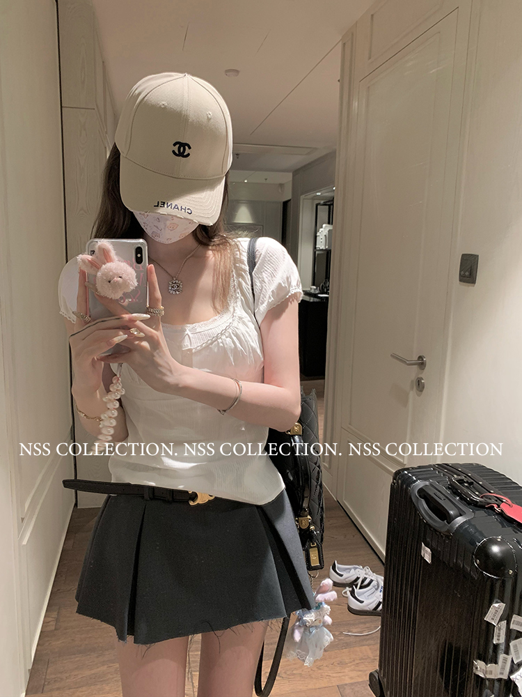 NSS COLLECTION 莉莉子 蝴蝶結吊帶兩件套女設計感泡泡袖白色襯衫