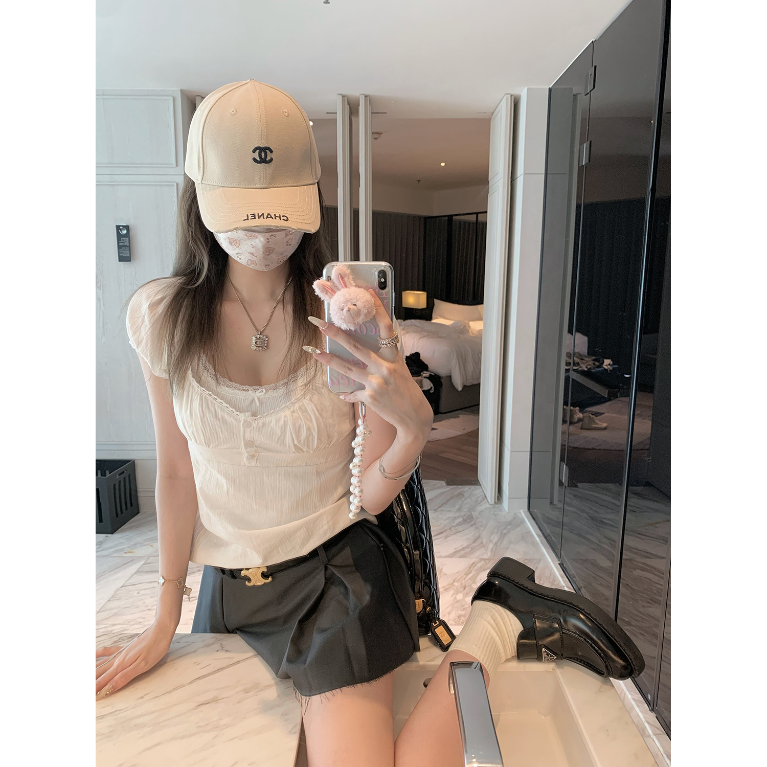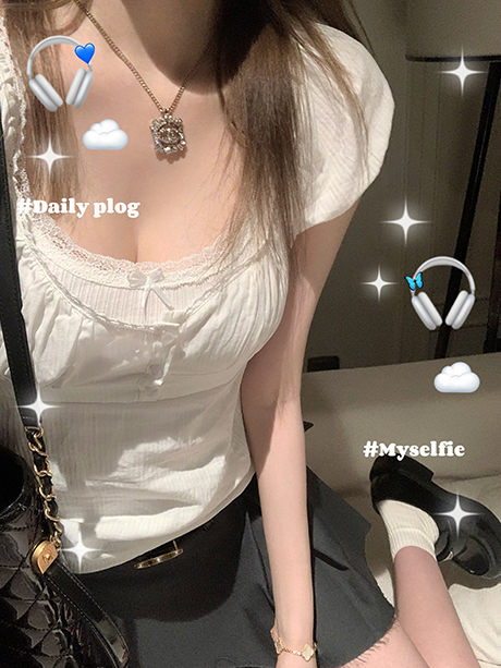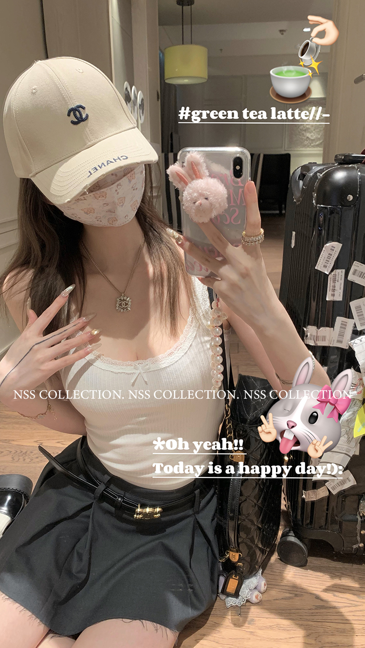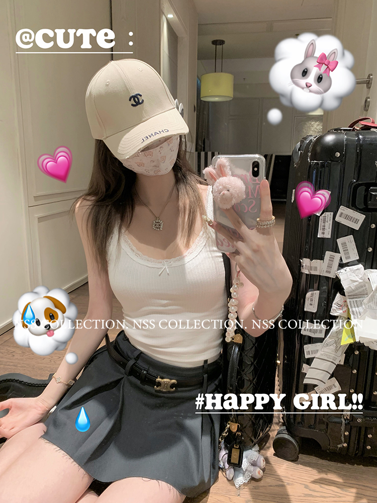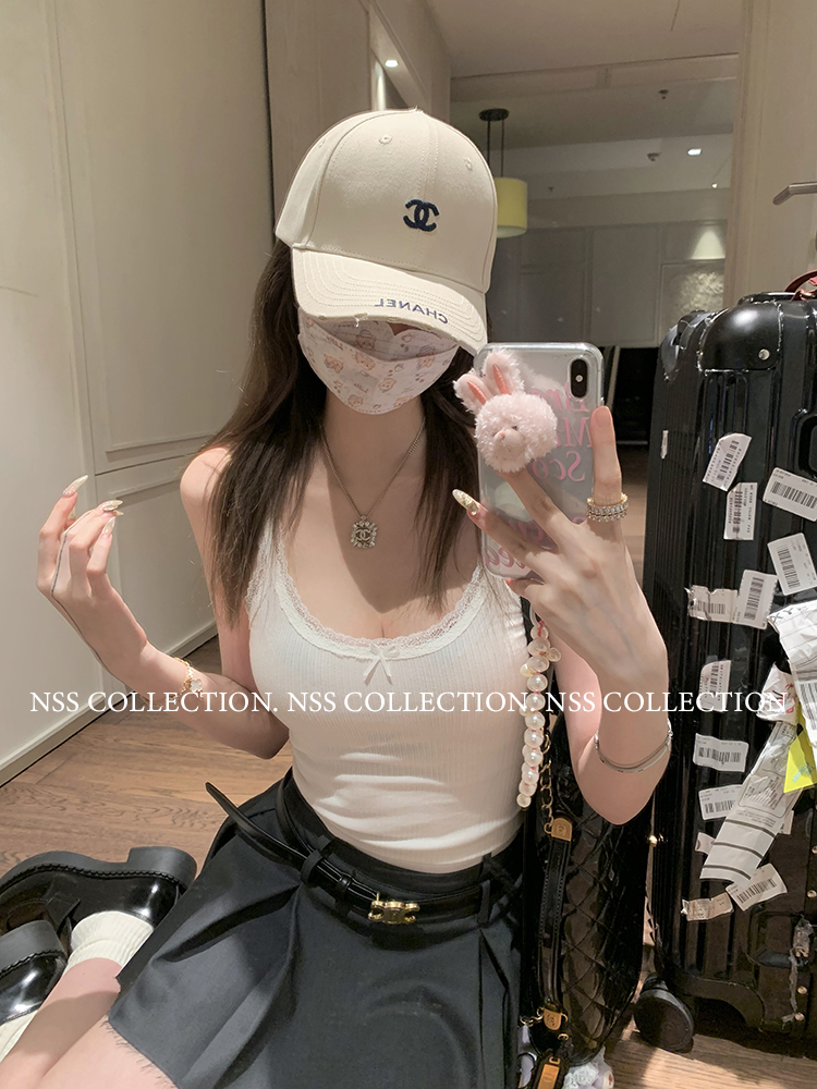 NSS COLLECTION 莉莉子 蝴蝶結吊帶兩件套女設計感泡泡袖白色襯衫