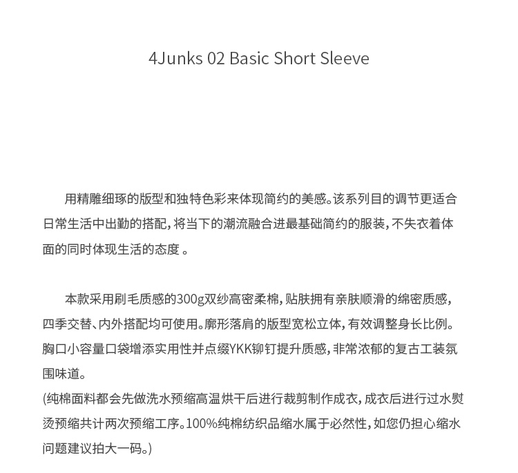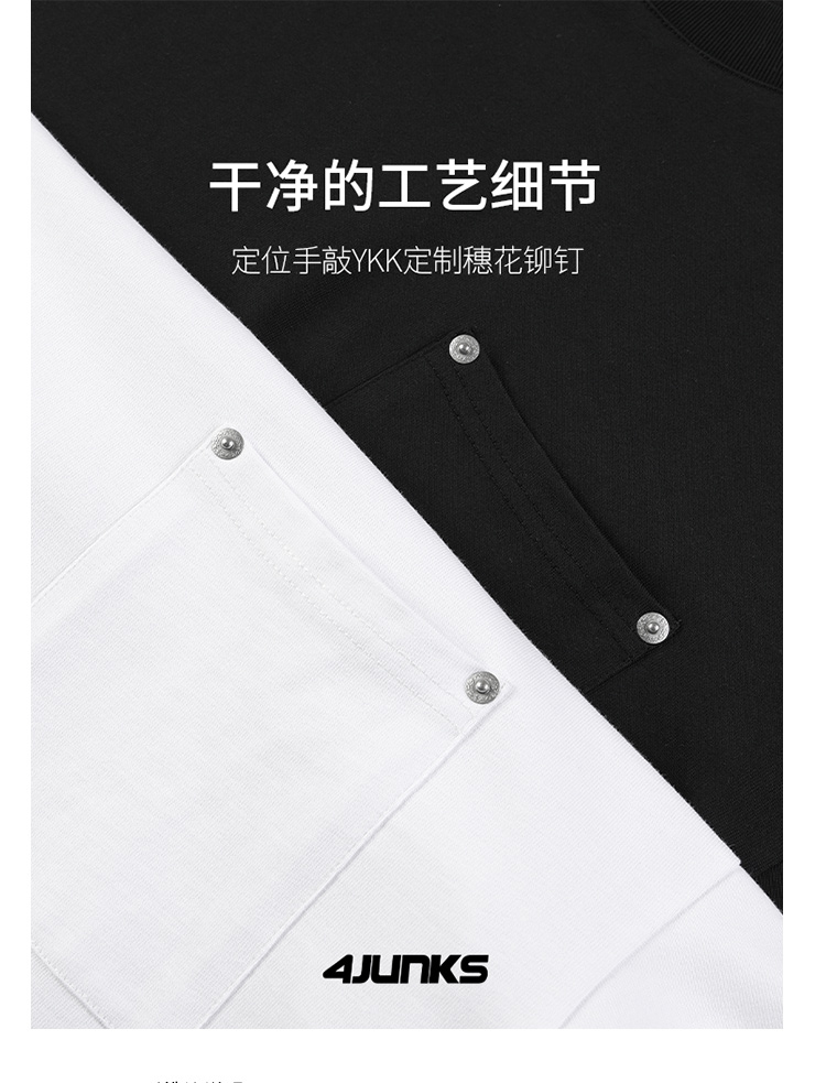 4Junks 02 Basic 基礎百搭 Short Sleeve 復古小領口袋鉚釘短袖