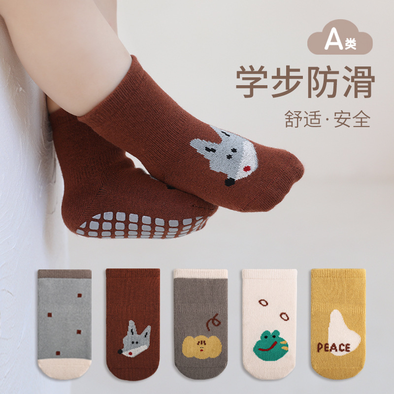 2023秋季新品宝宝地板袜室内防滑全底胶无骨婴儿地板学步中筒棉袜