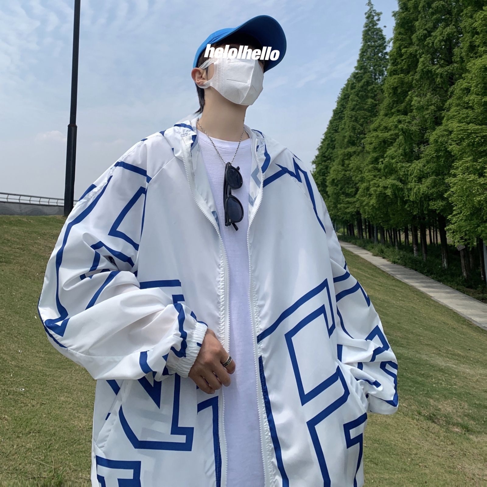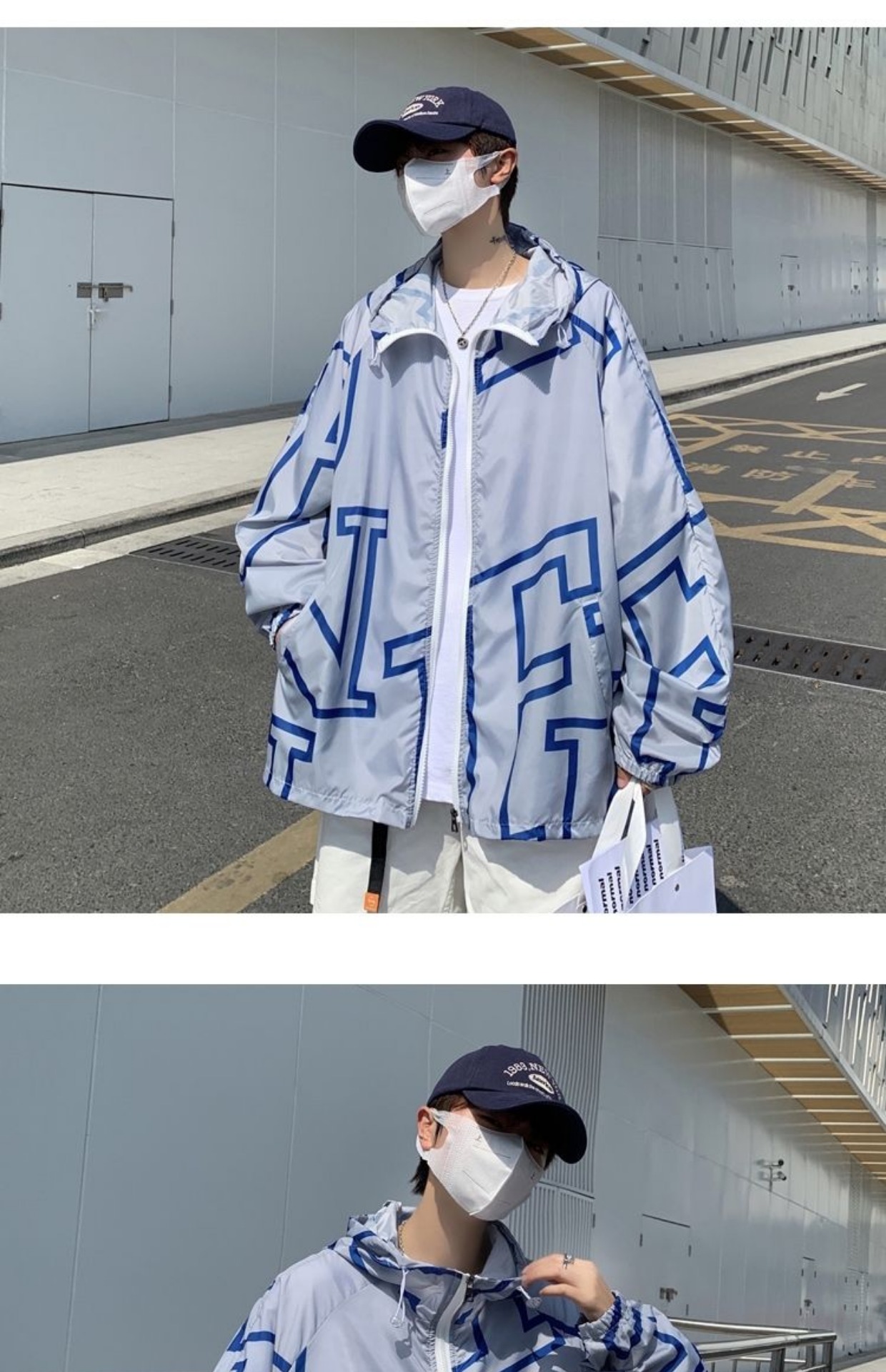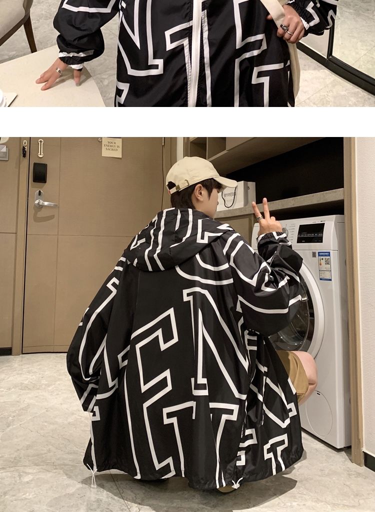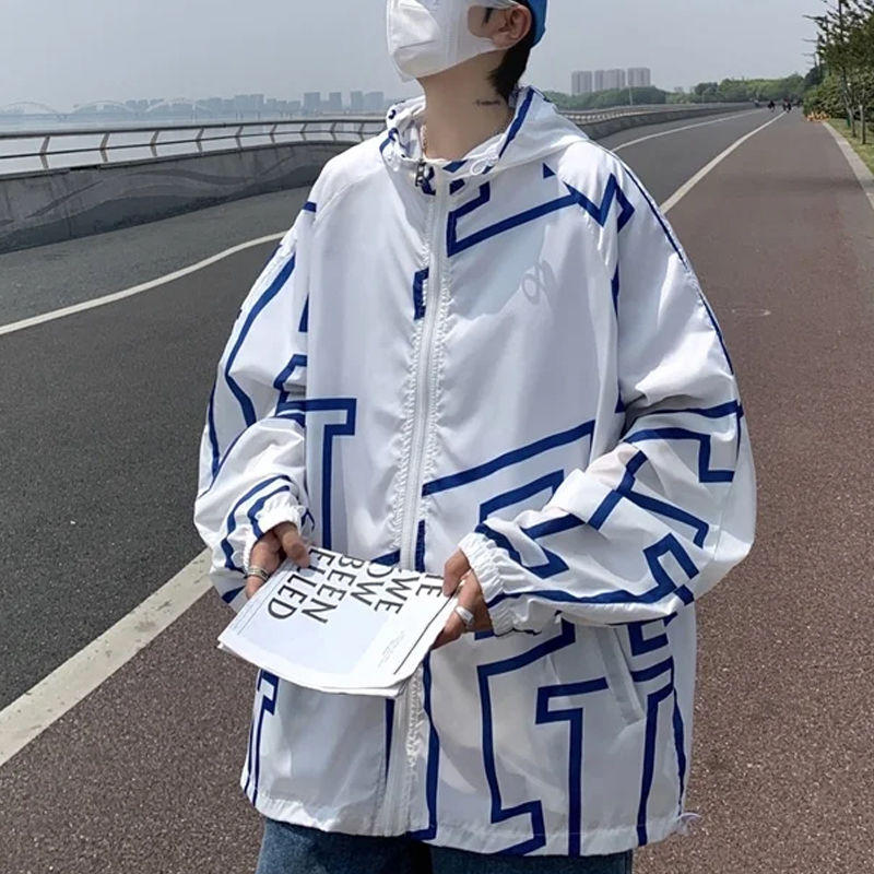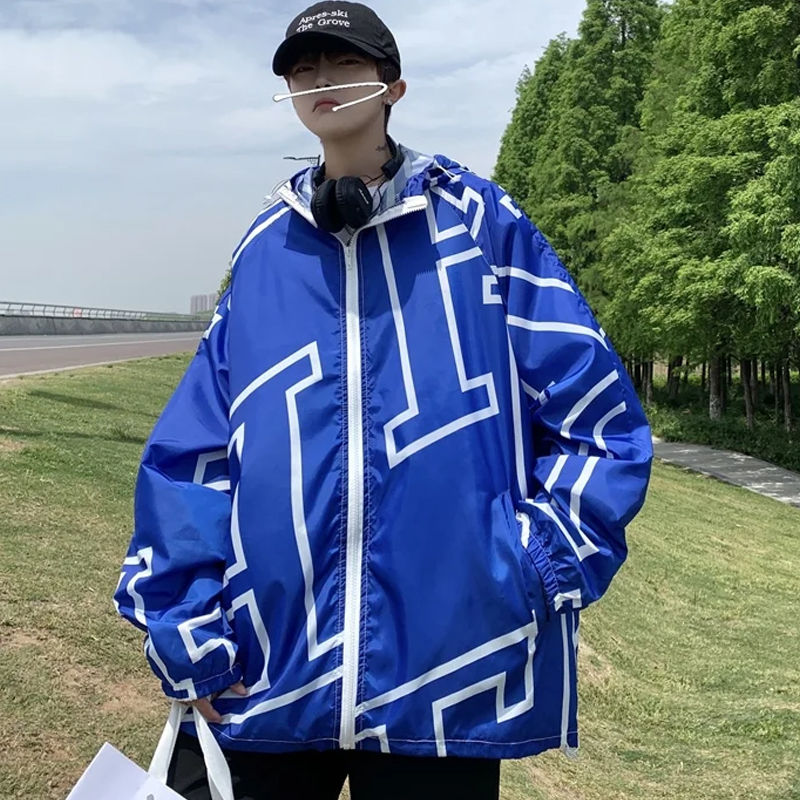大尺碼300斤冰絲時尚防曬服男女夏季潮牌寬鬆休閒情侶防曬外套男