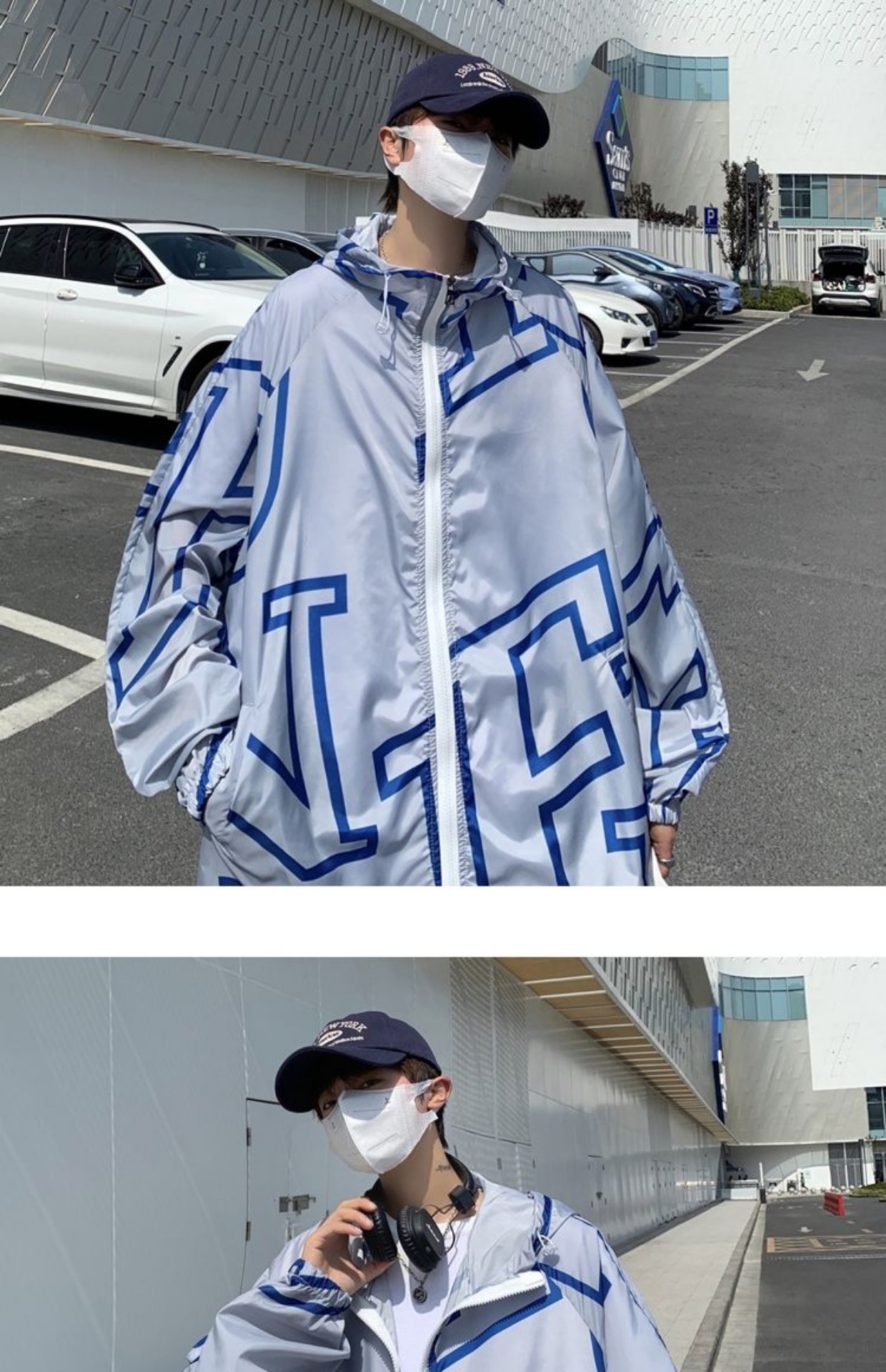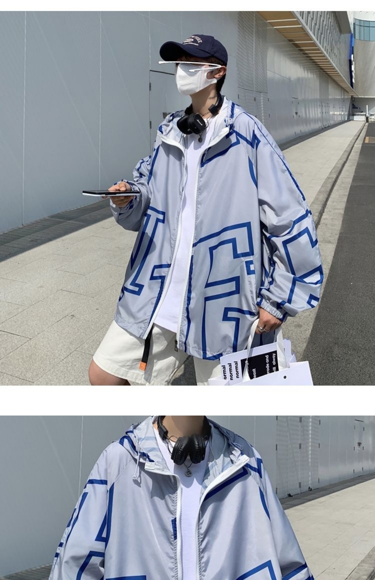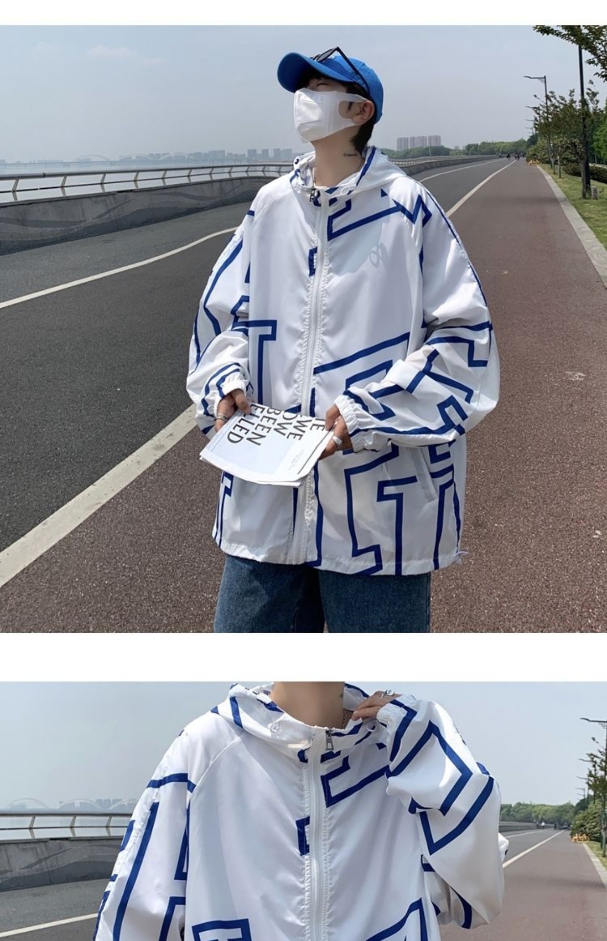 大尺碼300斤冰絲時尚防曬服男女夏季潮牌寬鬆休閒情侶防曬外套男