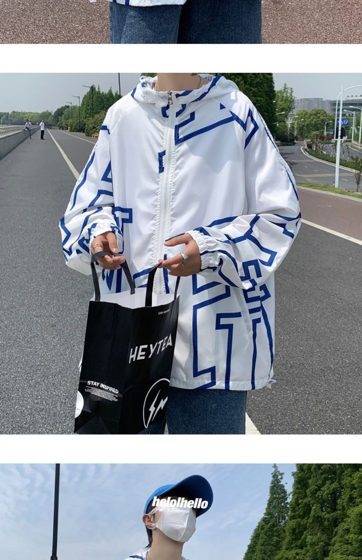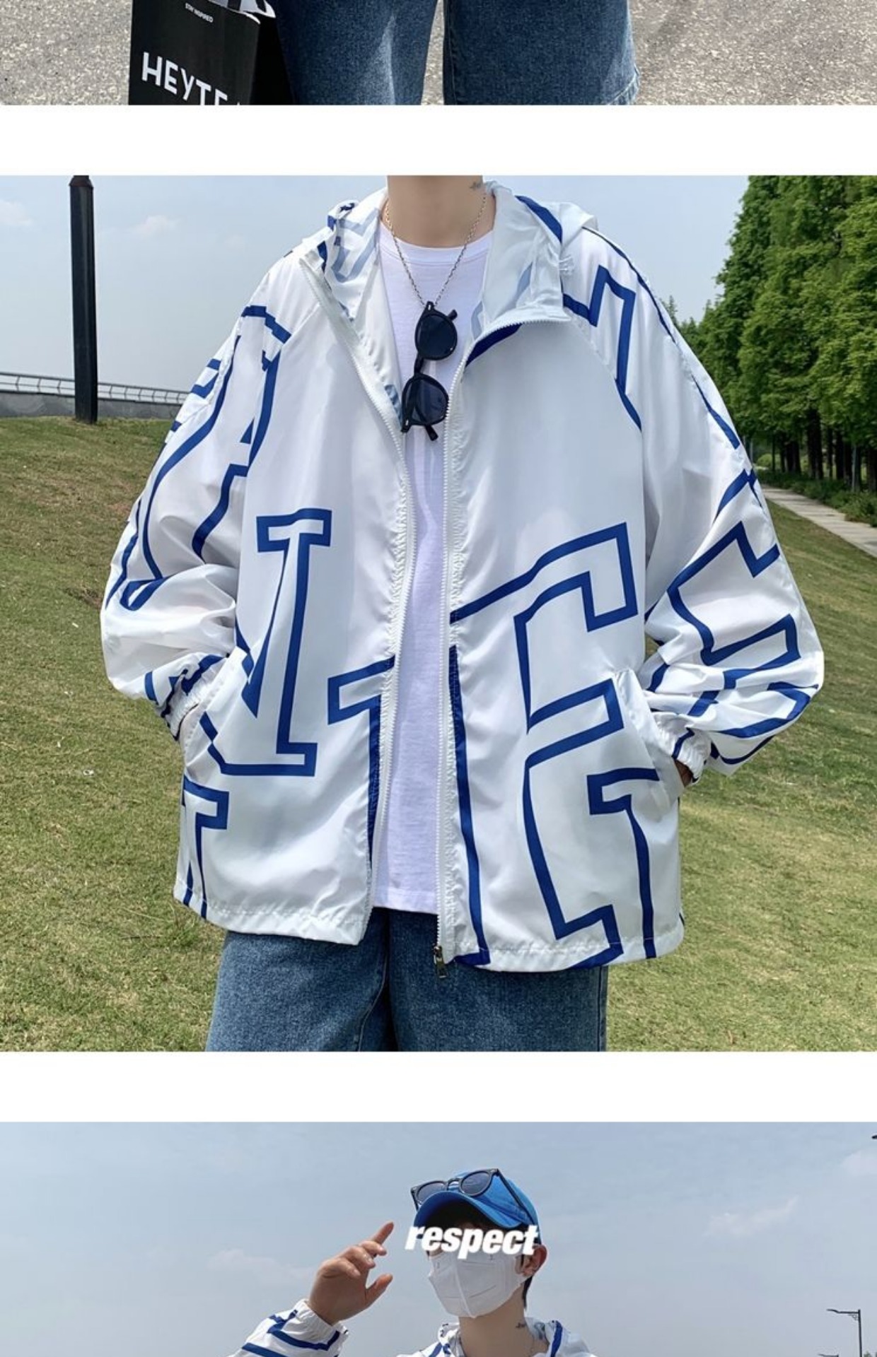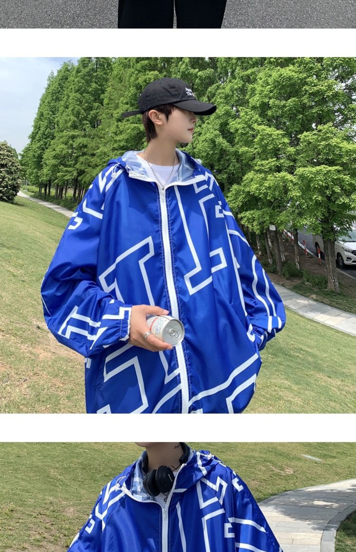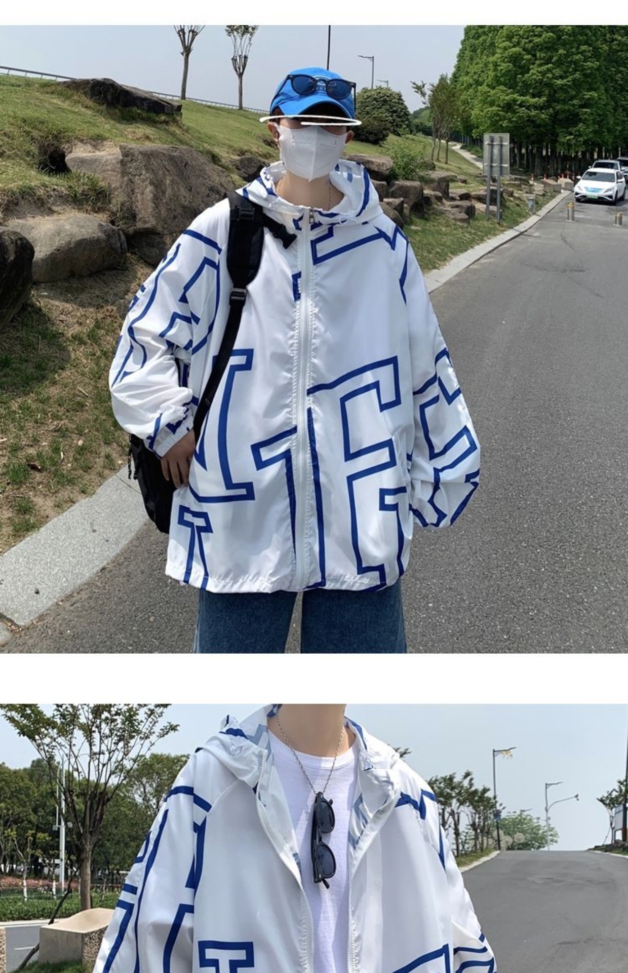 大尺碼300斤冰絲時尚防曬服男女夏季潮牌寬鬆休閒情侶防曬外套男