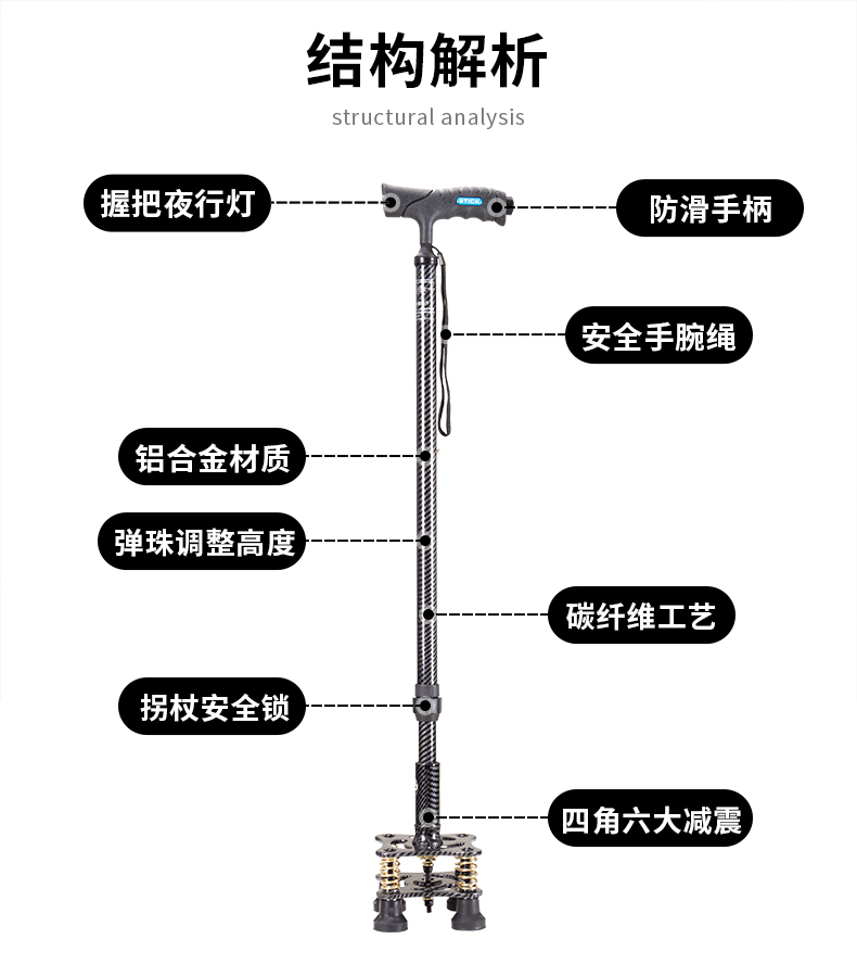 柺杖老人防滑輕便老年人專用伸縮四角拐扙鋁合金四腳減震手杖柺棍
