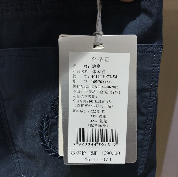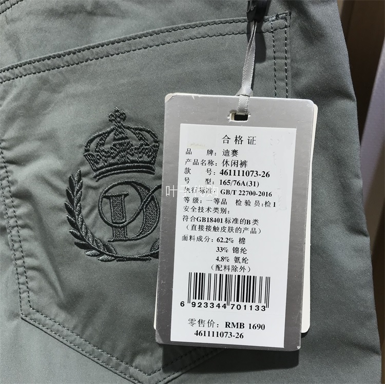 迪賽DEICAE正品男裝春夏季休閒褲直筒經典款長褲舒百搭適專櫃1690