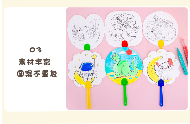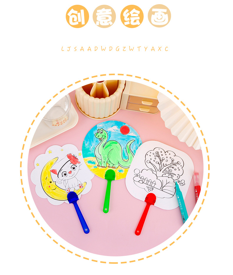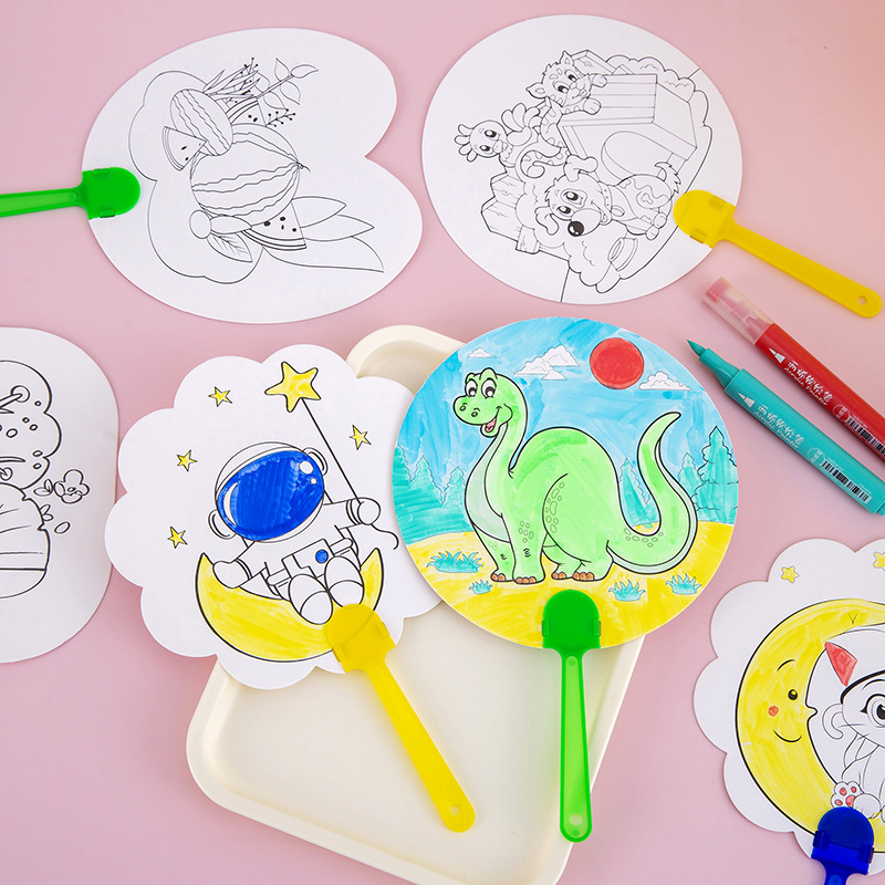 DIY涂鸦扇儿童卡通小扇子 幼儿园手工益智小礼品小学生彩绘填色