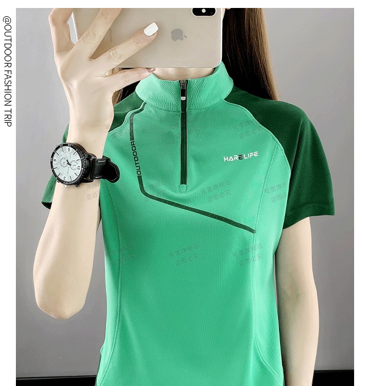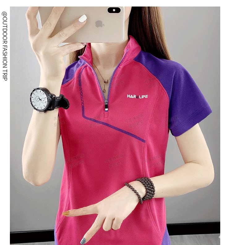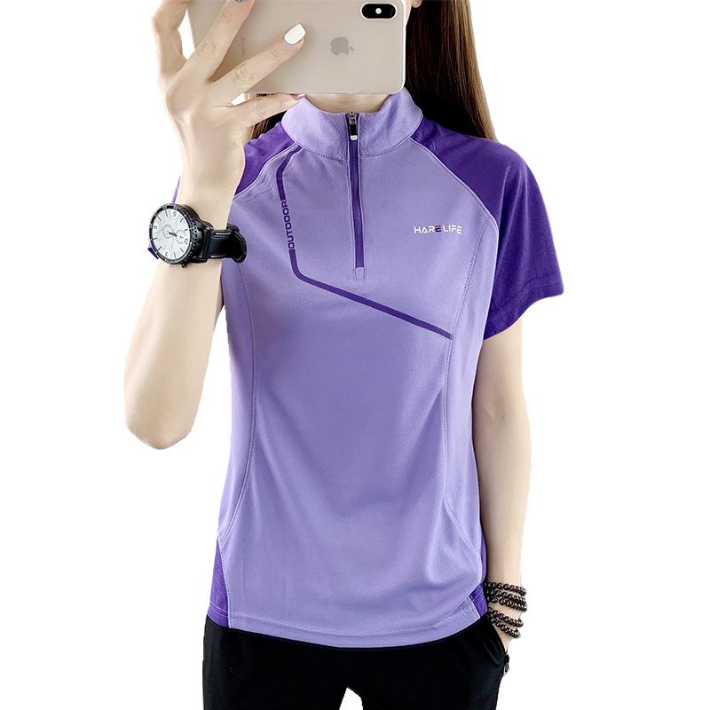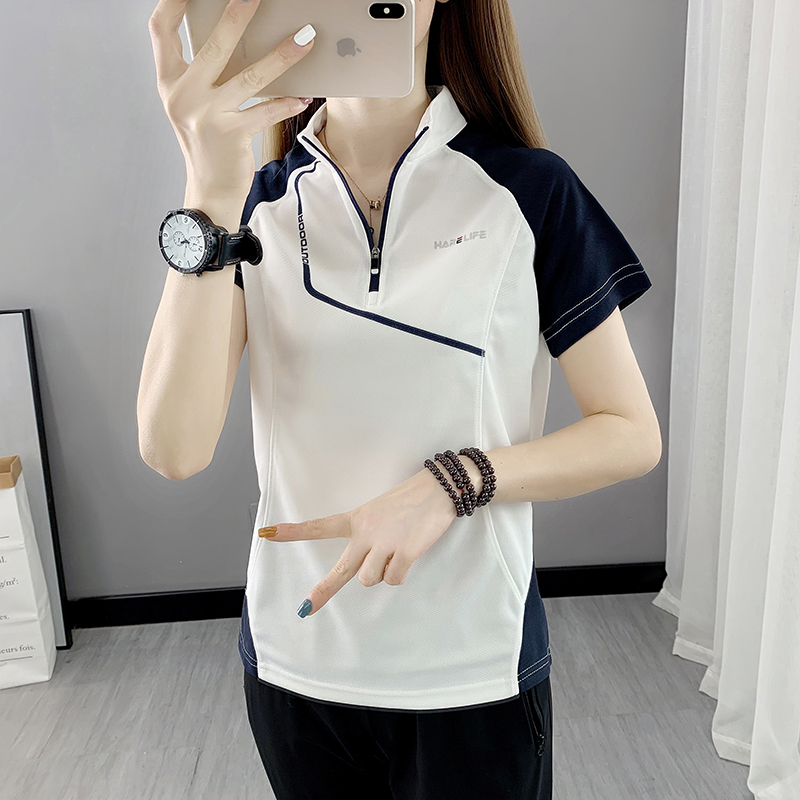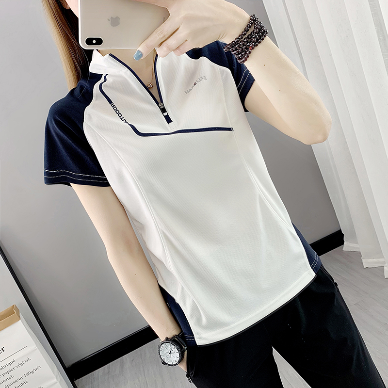 速乾衣女短袖立領跑步健身寬鬆運動登山夏季透氣休閒上衣快乾T恤