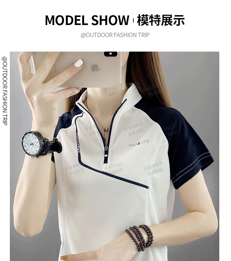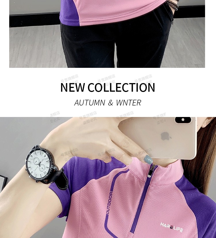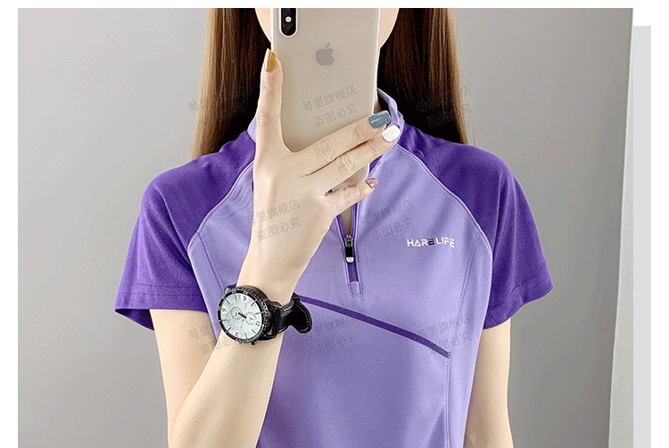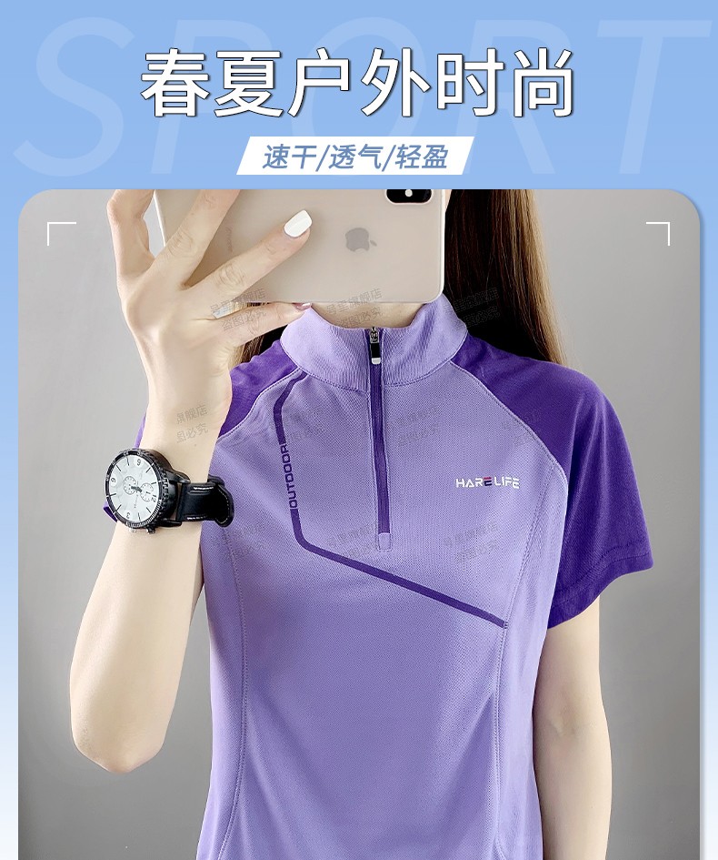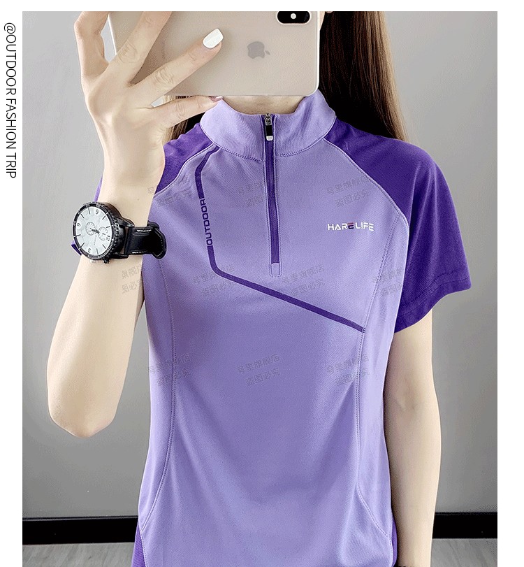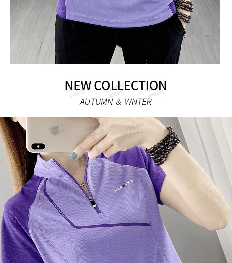 速乾衣女短袖立領跑步健身寬鬆運動登山夏季透氣休閒上衣快乾T恤