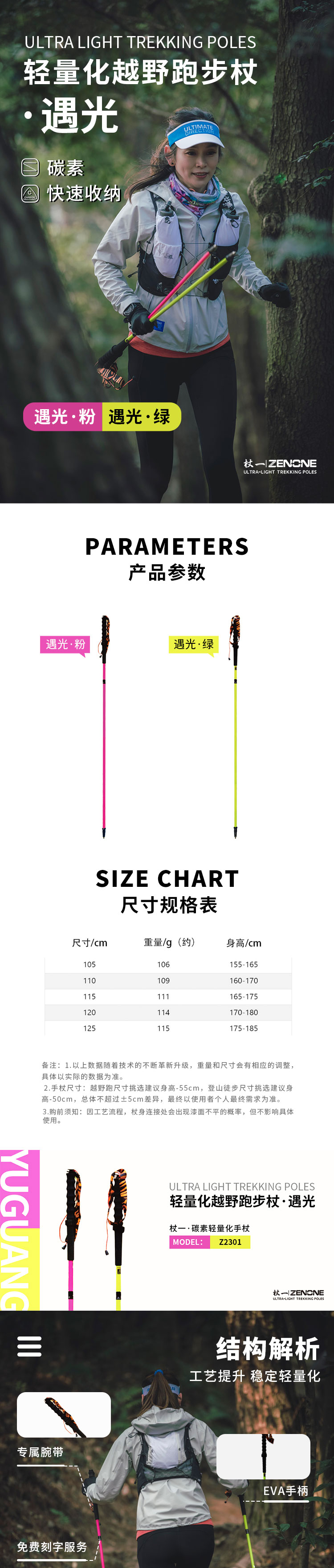 杖一超輕碳纖維登山杖戶外徒步手杖越野跑越野杖-遇光 Z2301