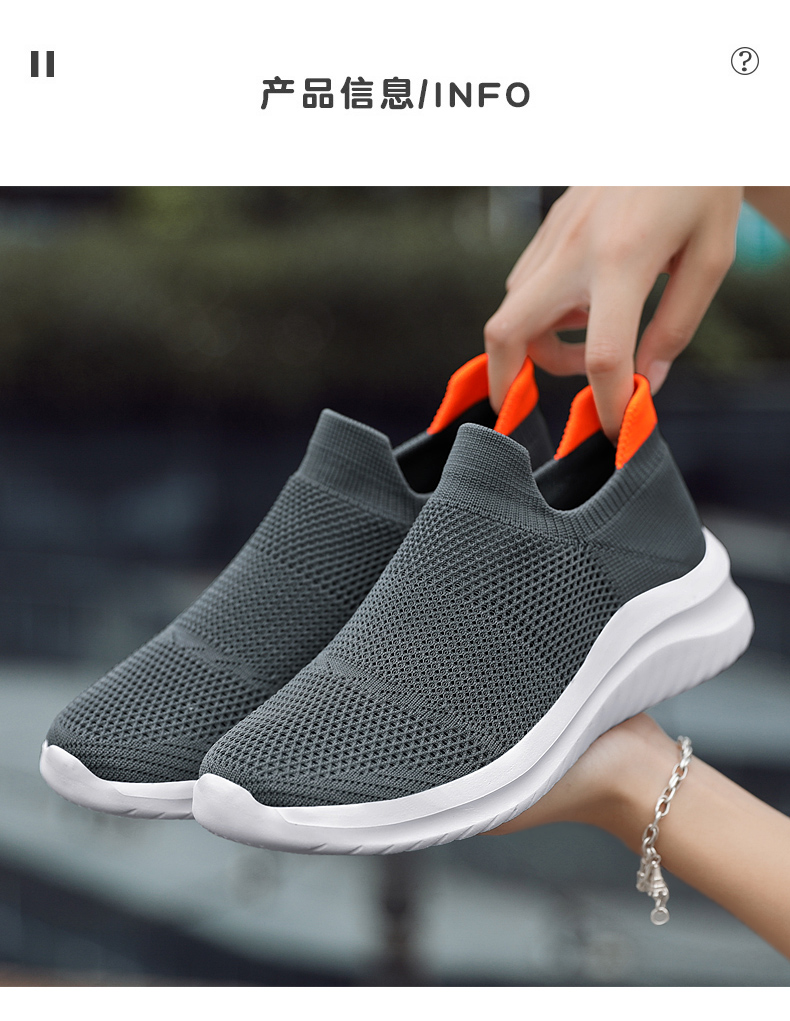 老北京布鞋男士夏季網面飛織透氣一腳蹬黑色男款厚底休閒運動男鞋
