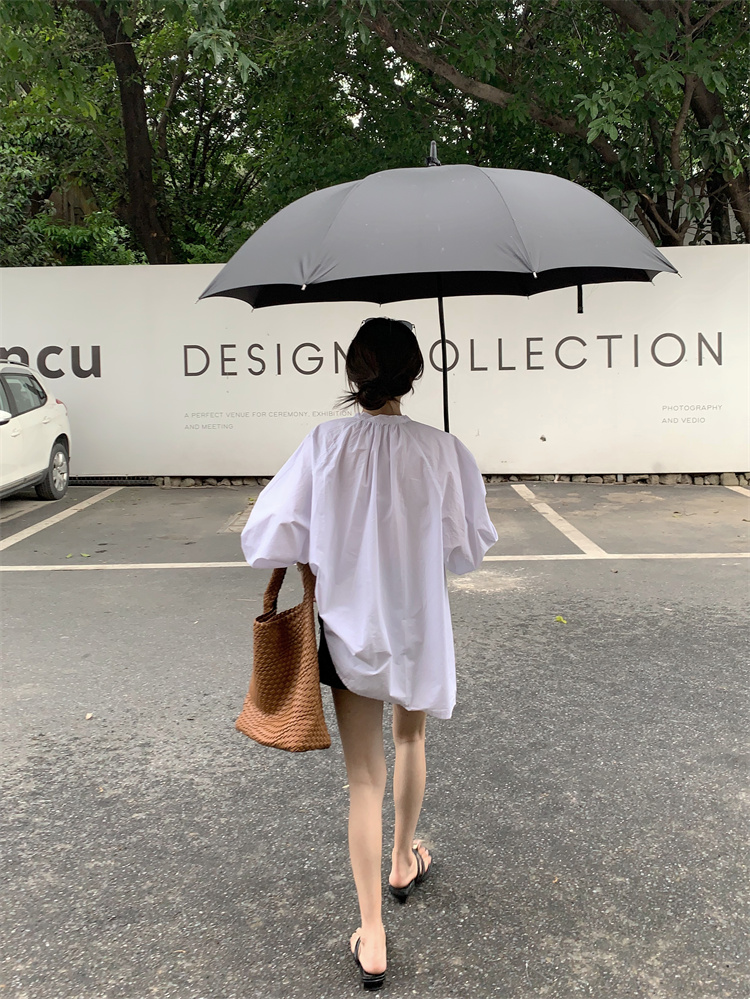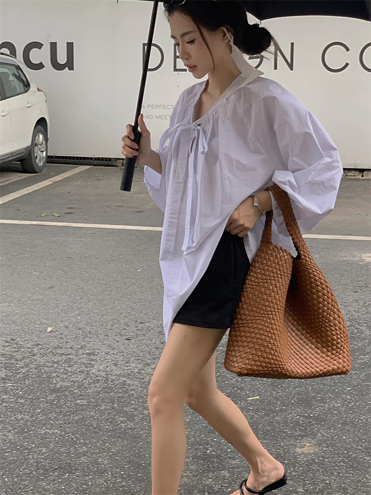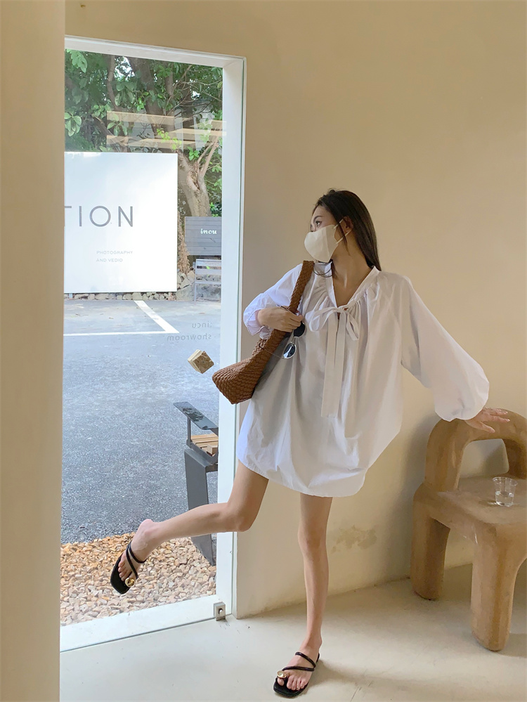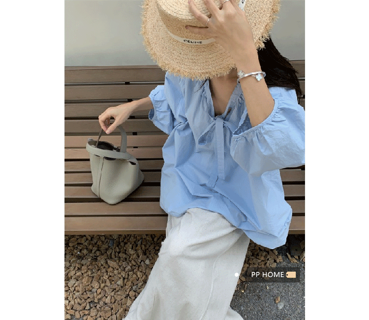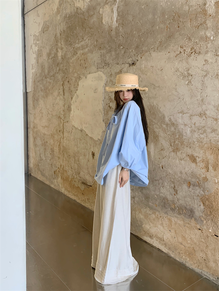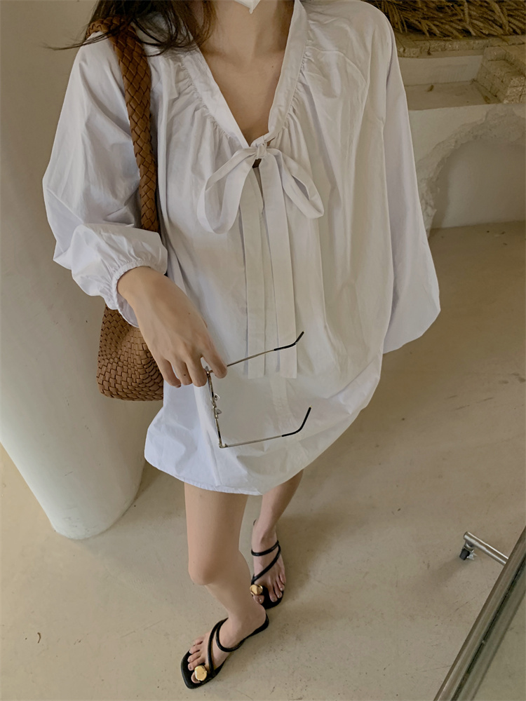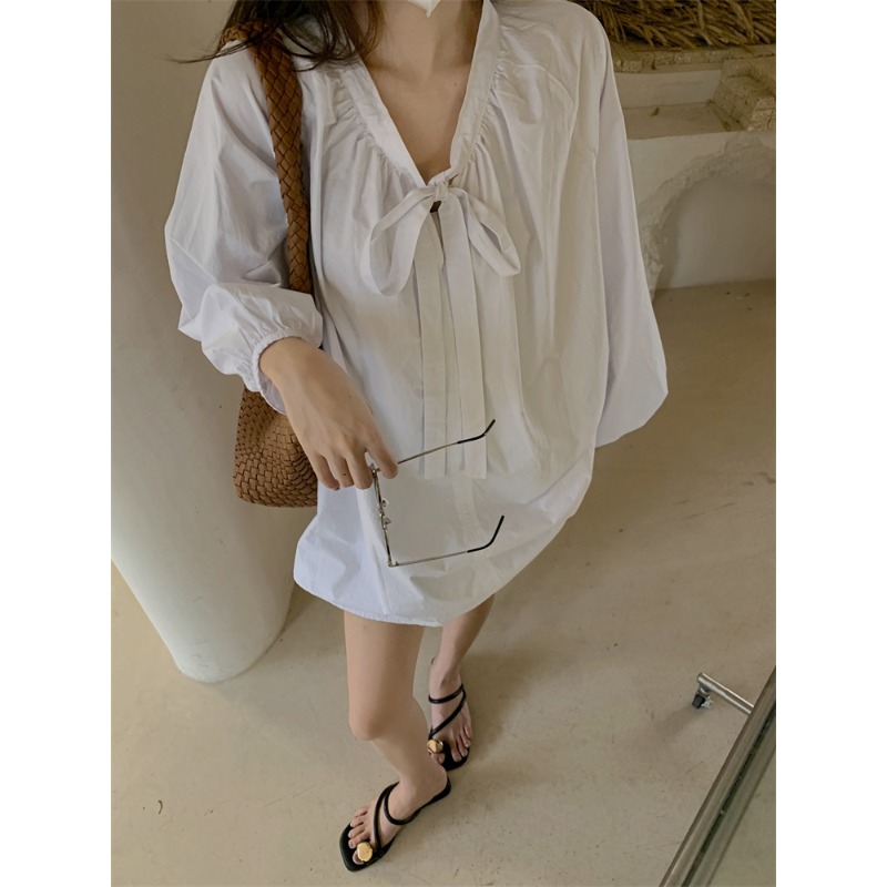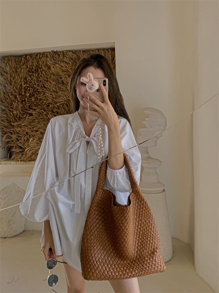 PPHOME甜偶劇女主~法式氣質V領長袖襯衫女高級寬鬆百搭燈籠袖上衣