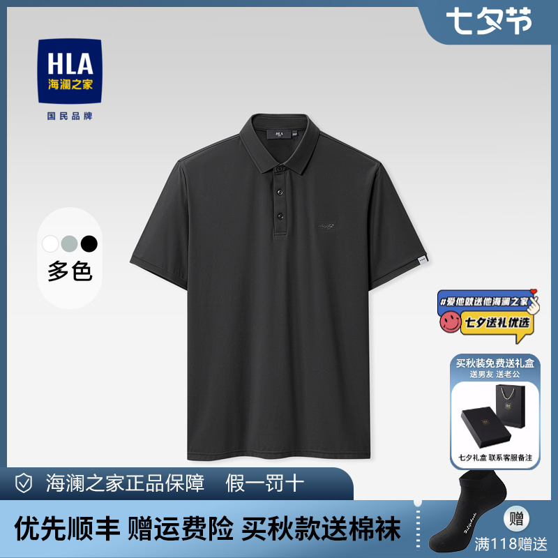 HLA/海瀾之家輕商務短袖Polo2023春夏新款印花翻領涼感短袖T恤男