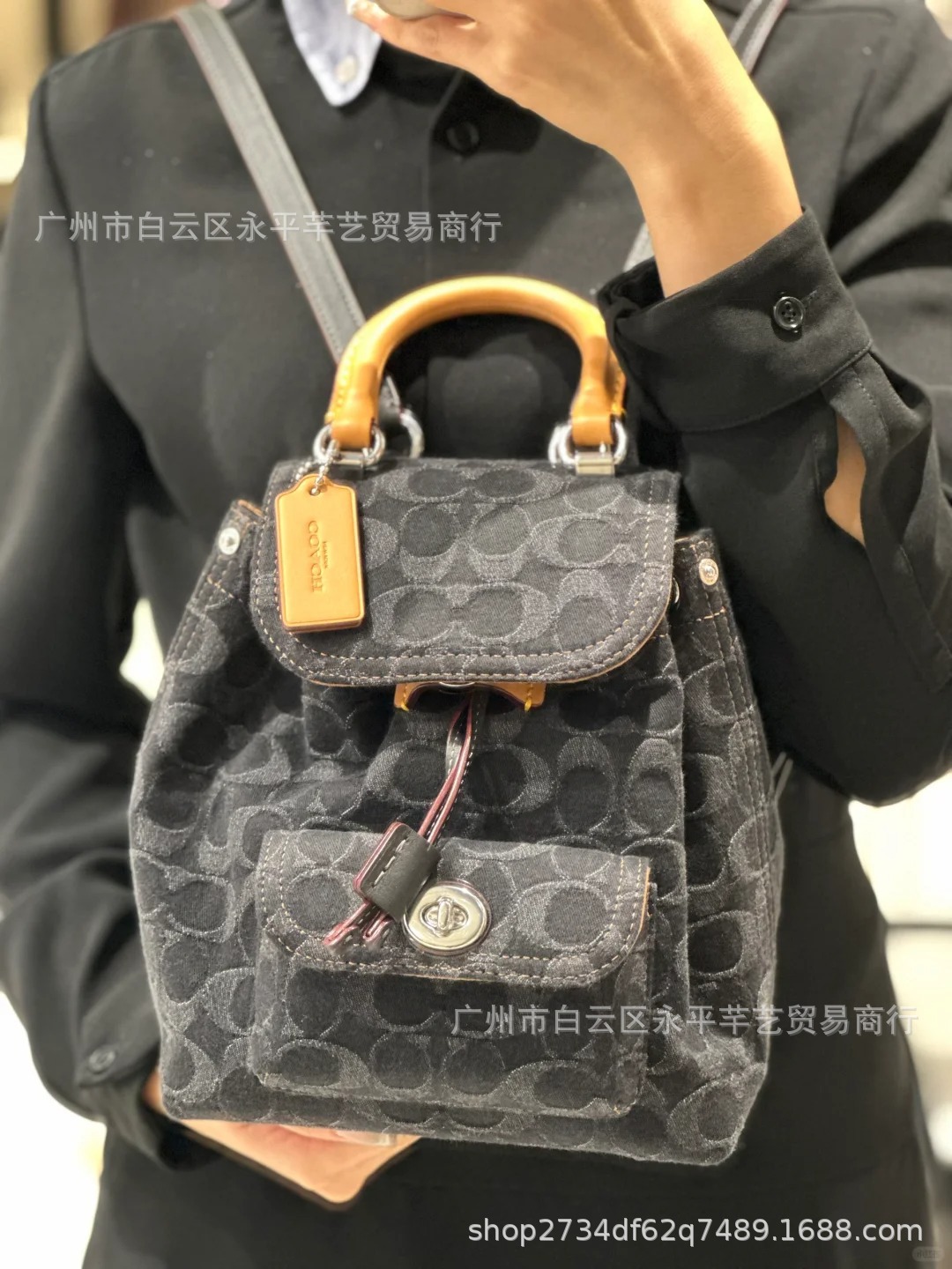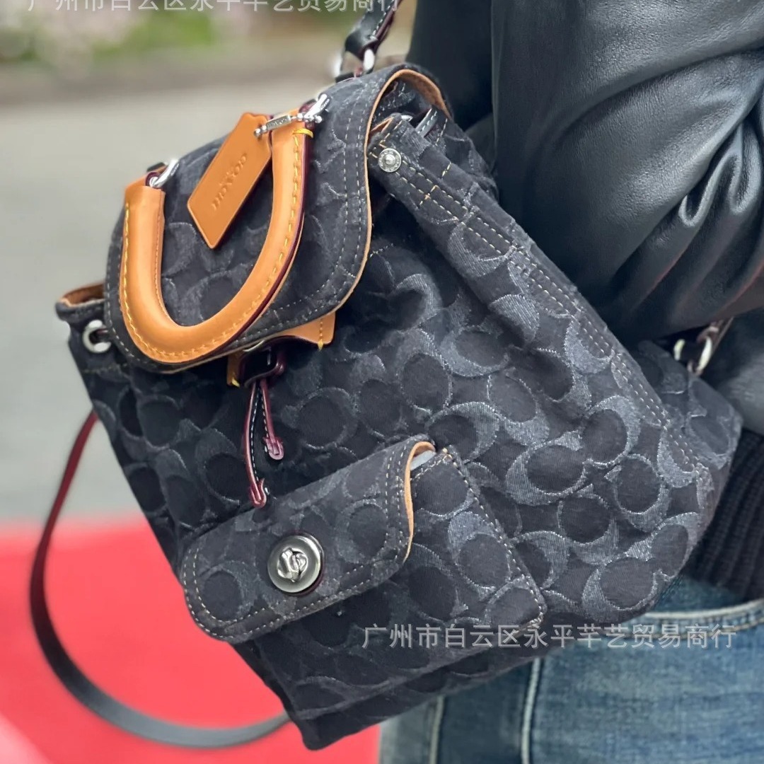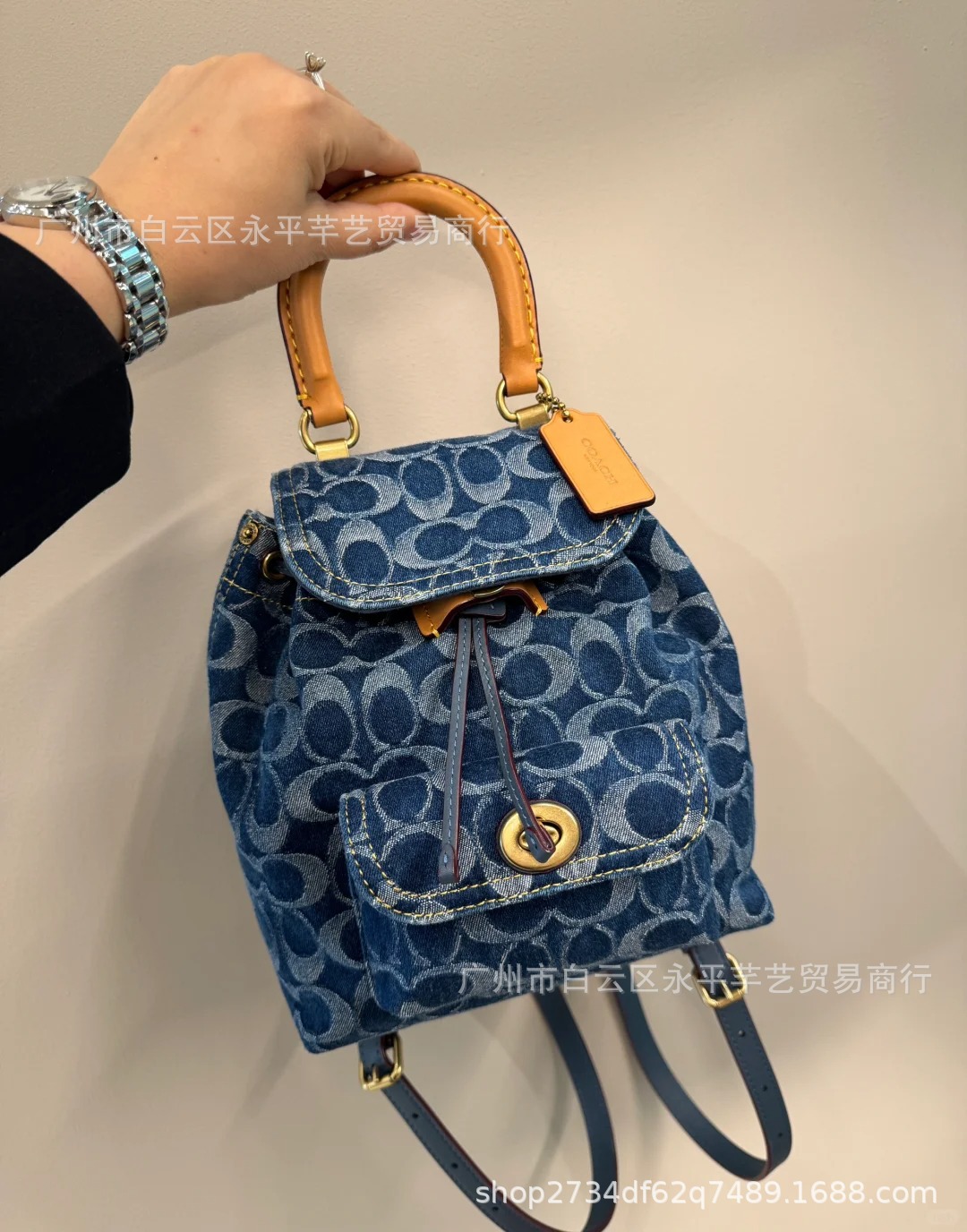 2024新款包包Riya丹宁双肩包时尚百搭牛仔布手提包单肩包出游必备