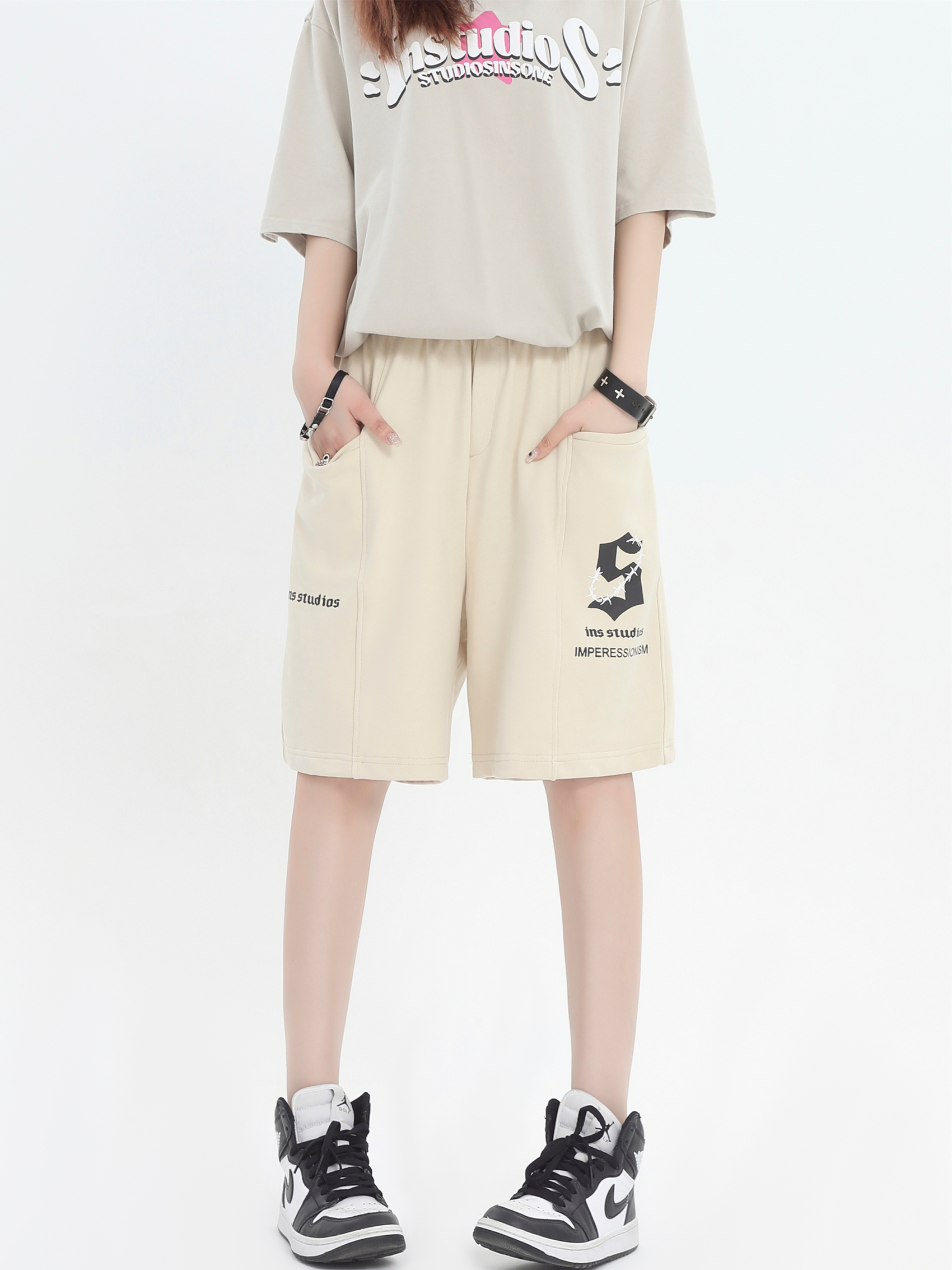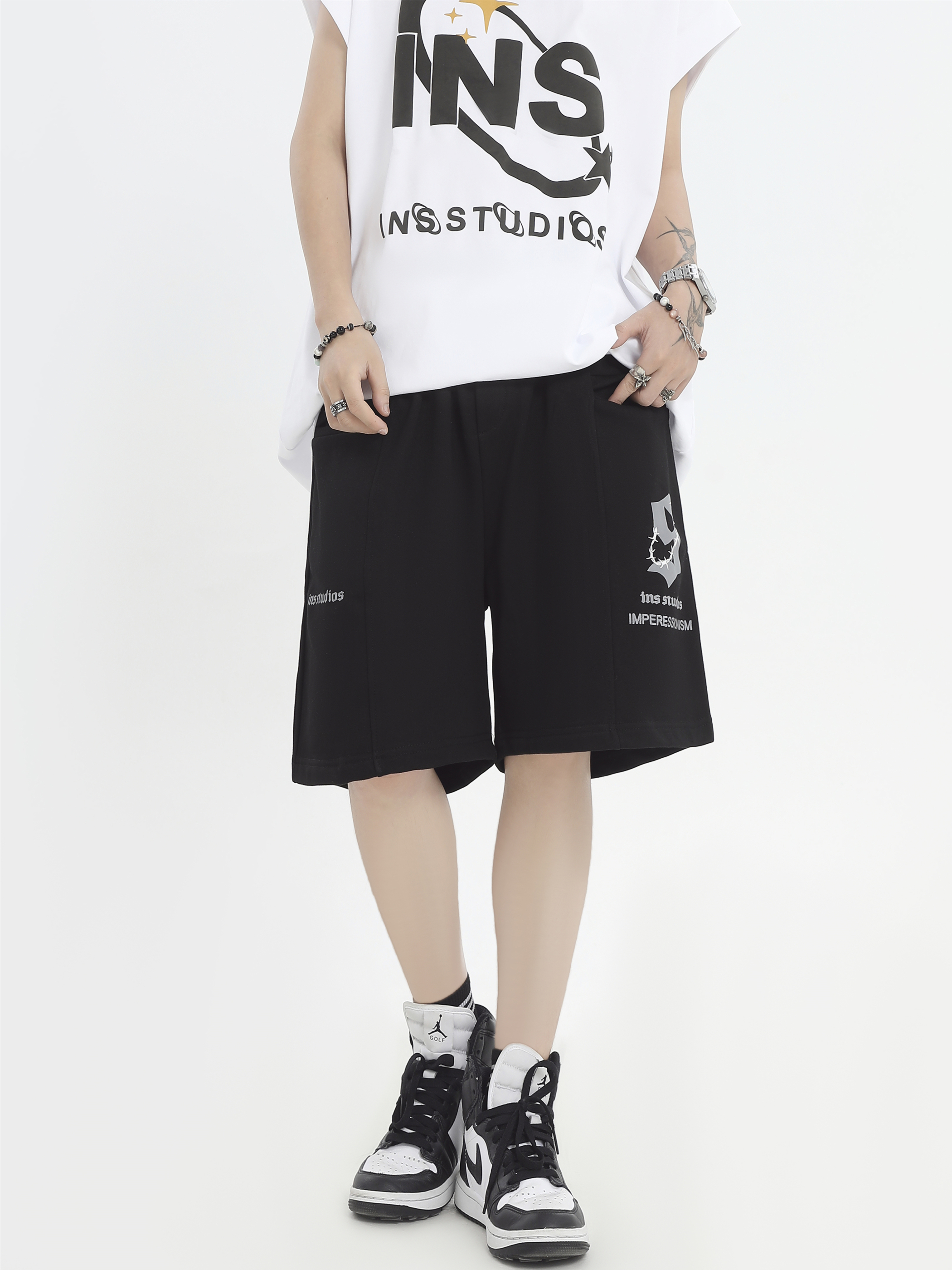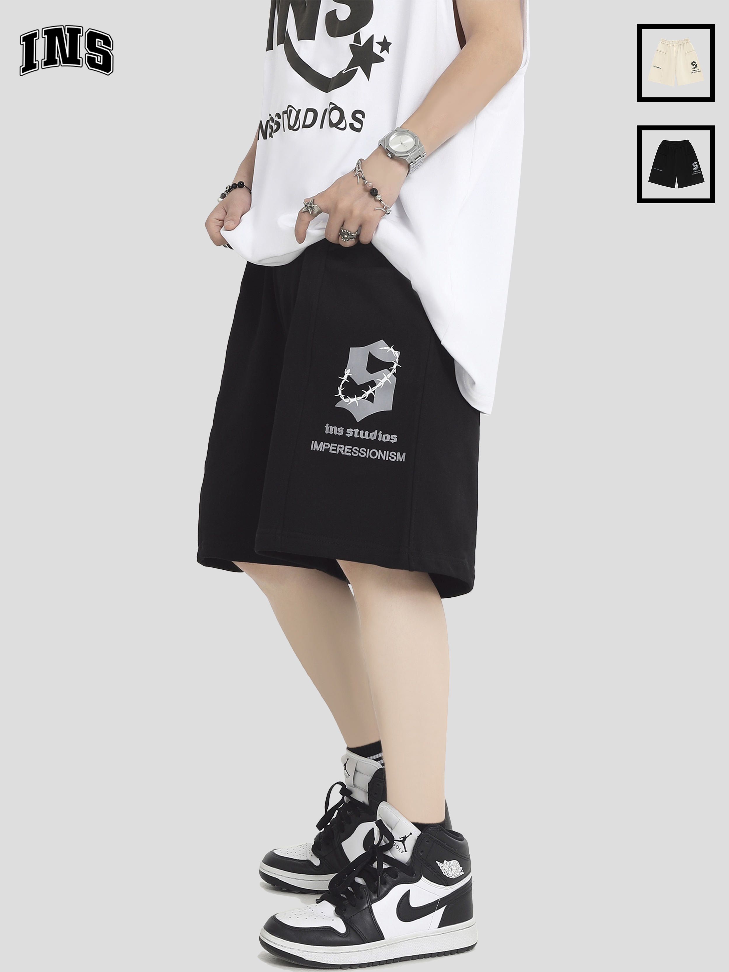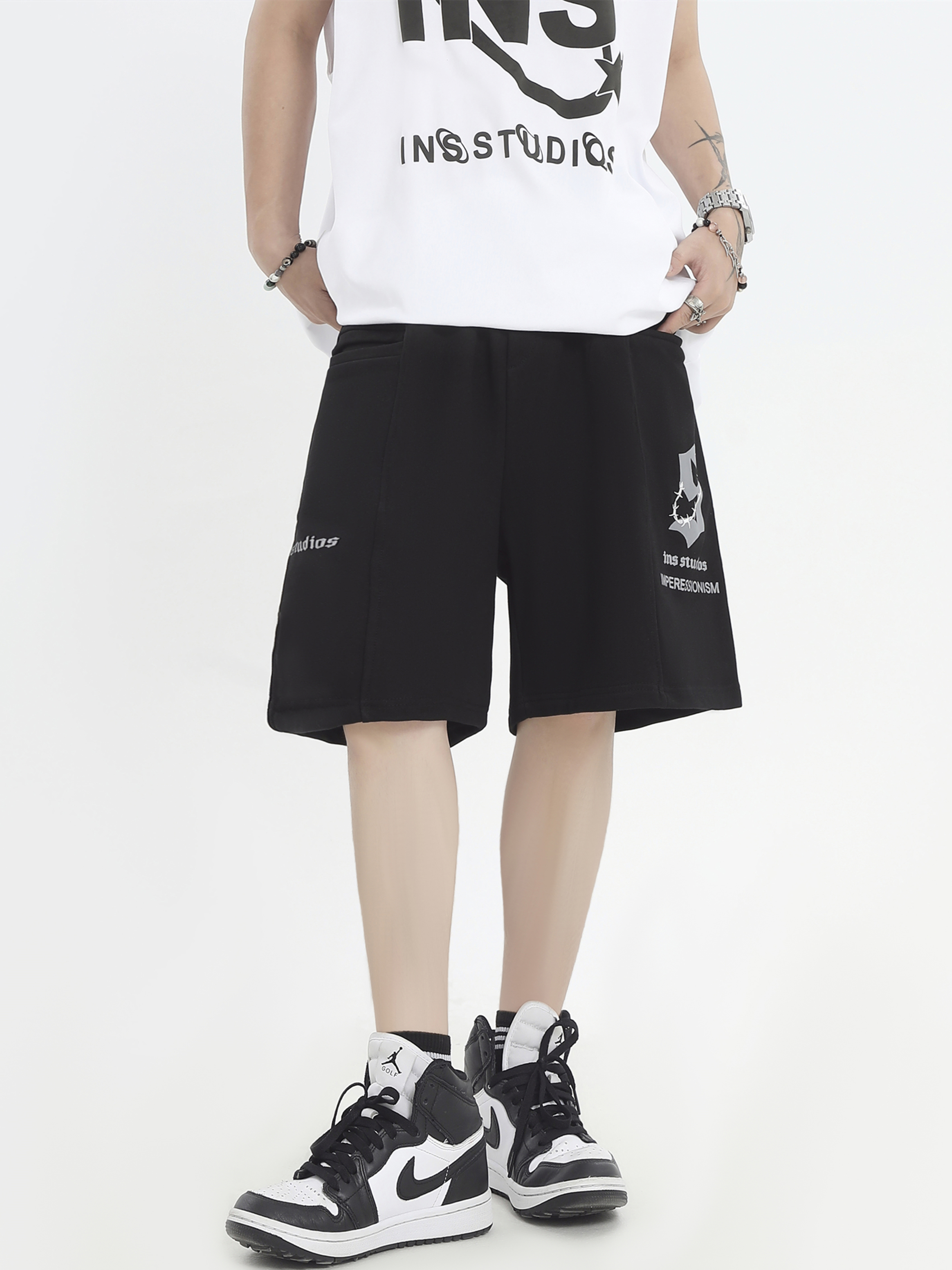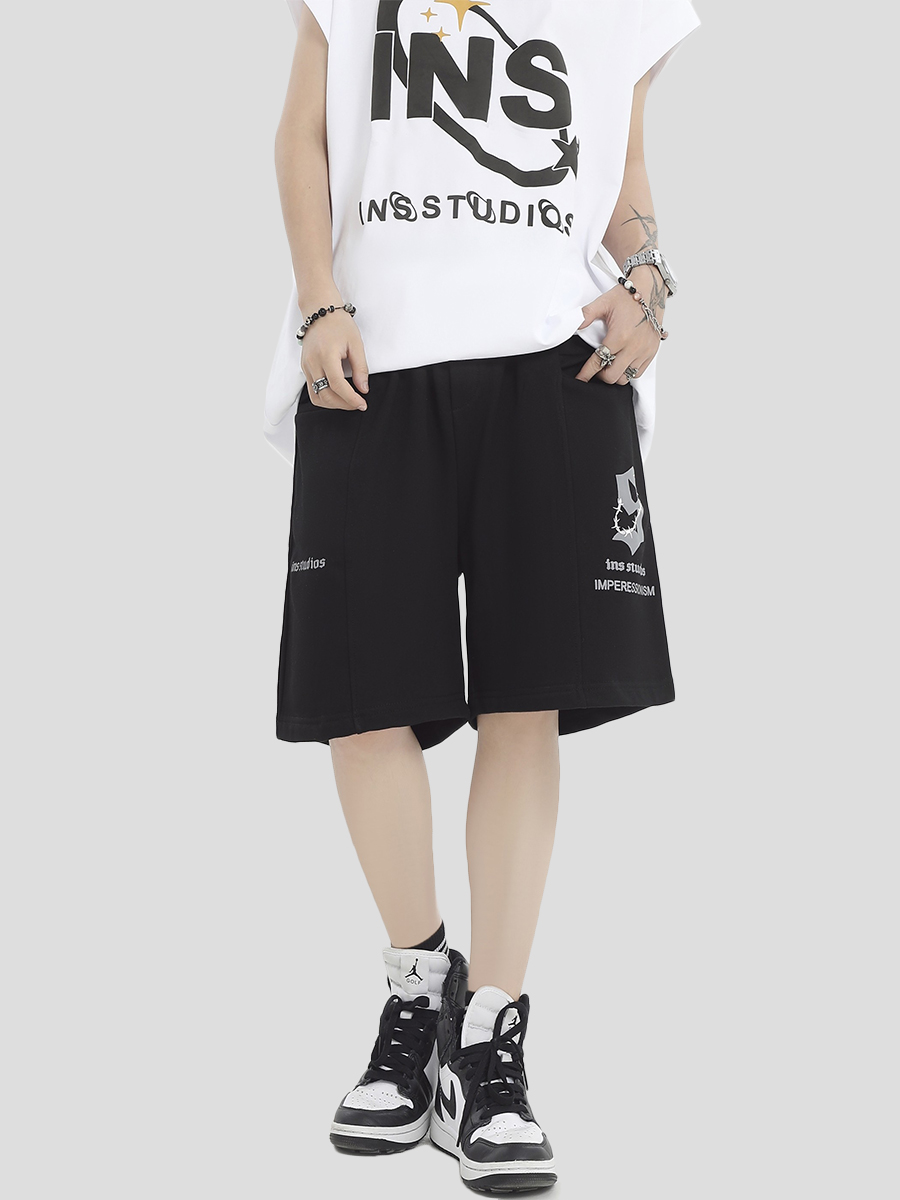 INSstudios 國潮牌情侶美式荊棘LOGO運動短褲寬鬆休閒五分褲褲子