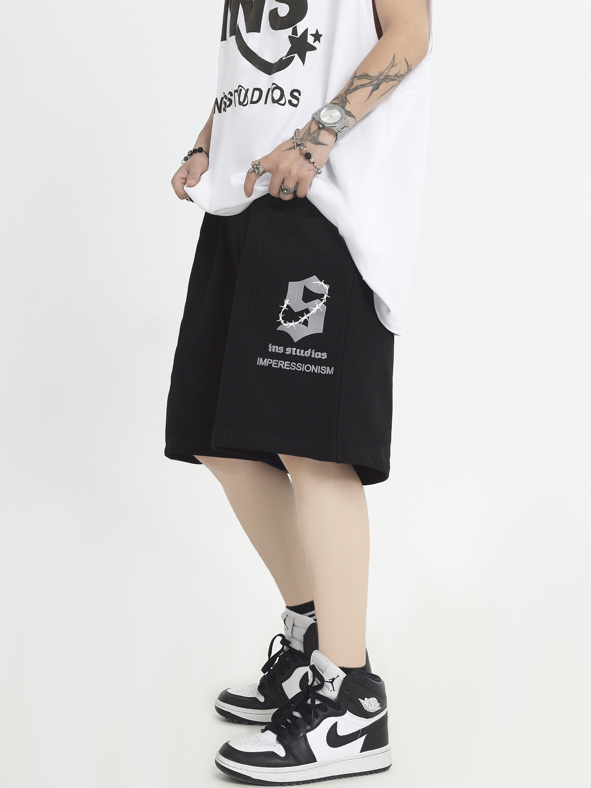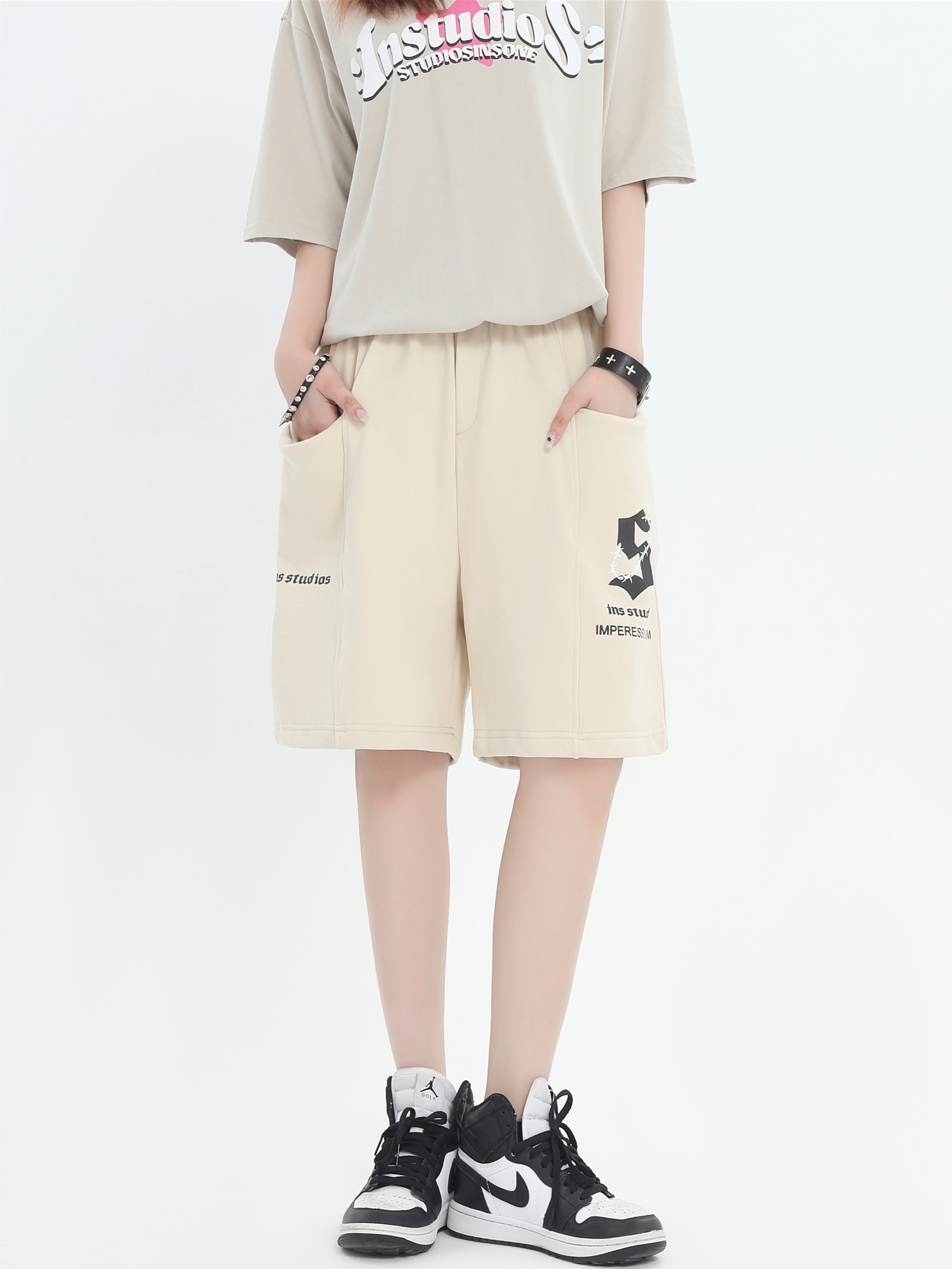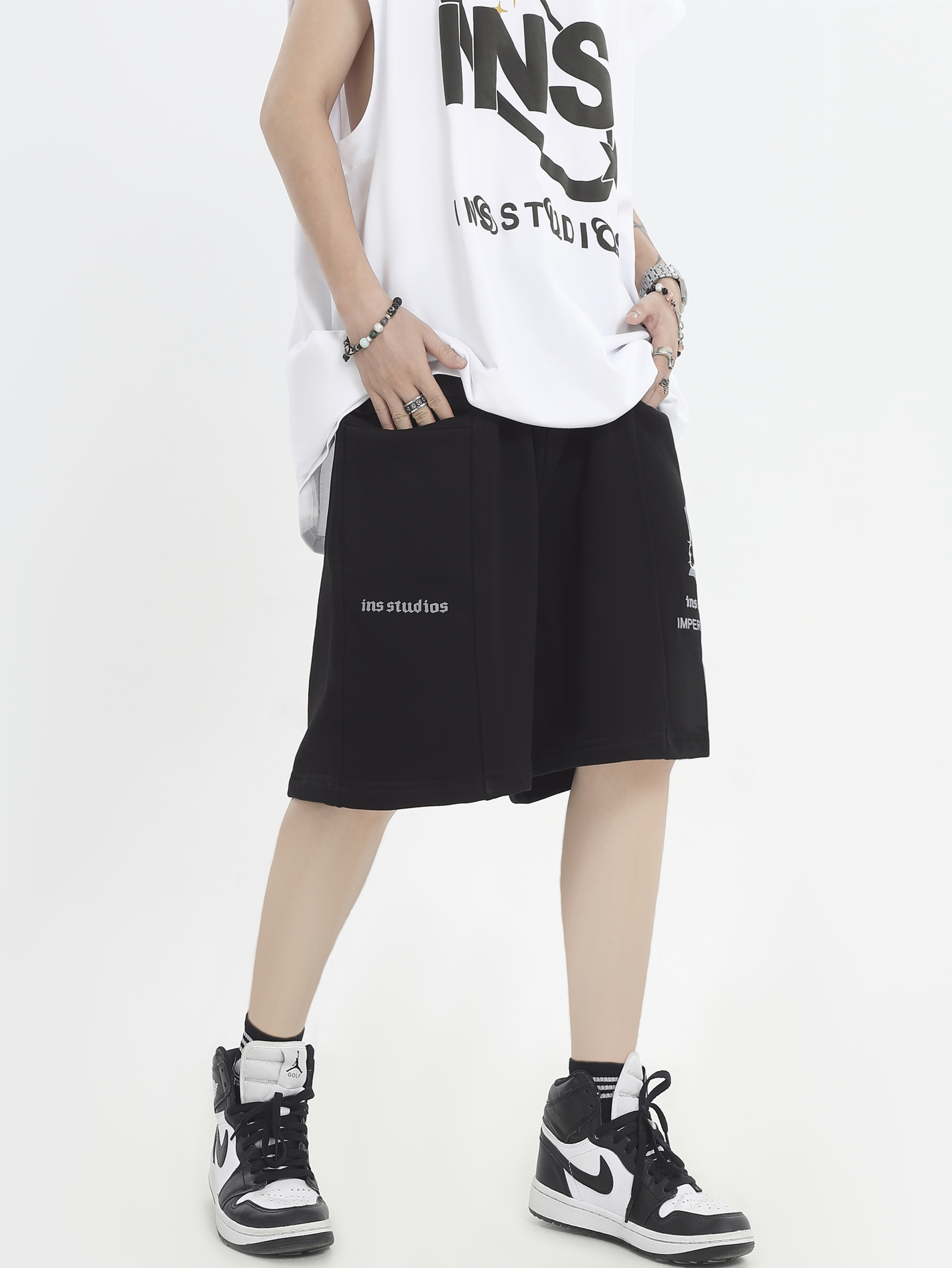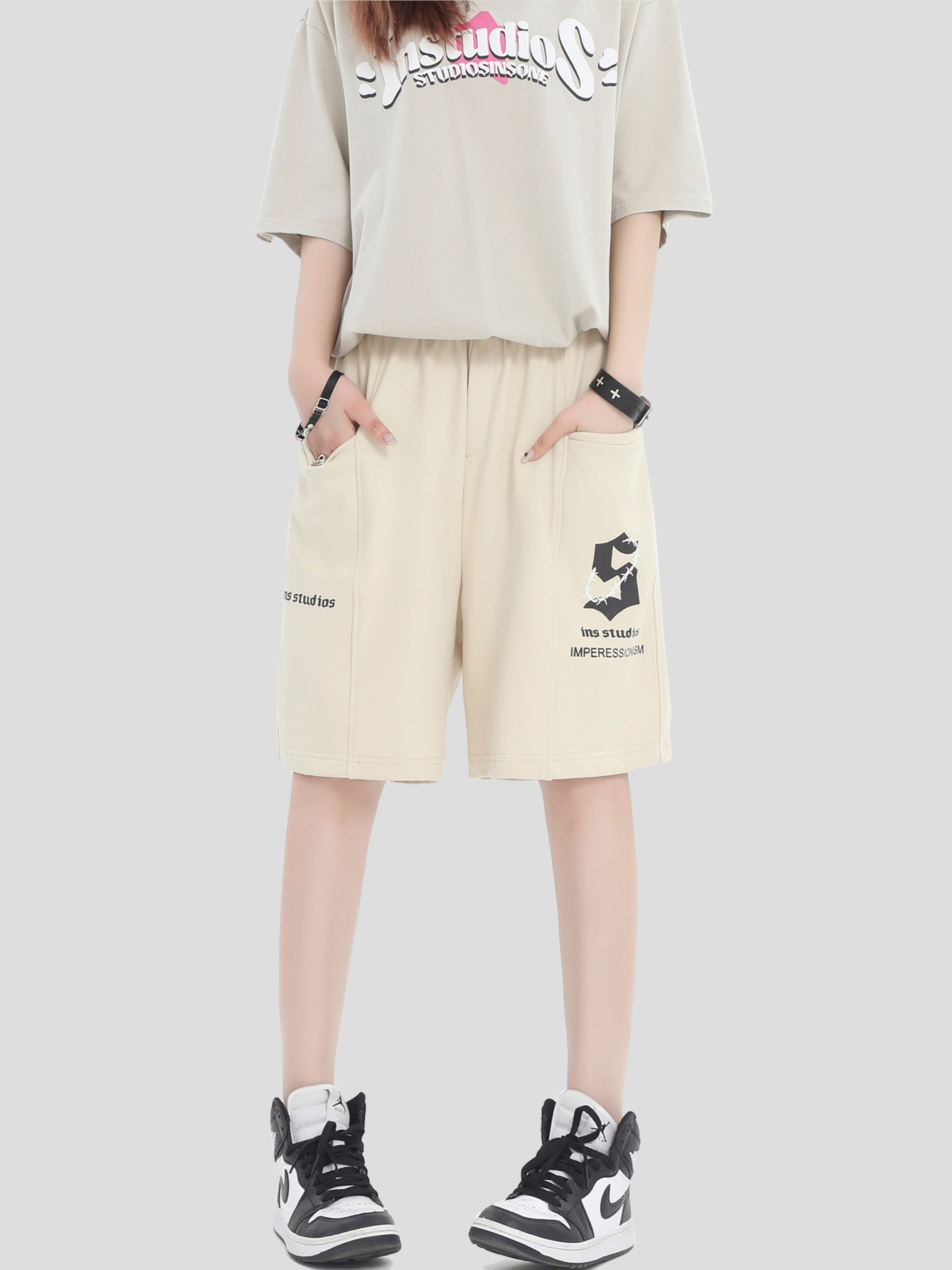 INSstudios 國潮牌情侶美式荊棘LOGO運動短褲寬鬆休閒五分褲褲子