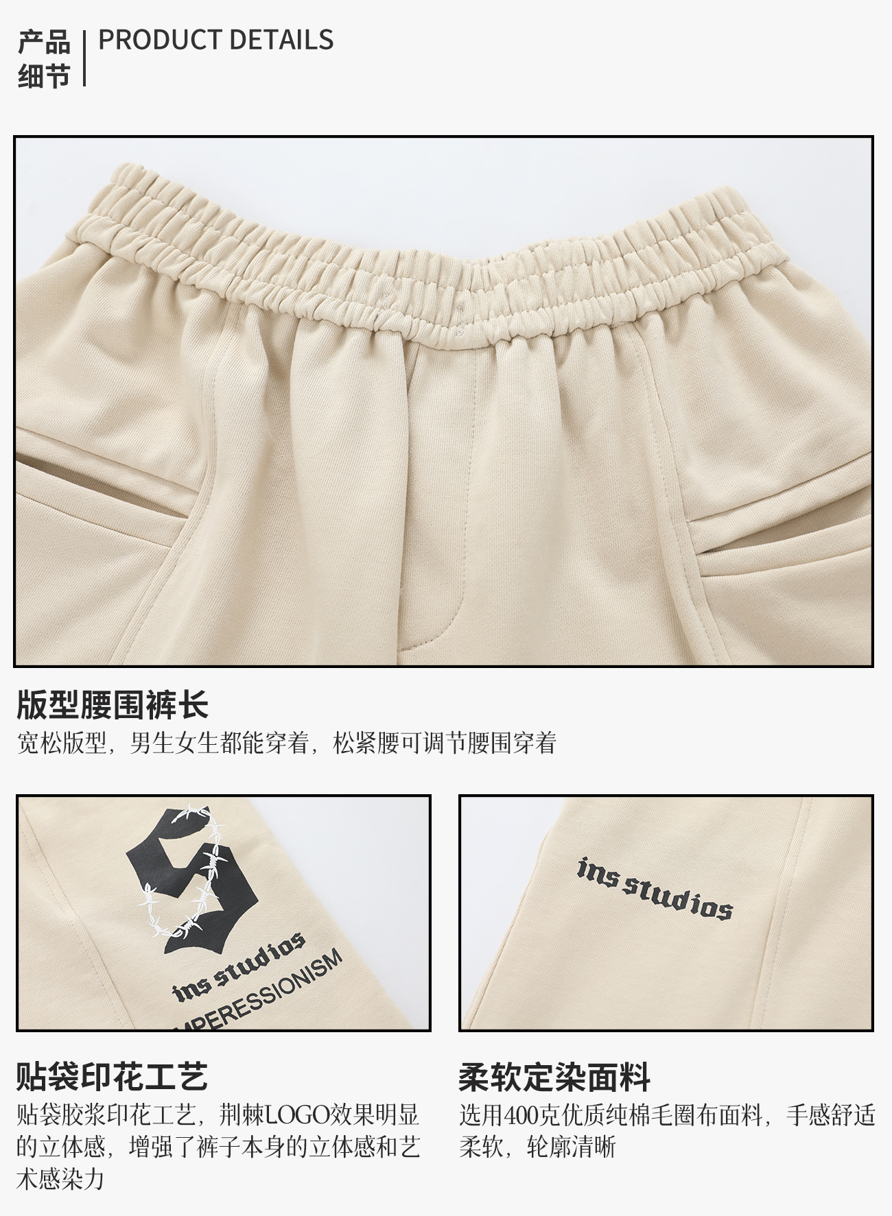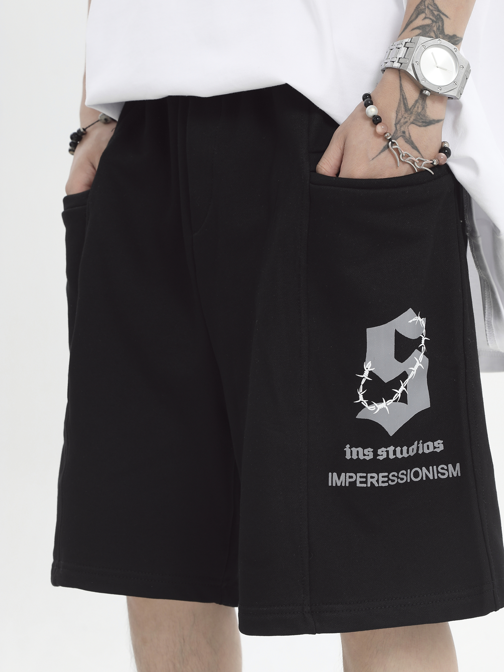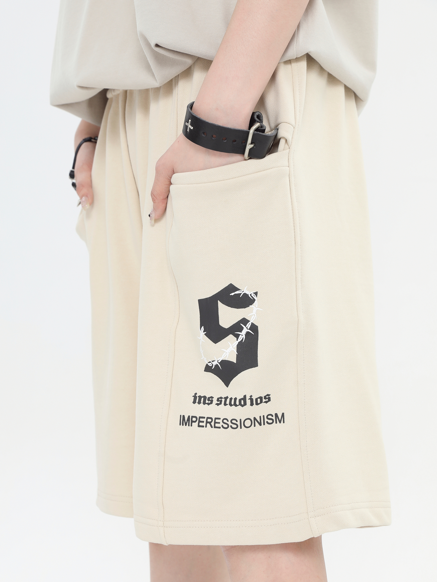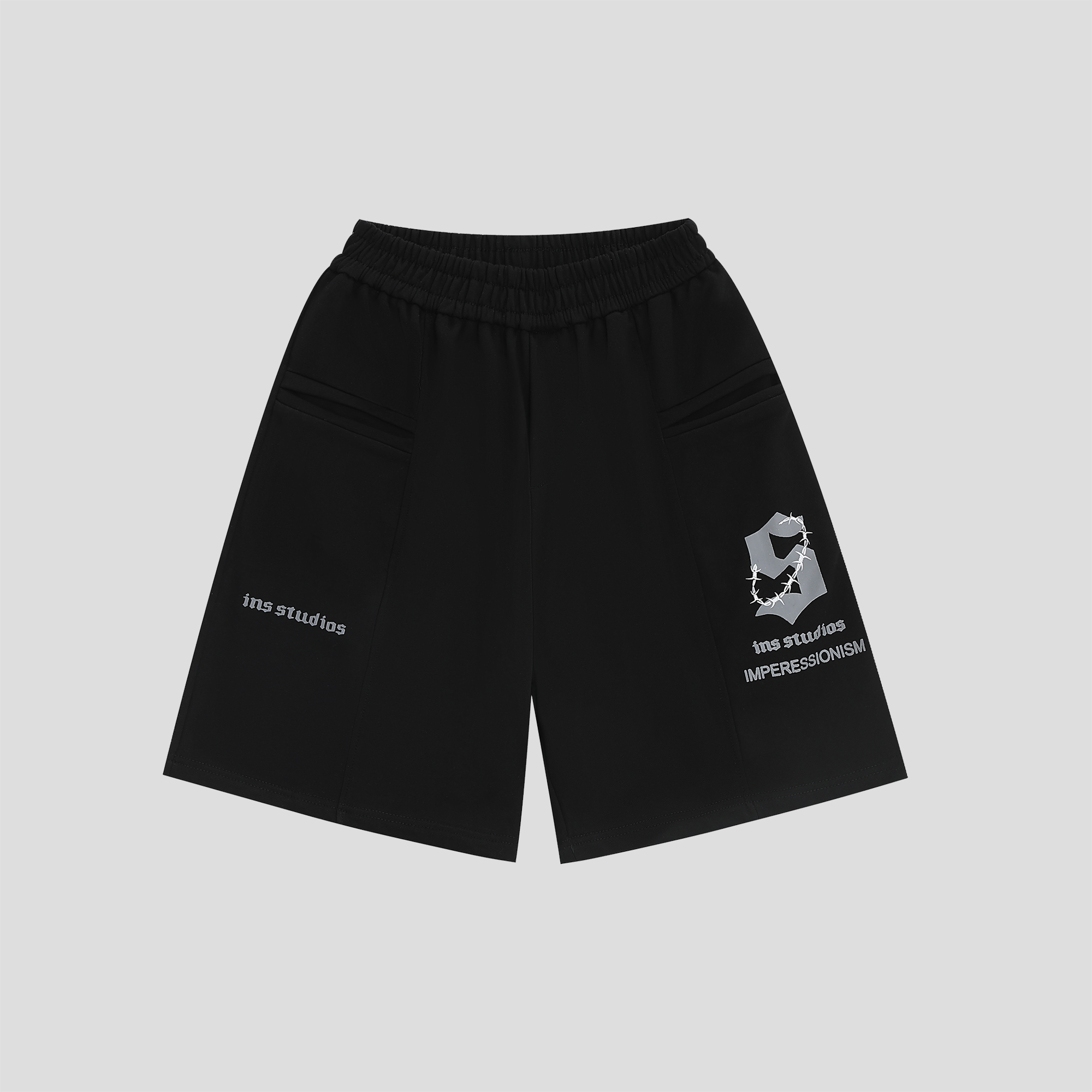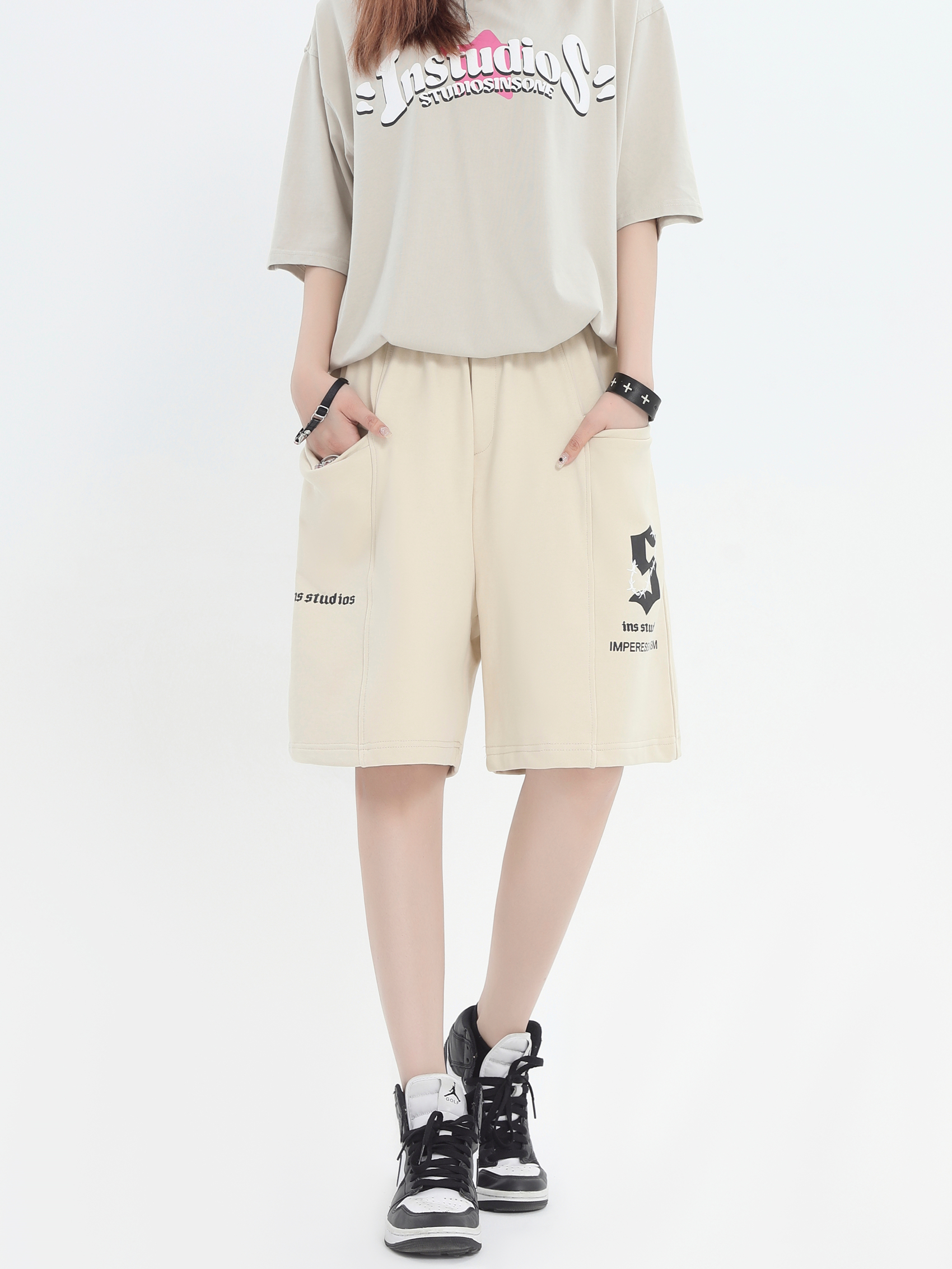 INSstudios 國潮牌情侶美式荊棘LOGO運動短褲寬鬆休閒五分褲褲子