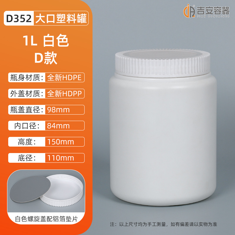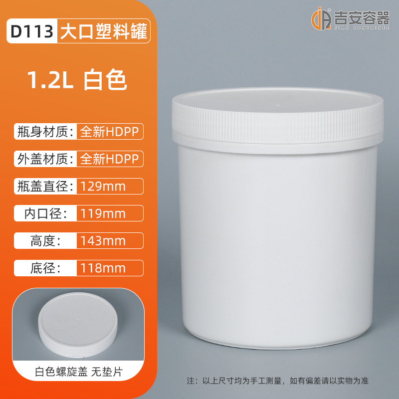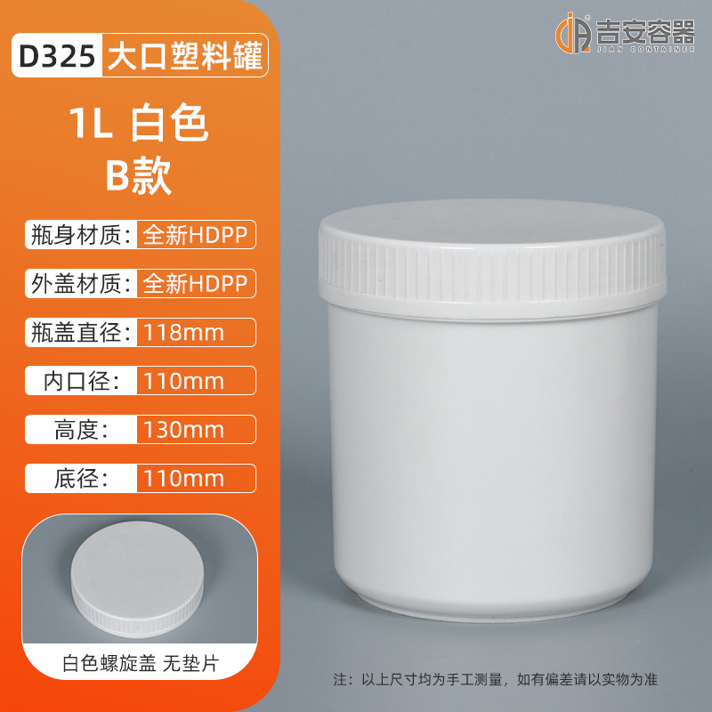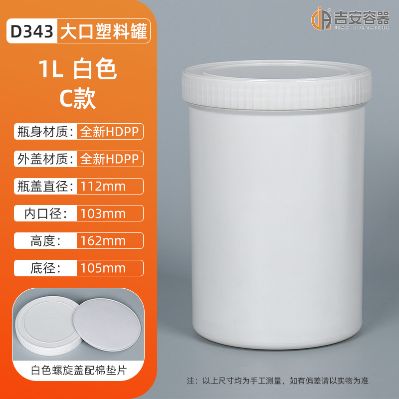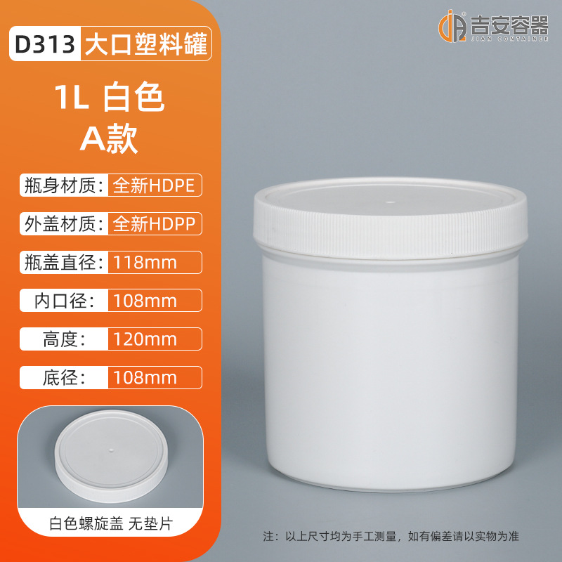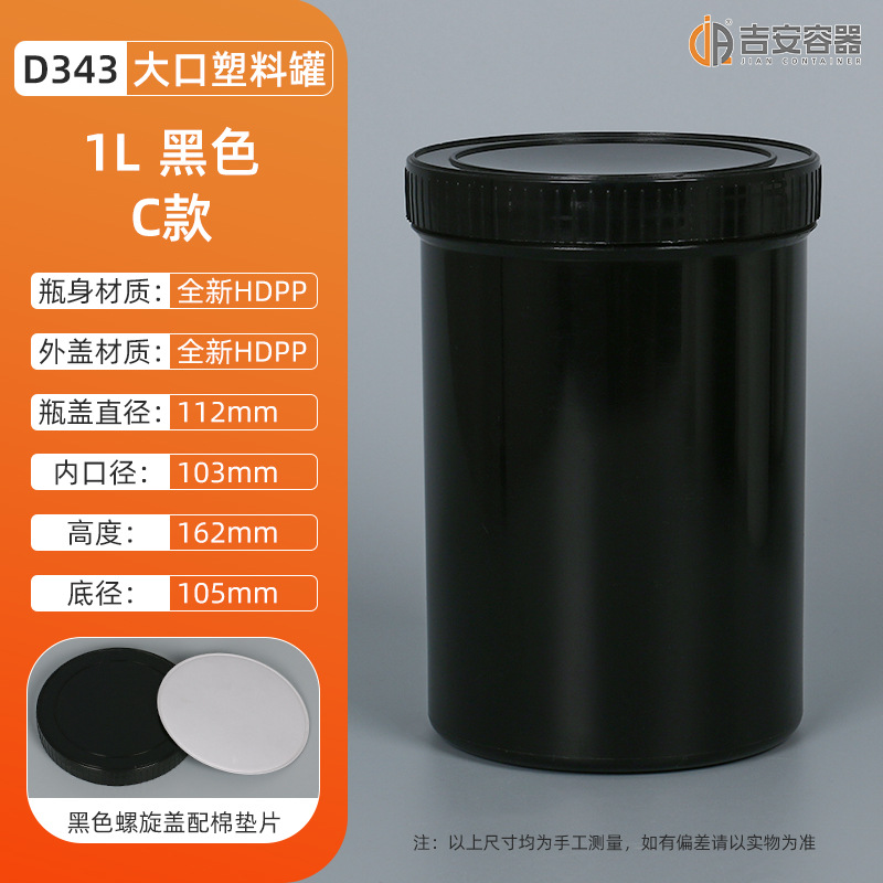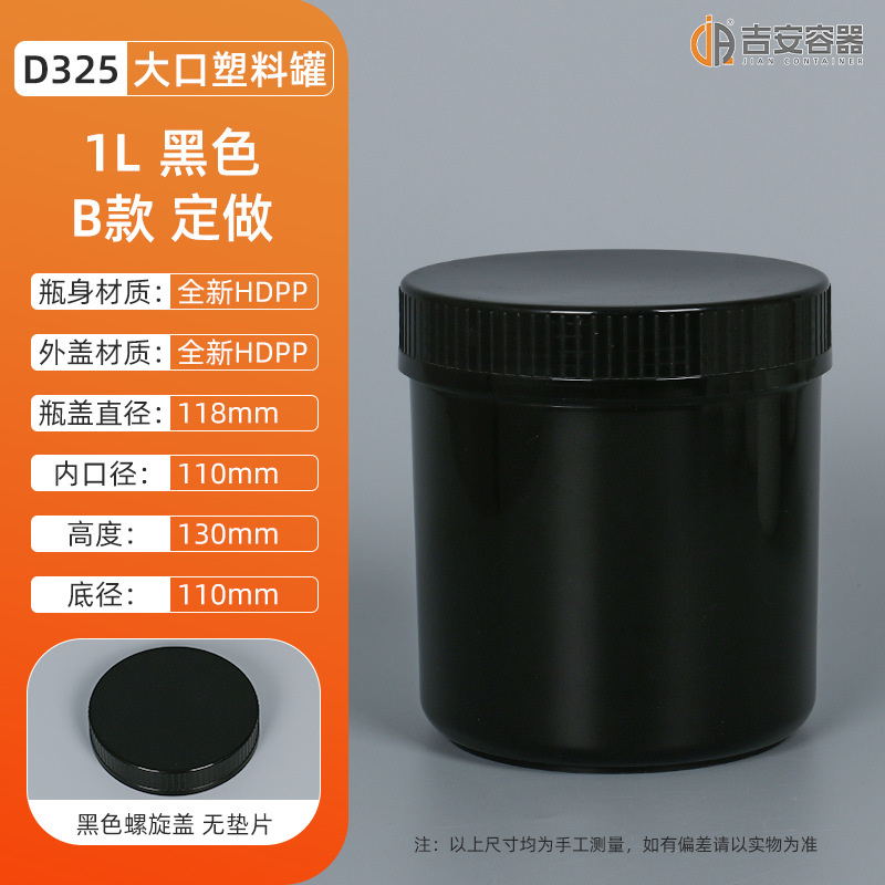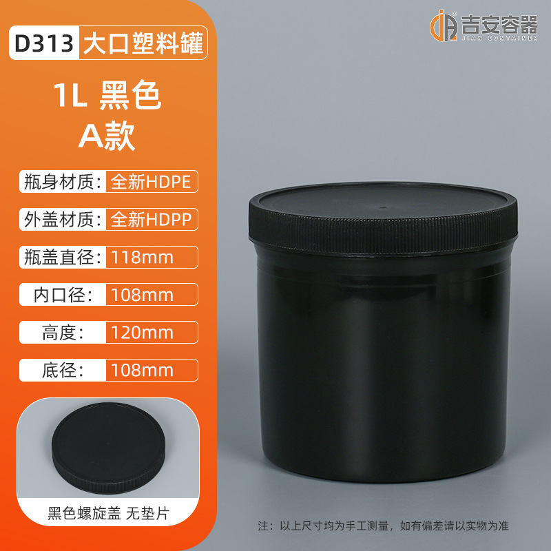1L-1.2KG大口油墨罐螺旋油漆涂料罐白黑色直身罐子化工塑料包装罐