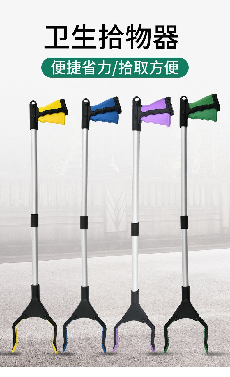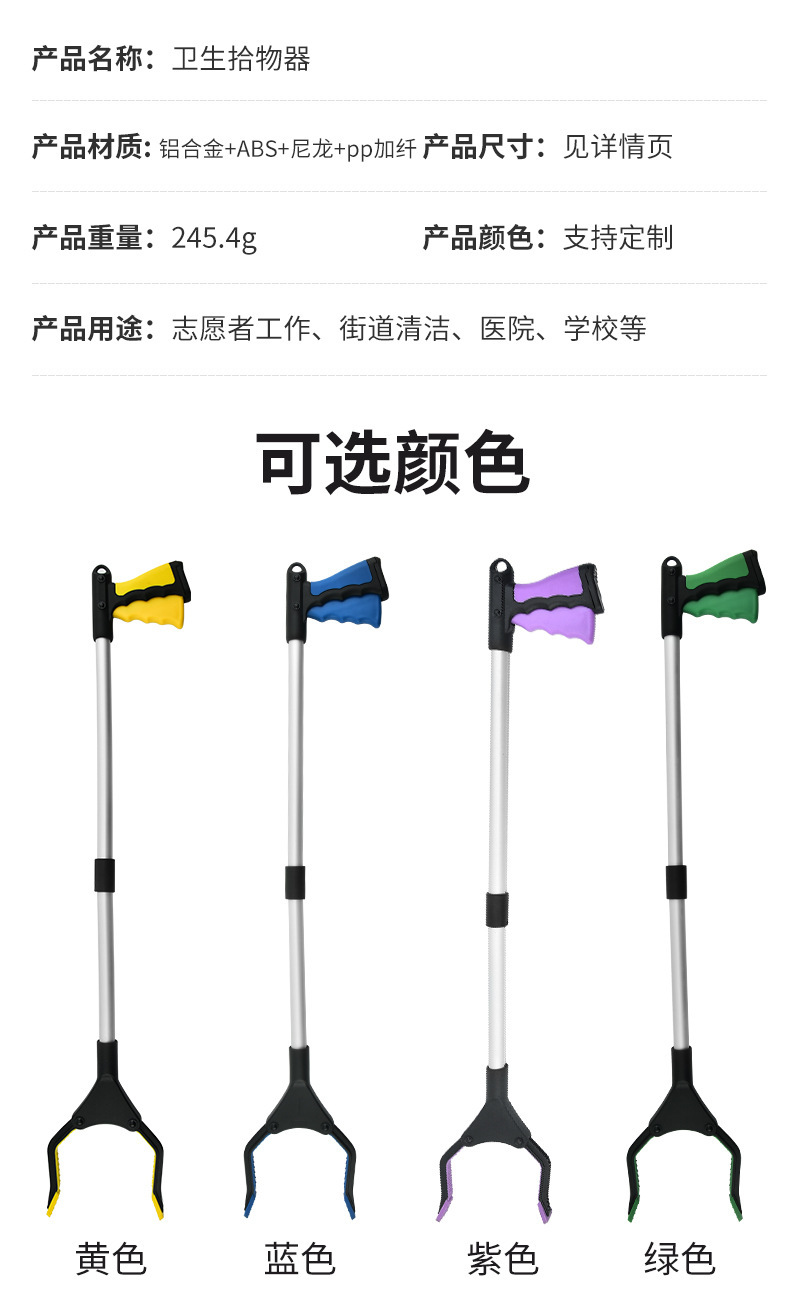 紫色铝合金管折叠取物器,捡拾器,垃圾夹,卫生夹,取物器
