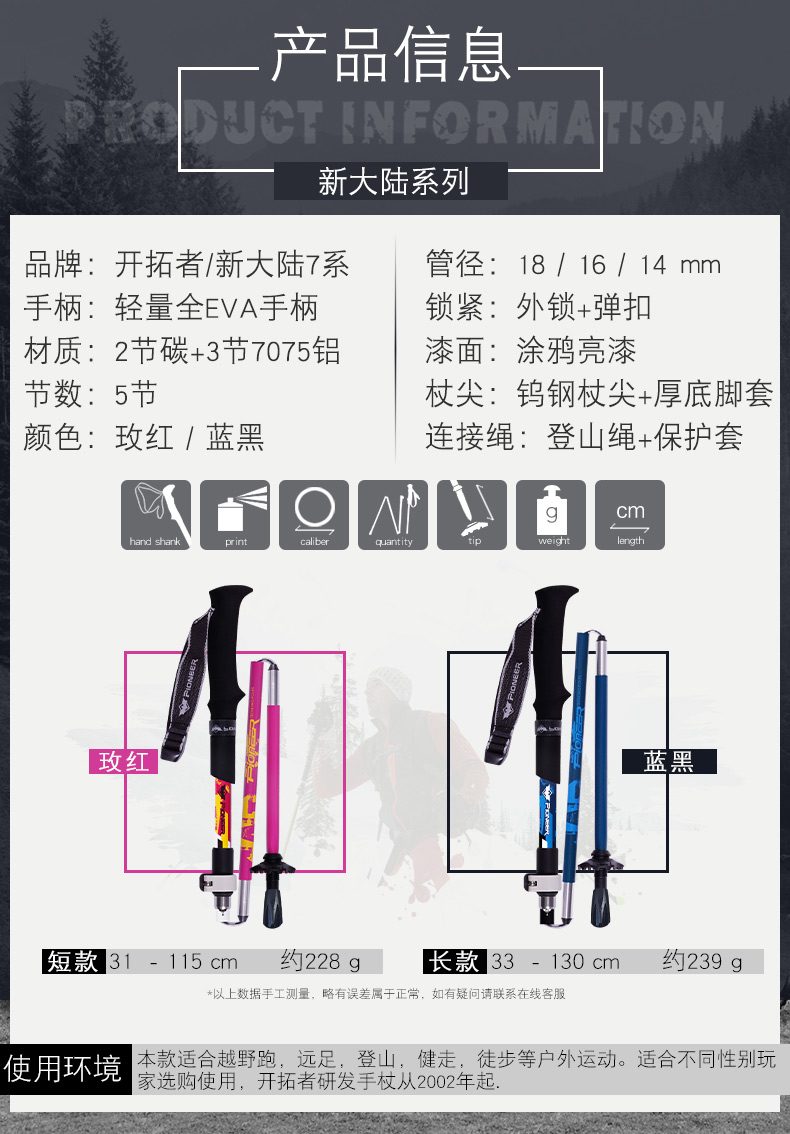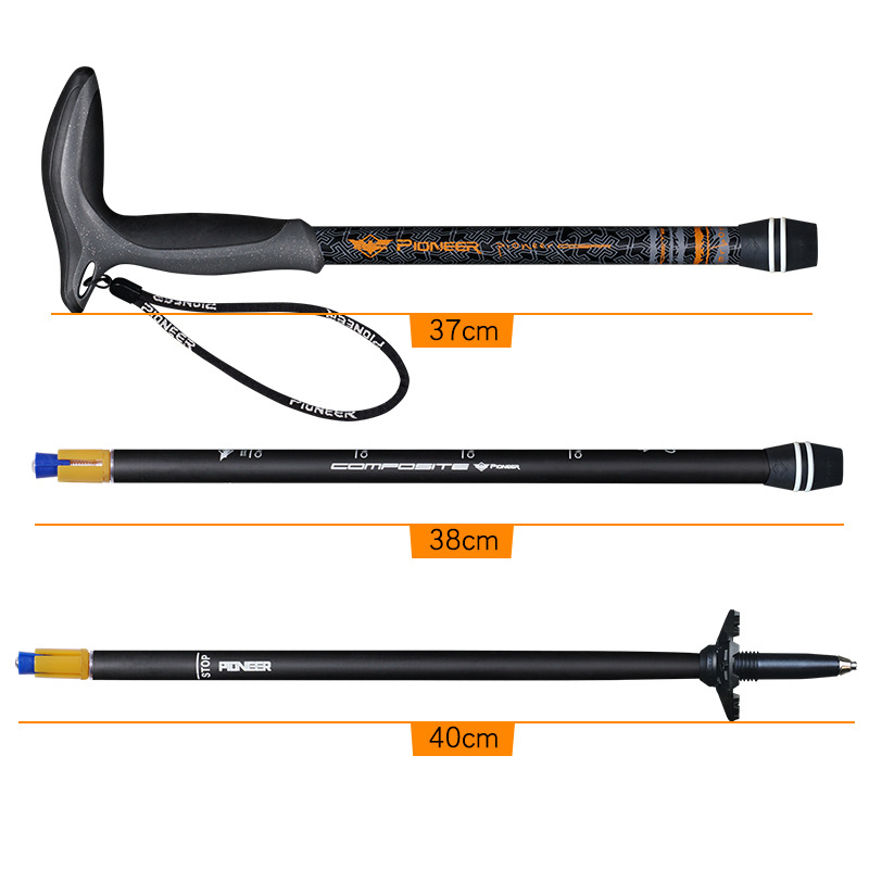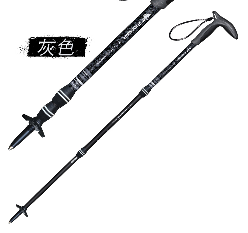 開拓者登山杖碳素超輕伸縮摺疊彎柄手杖戶外徒步柺杖柺棍爬山裝備