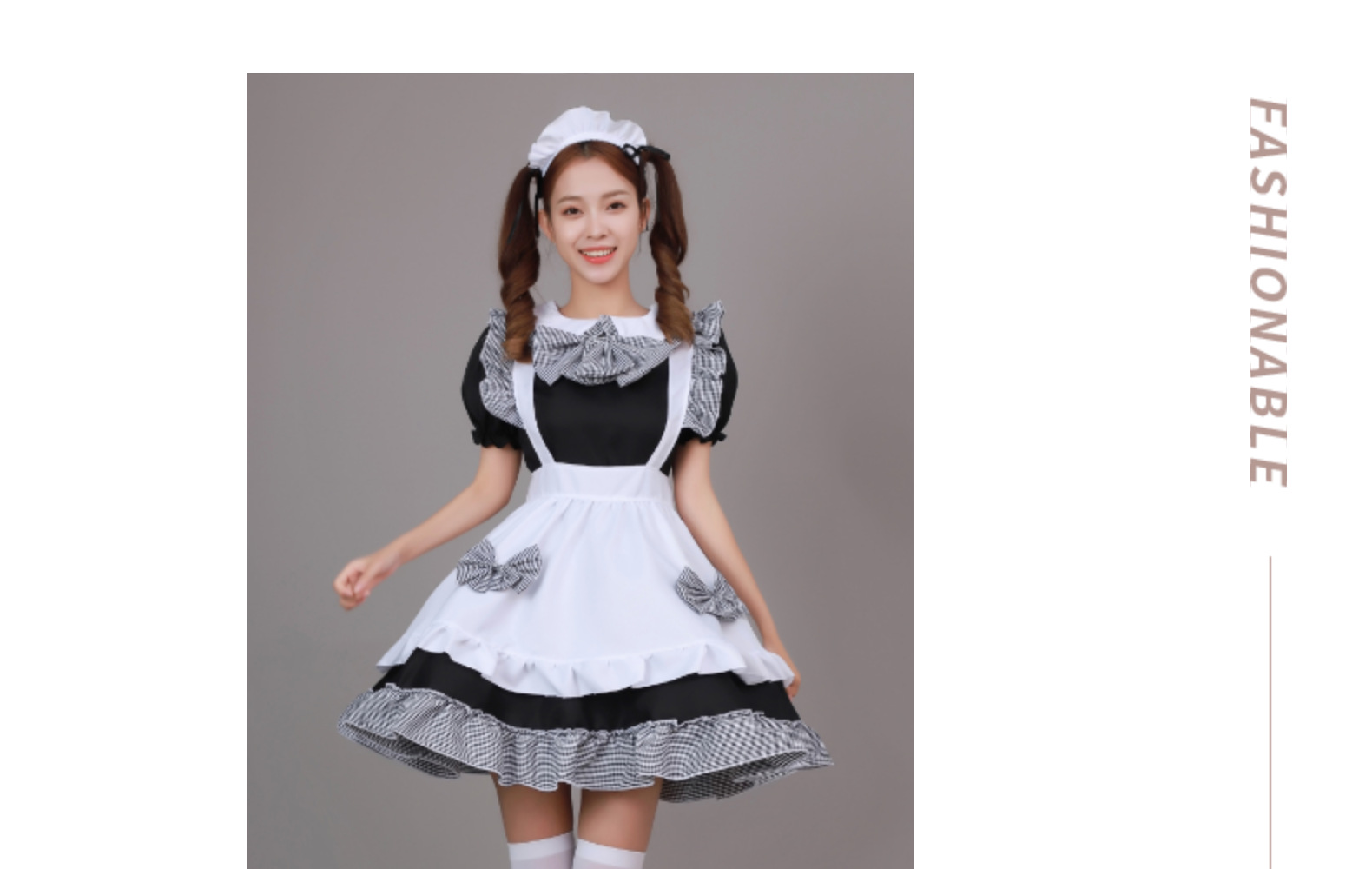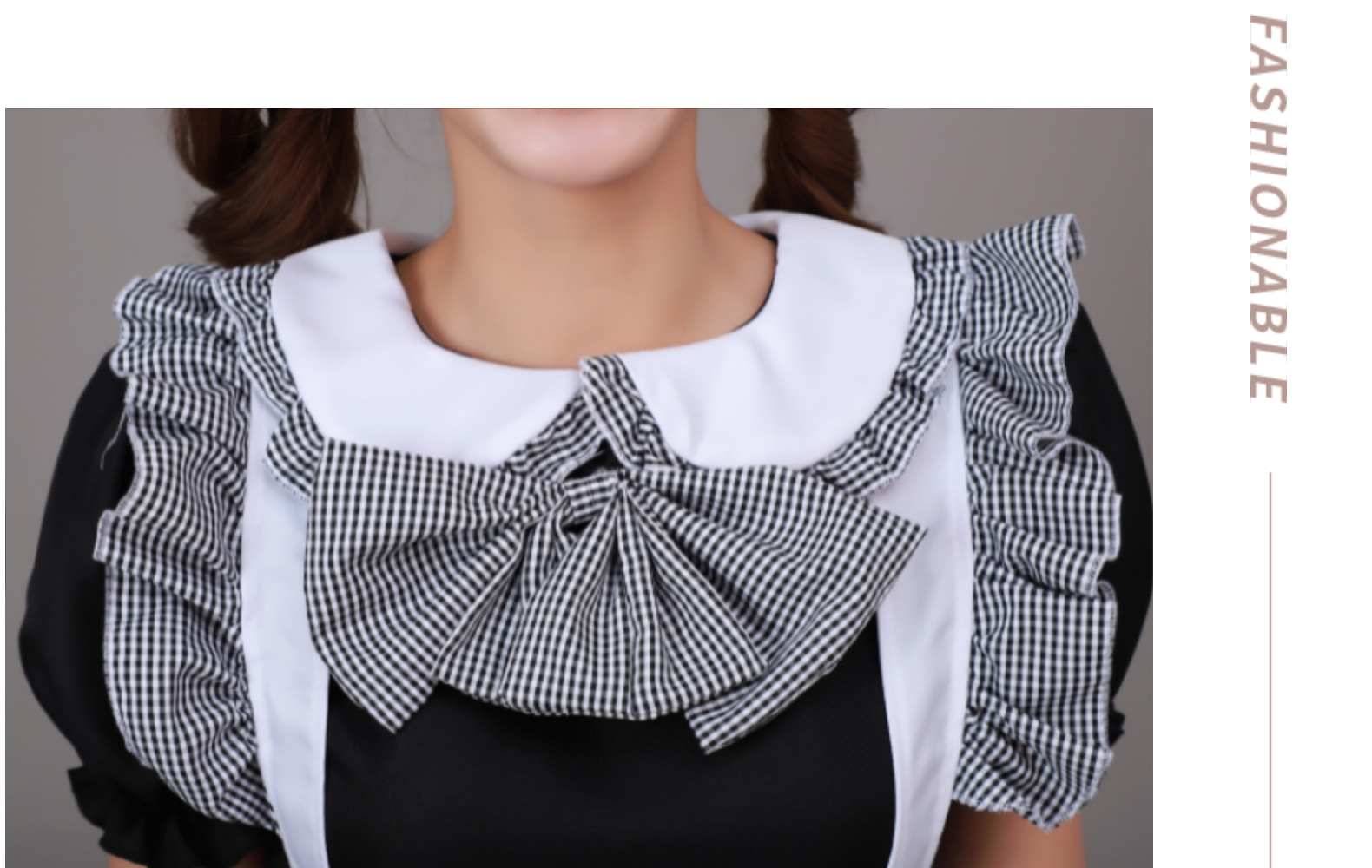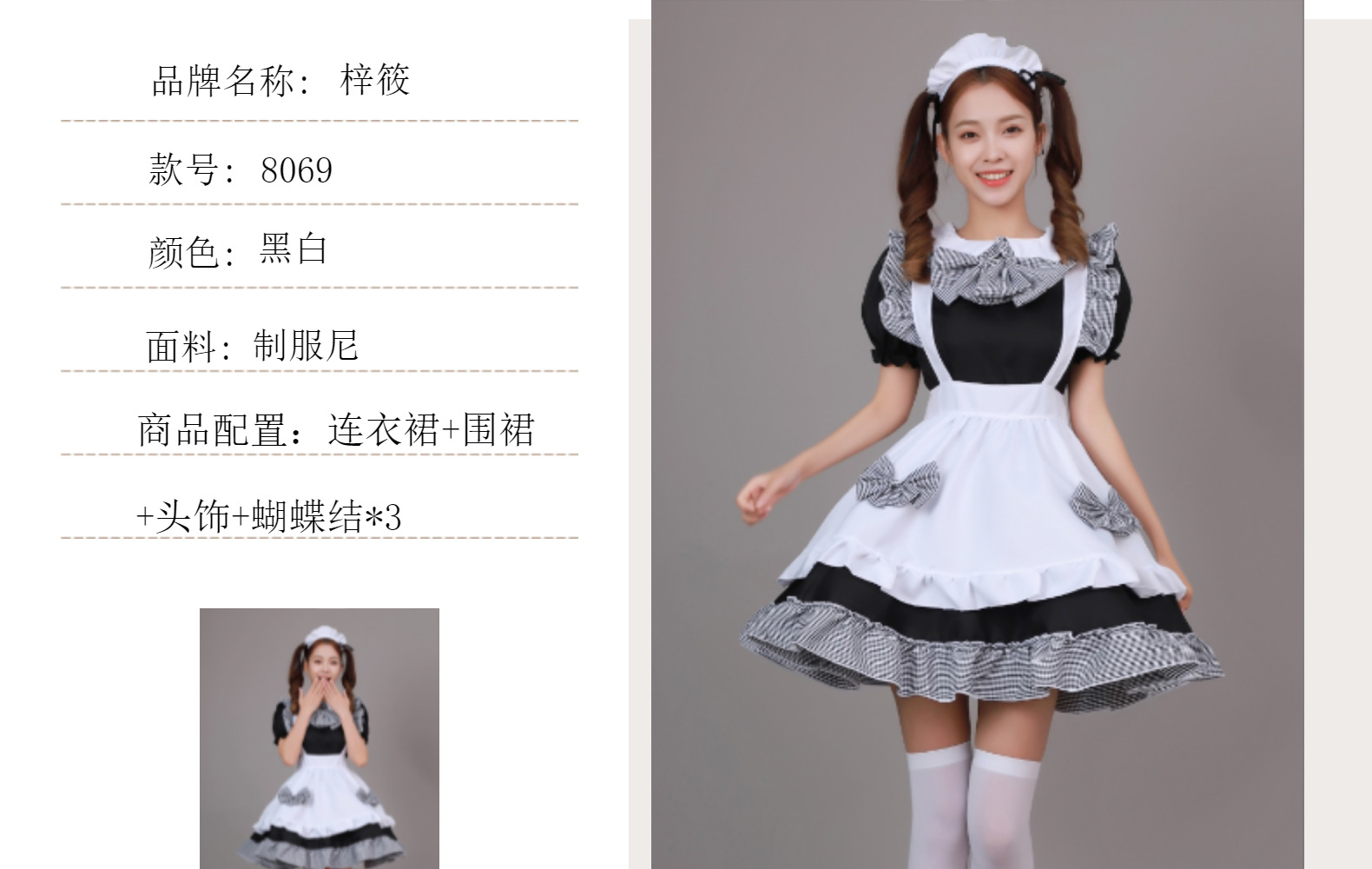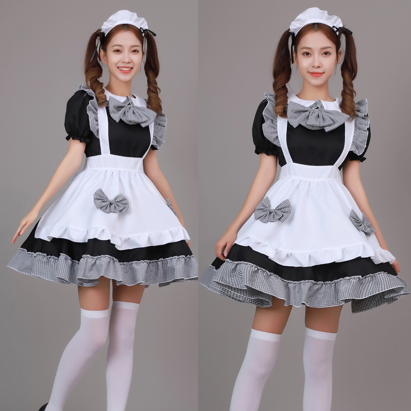 Cosplay日本动漫 黑白格蝴蝶结女仆系女佣 餐厅女仆