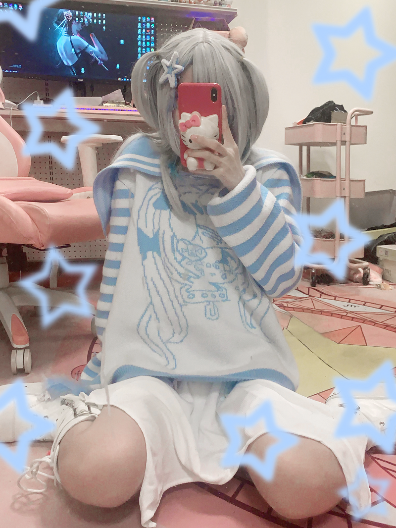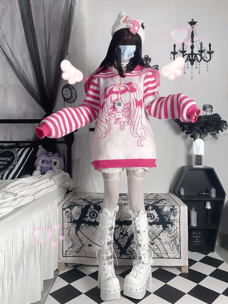 叄毒原創條紋拼接套頭針織衫外套冬季少女日系軟妹可愛海軍領毛衣