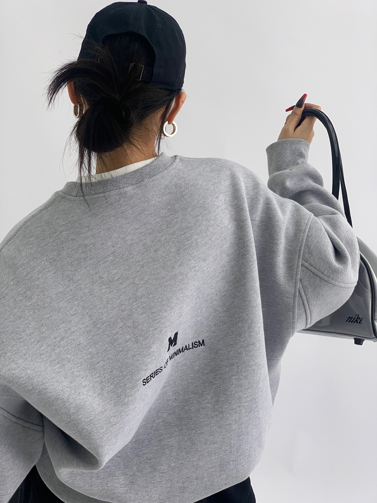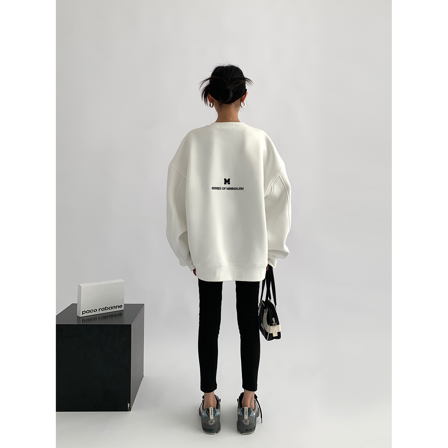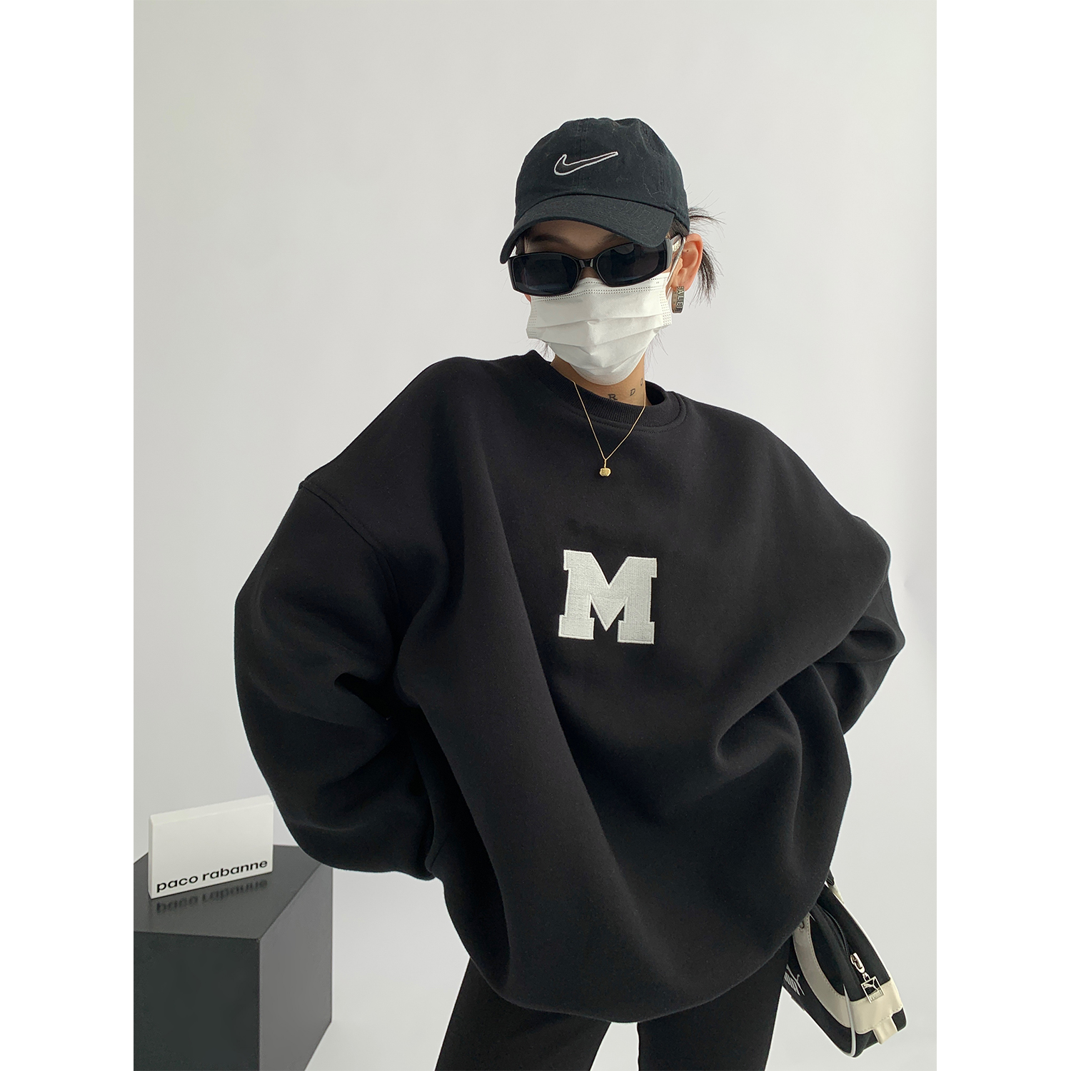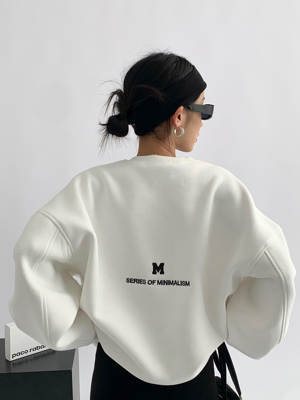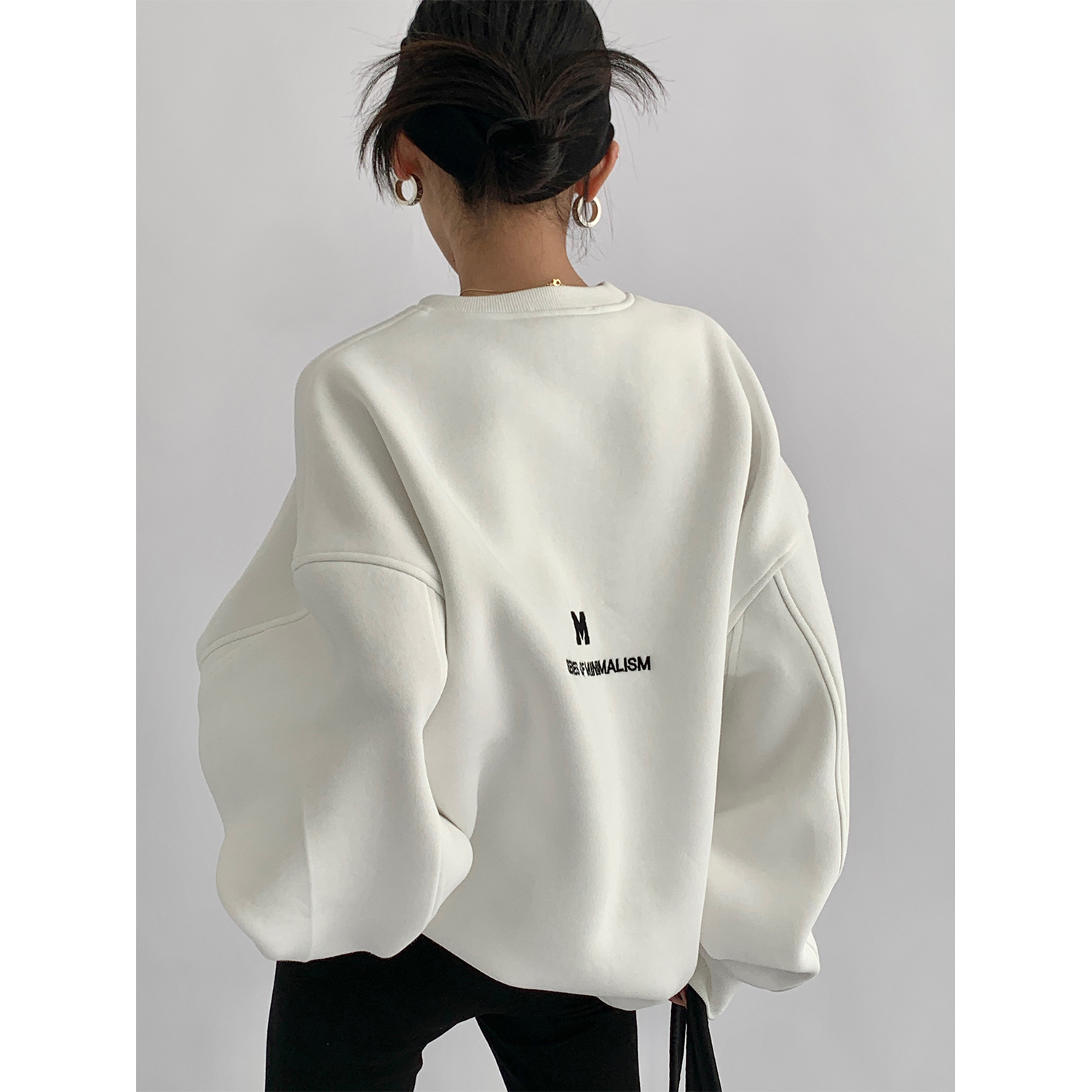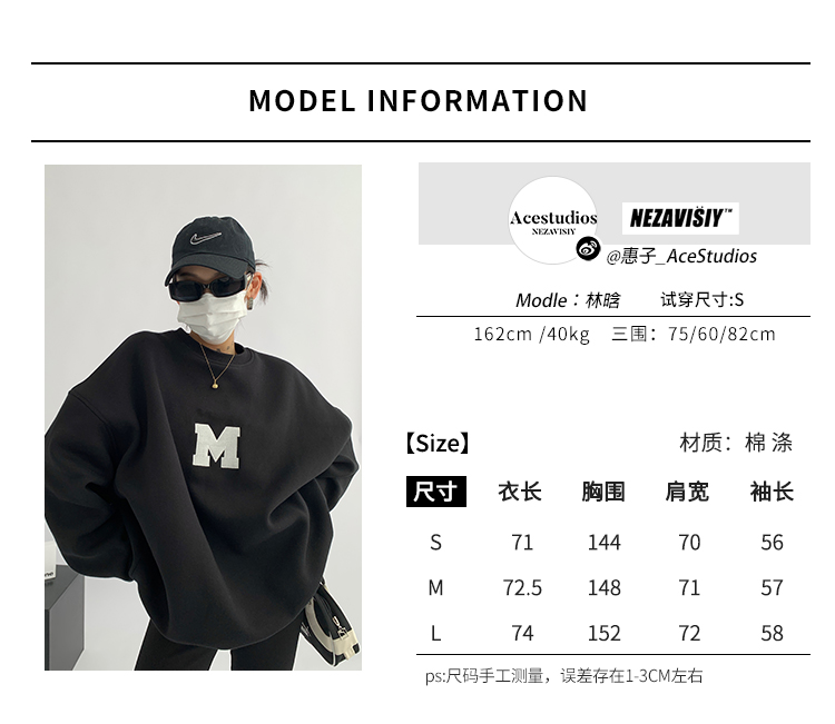 Acestudios 刺繡複合圓領厚棉T女2023春秋新款寬鬆百搭潮牌上衣