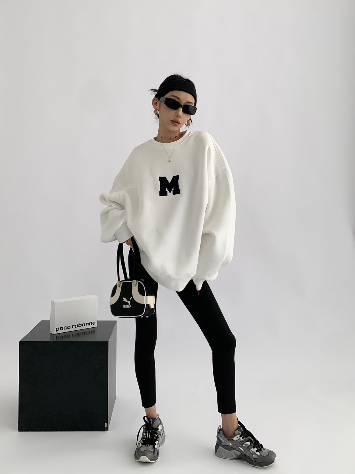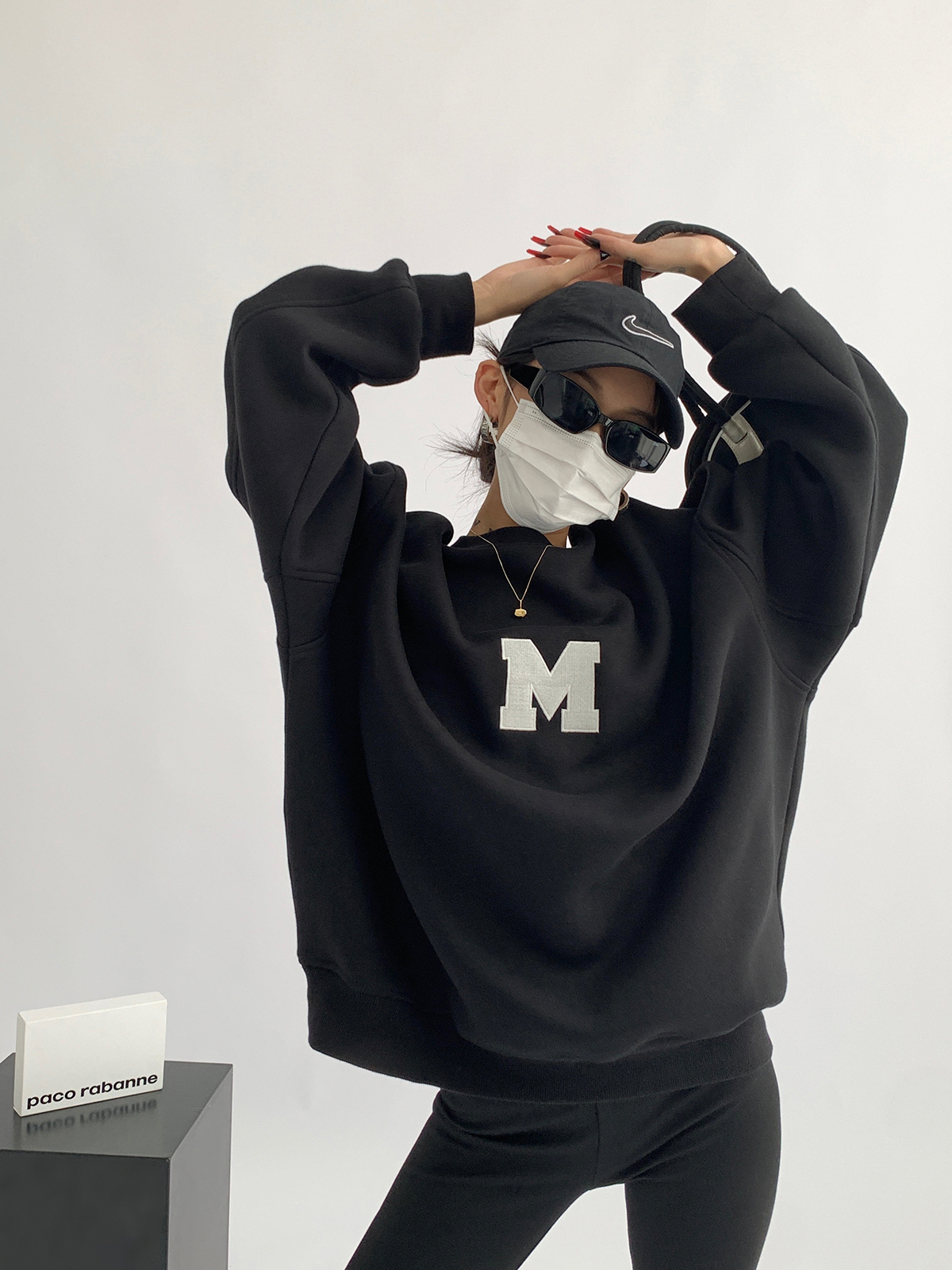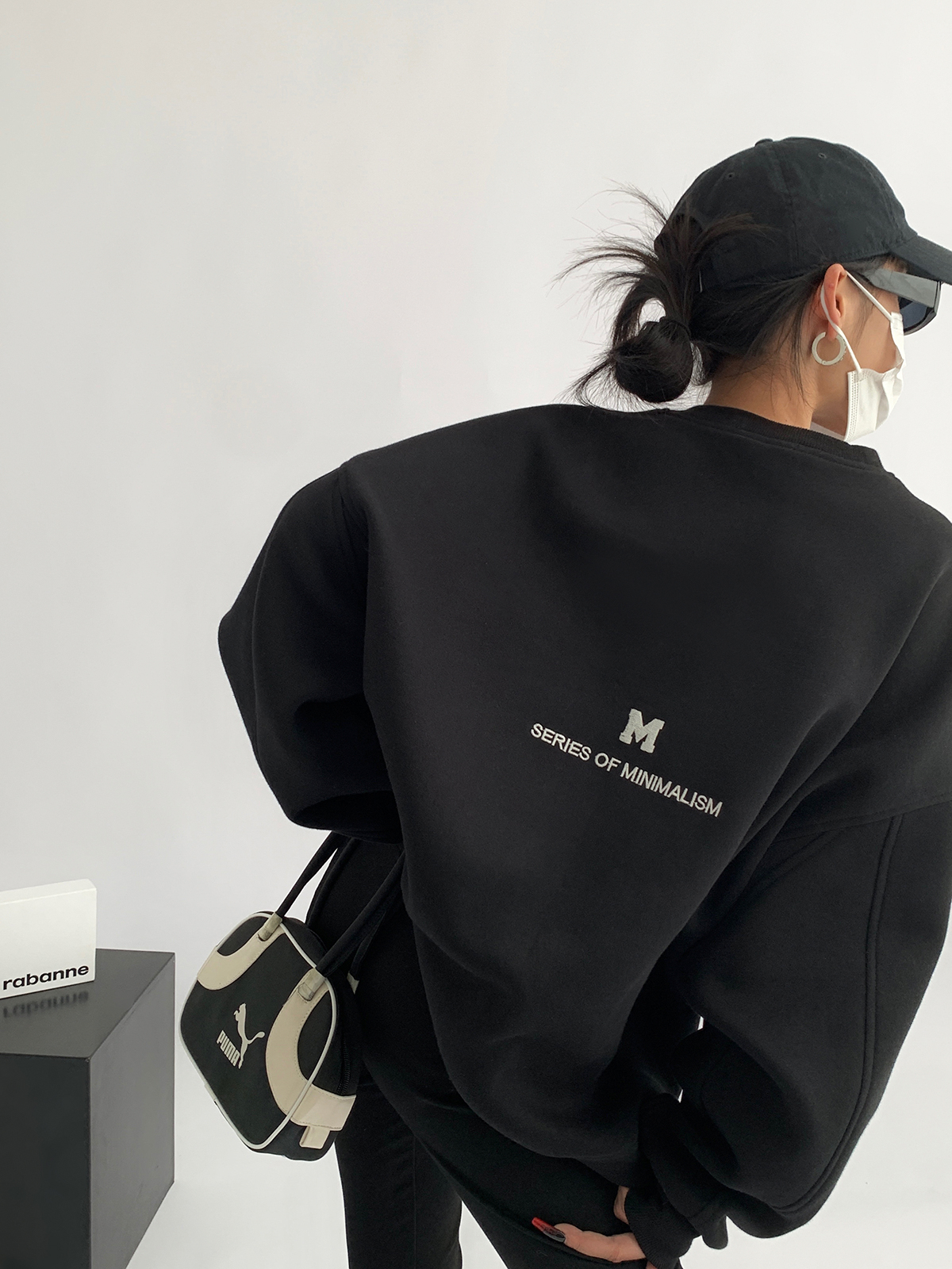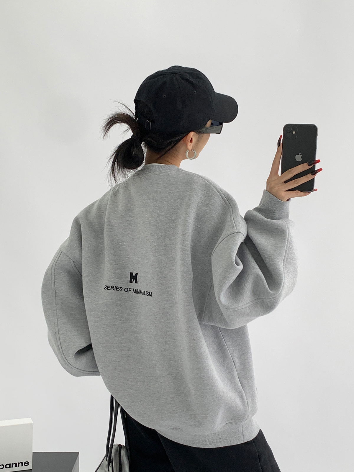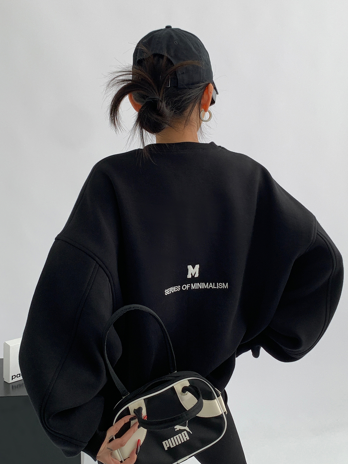 Acestudios 刺繡複合圓領厚棉T女2023春秋新款寬鬆百搭潮牌上衣