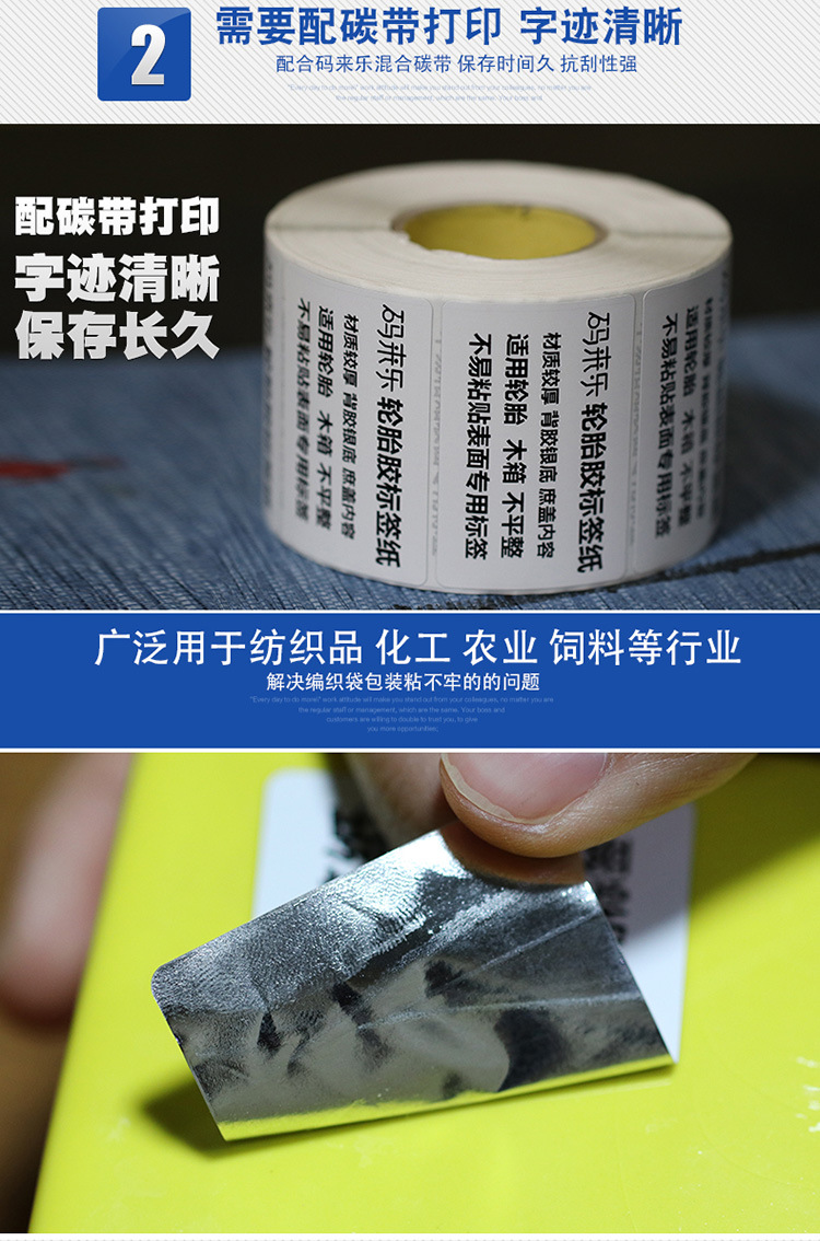 铜版纸轮胎胶不干胶标签条码贴纸编织袋蛇皮袋超粘碳带打印机