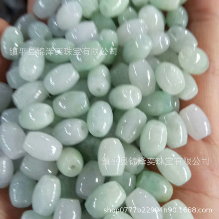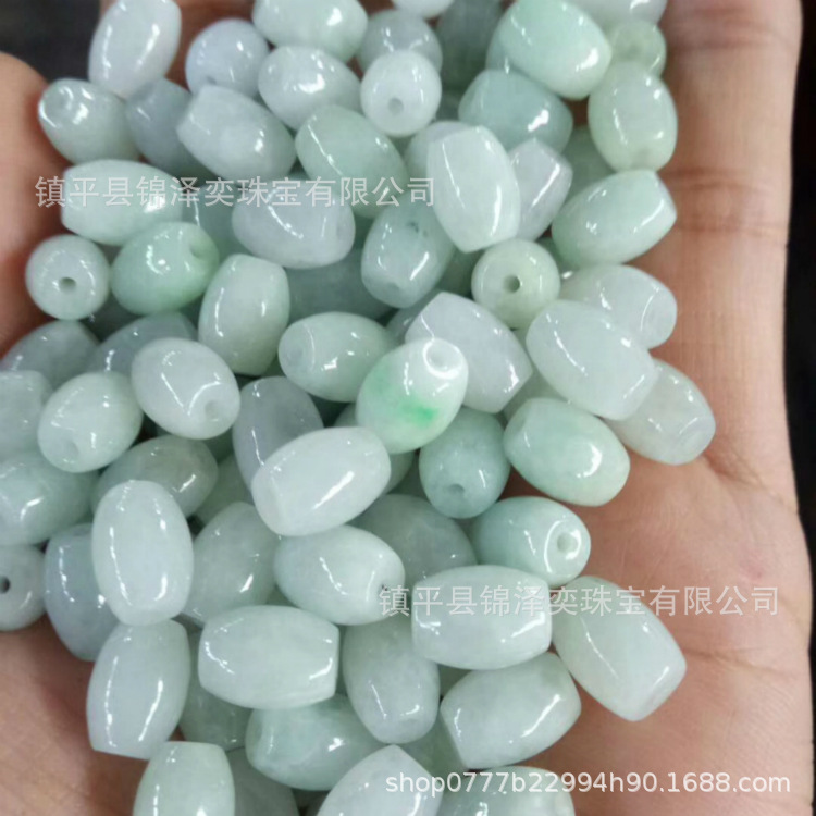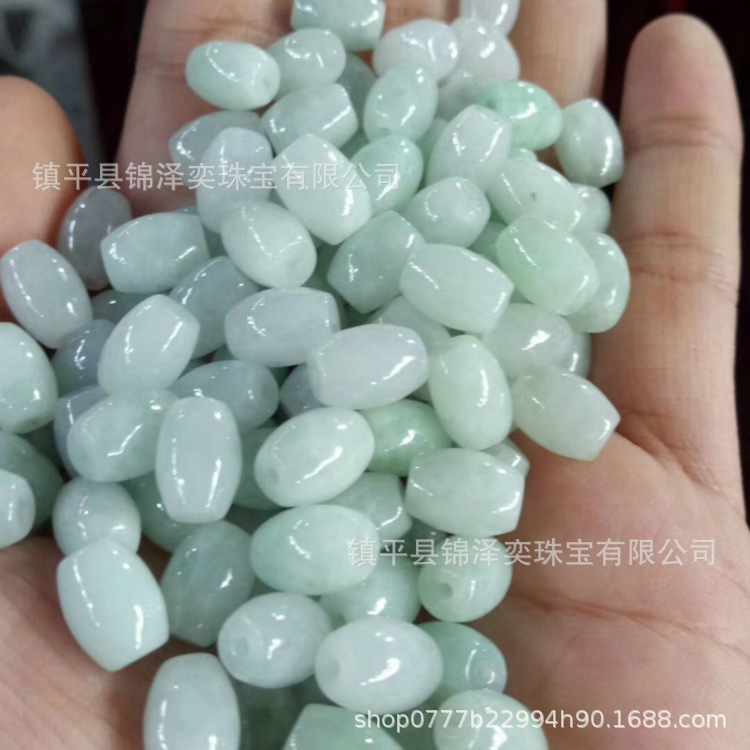 厂家直销天然冰糯种翡翠A货路路通米珠批发玉石DIY饰品配件